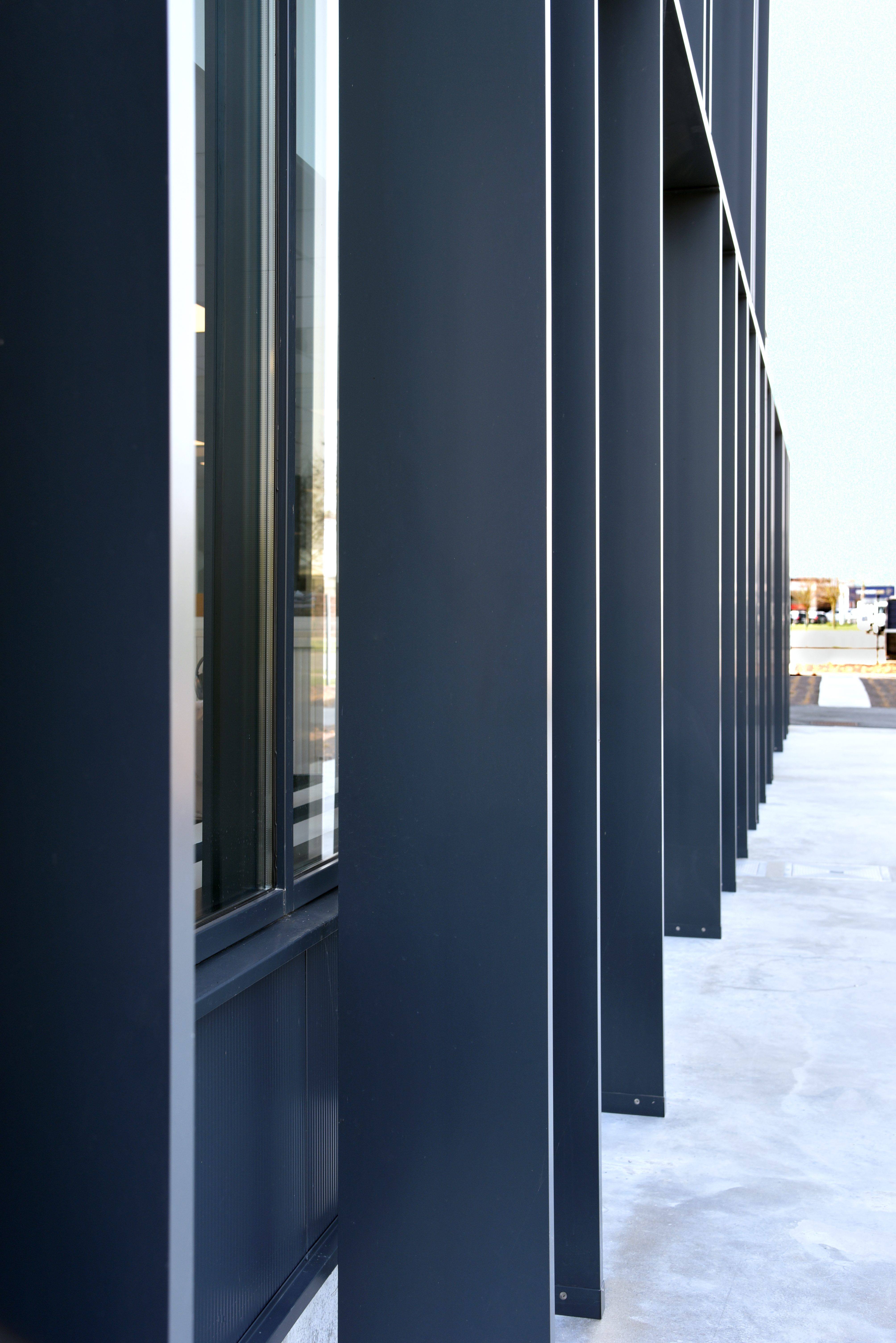 Le choix des protections solaires extérieures a été dicté par deux exigences : la conception architecturale et une intimité maximale. En plus de leur design moderne, les lames en aluminium réduisent également la visibilité des bureaux du bâtiment, améliorant ainsi l'intimité des collaborateurs de bureau. En même temps, la lumière naturelle est conservée pour les collaborateurs et les lames améliorent l'aspect général du bâtiment.