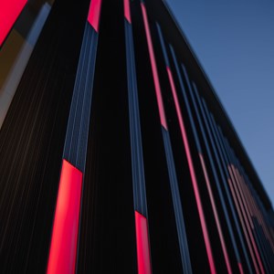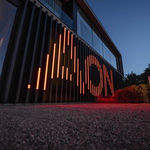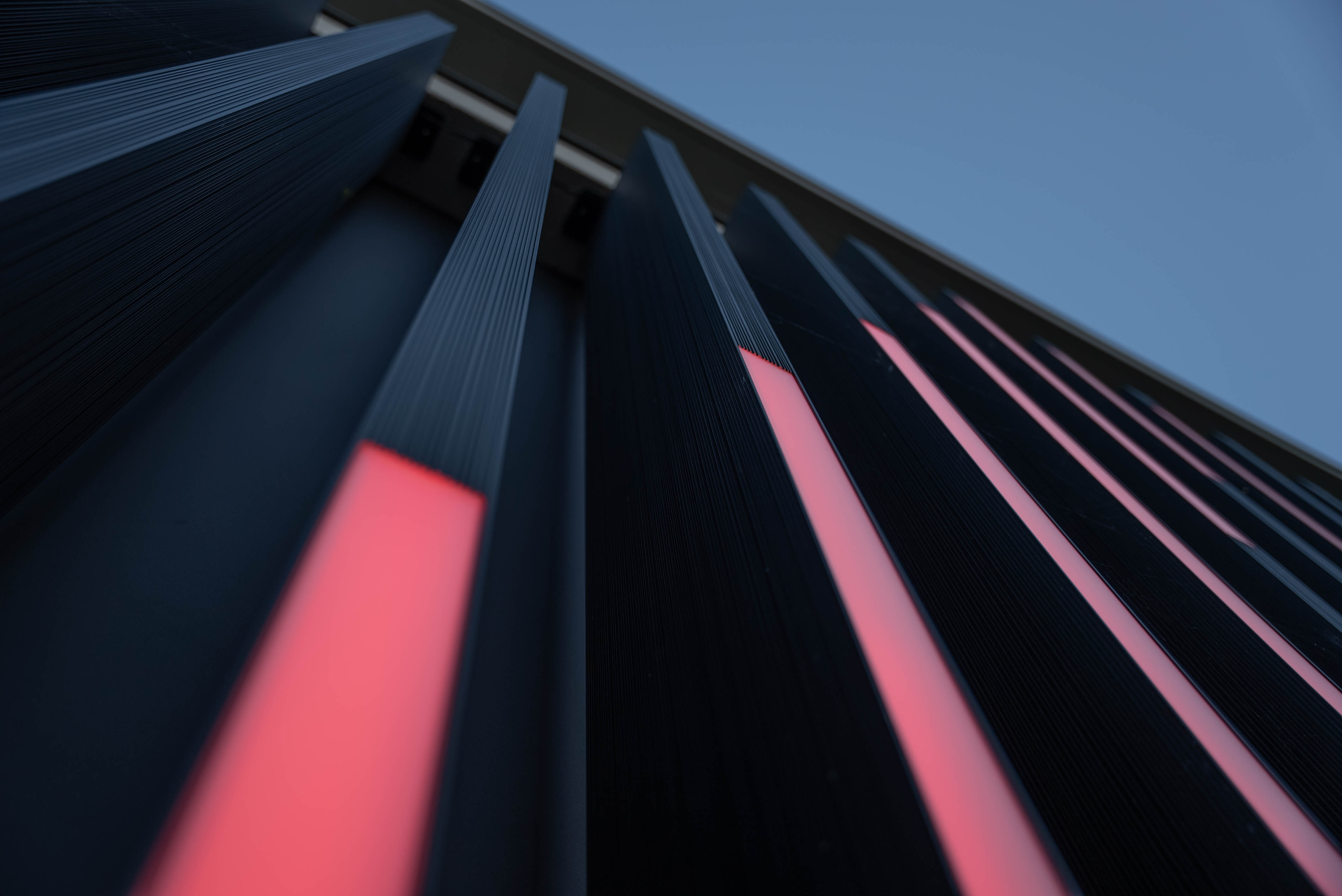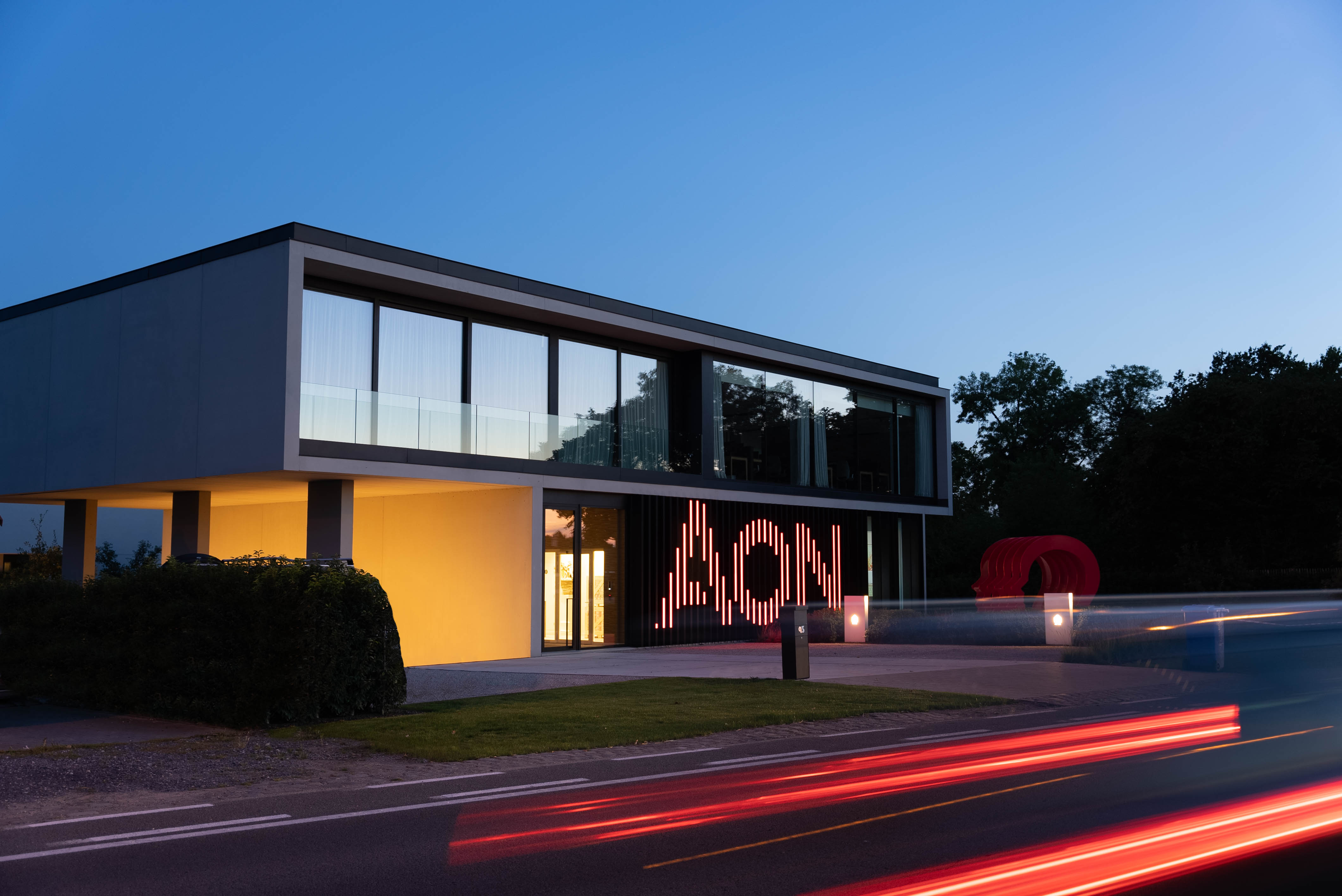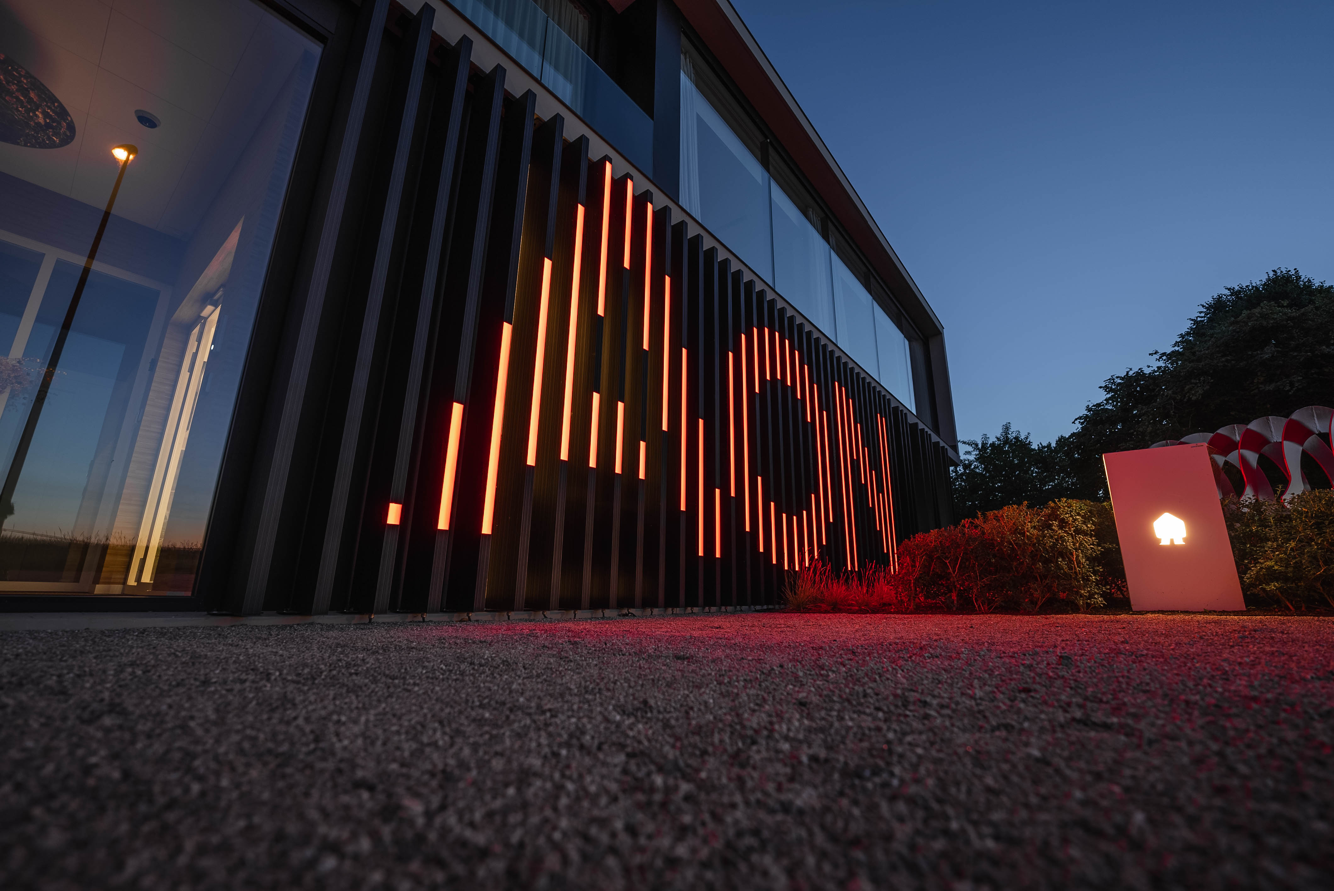 Et si vous pouviez renforcer la marque de votre entreprise 24h/24 et 7j/7 ? Et de préférence de manière élégante et efficace. Après une consultation approfondie au sein de l'entreprise, les lames architecturales DucoSun Cubic Design ont remporté le prix. Mais ce n’était pas un hasard. Car l'éclairage LED de ces lames peut rester allumé 24h/24 et 7j/7. Les locaux commerciaux de Drongen sont donc « sous les projecteurs, même dans l'obscurité des nuits fraîches ! »