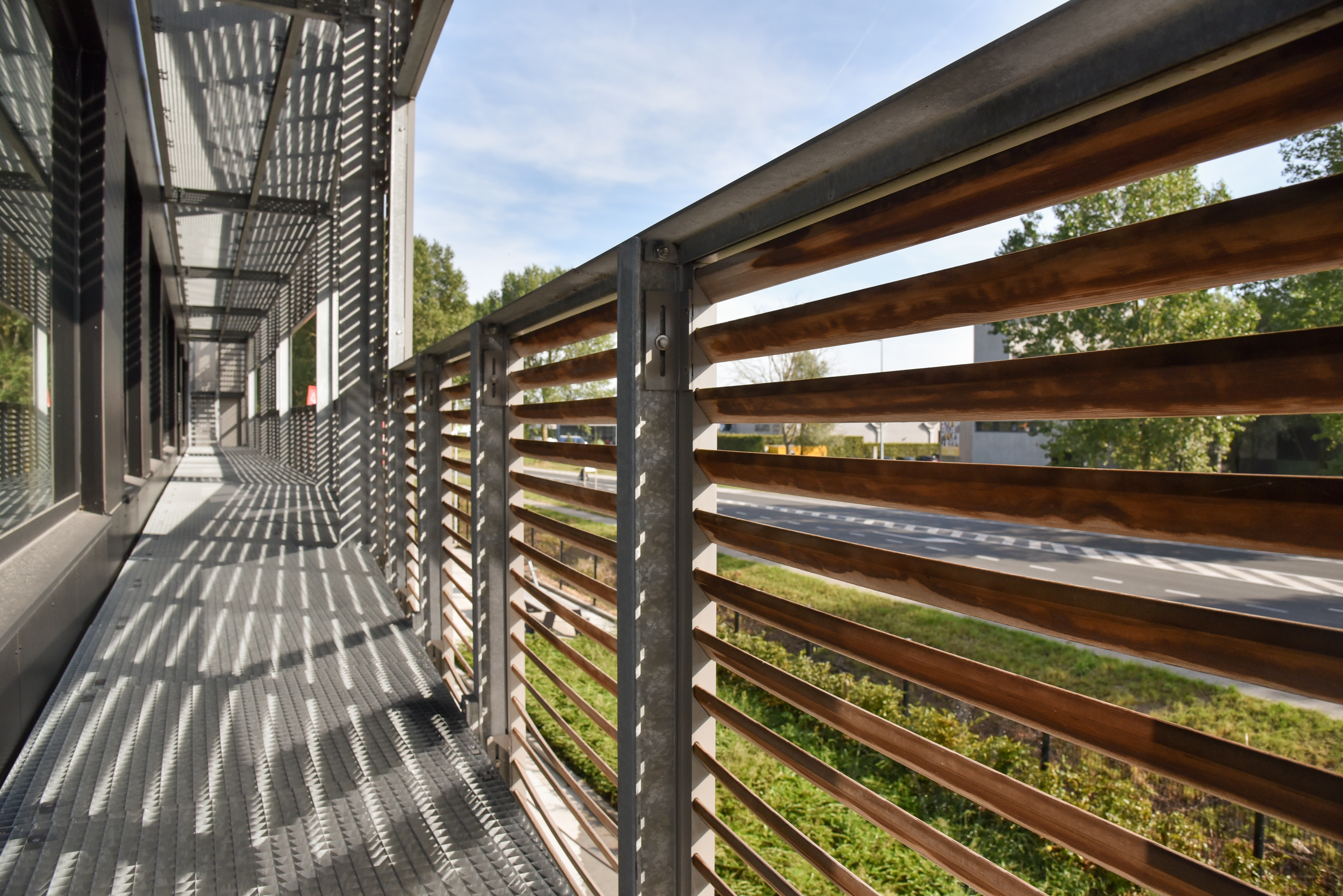"Le système de brise-soleil ne répond pas seulement au besoin de protection solaire structurelle, mais s'aligne également sur la vision architecturale du client", explique Vandendries. "De plus, le choix des panneaux en bois s'est imposé naturellement en raison de leur aspect chaleureux et de leurs couleurs qui évoluent naturellement avec le temps.