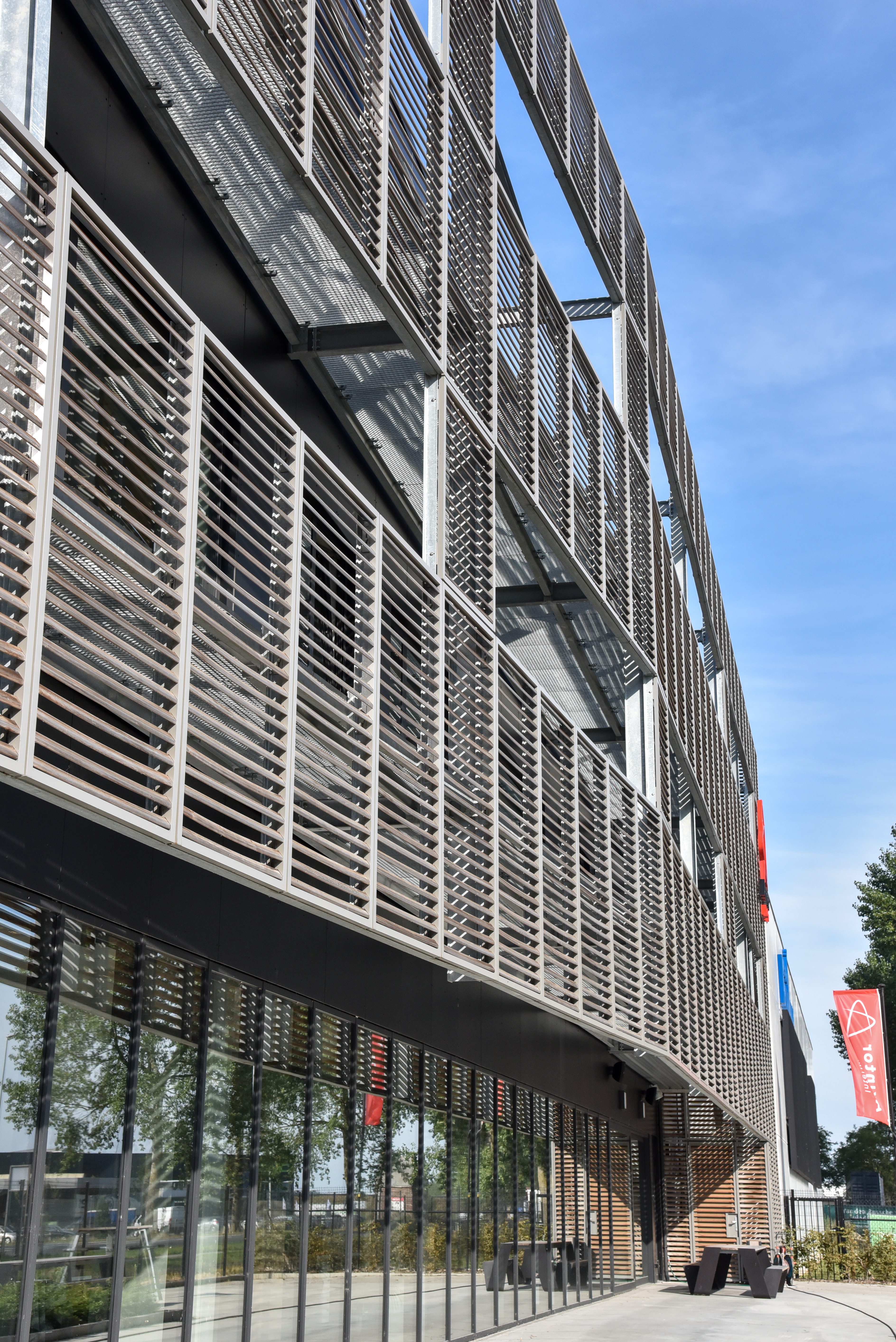 La façade du bâtiment étant orientée vers le sud, il était nécessaire d'ombrager en permanence le bâtiment. Ce n'est qu'ainsi qu'un climat intérieur agréable a pu être créé pour les employés du bureau intérimaire. Après avoir évalué différents matériaux, la collaboration avec DUCO s'est avérée être le choix le plus approprié.