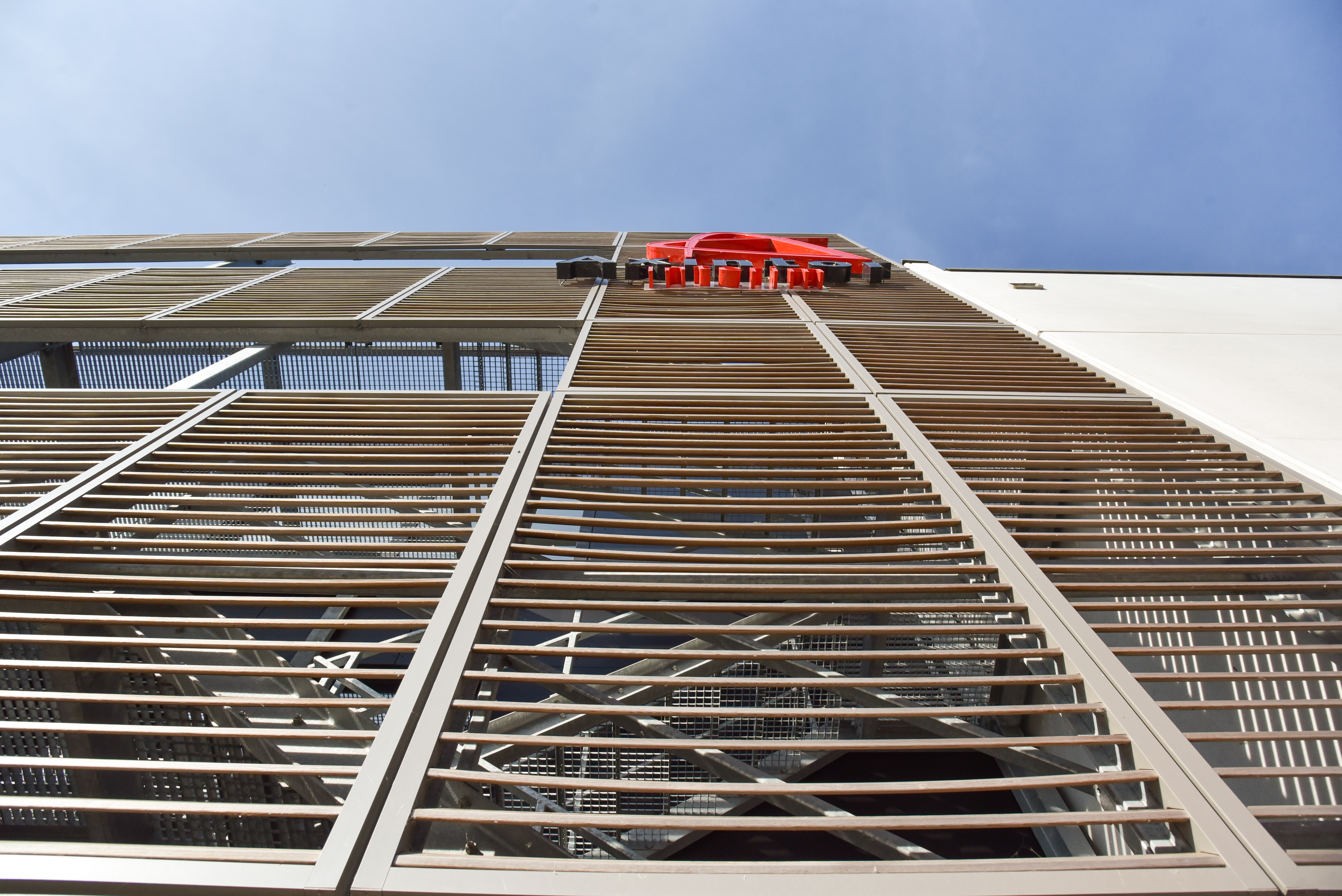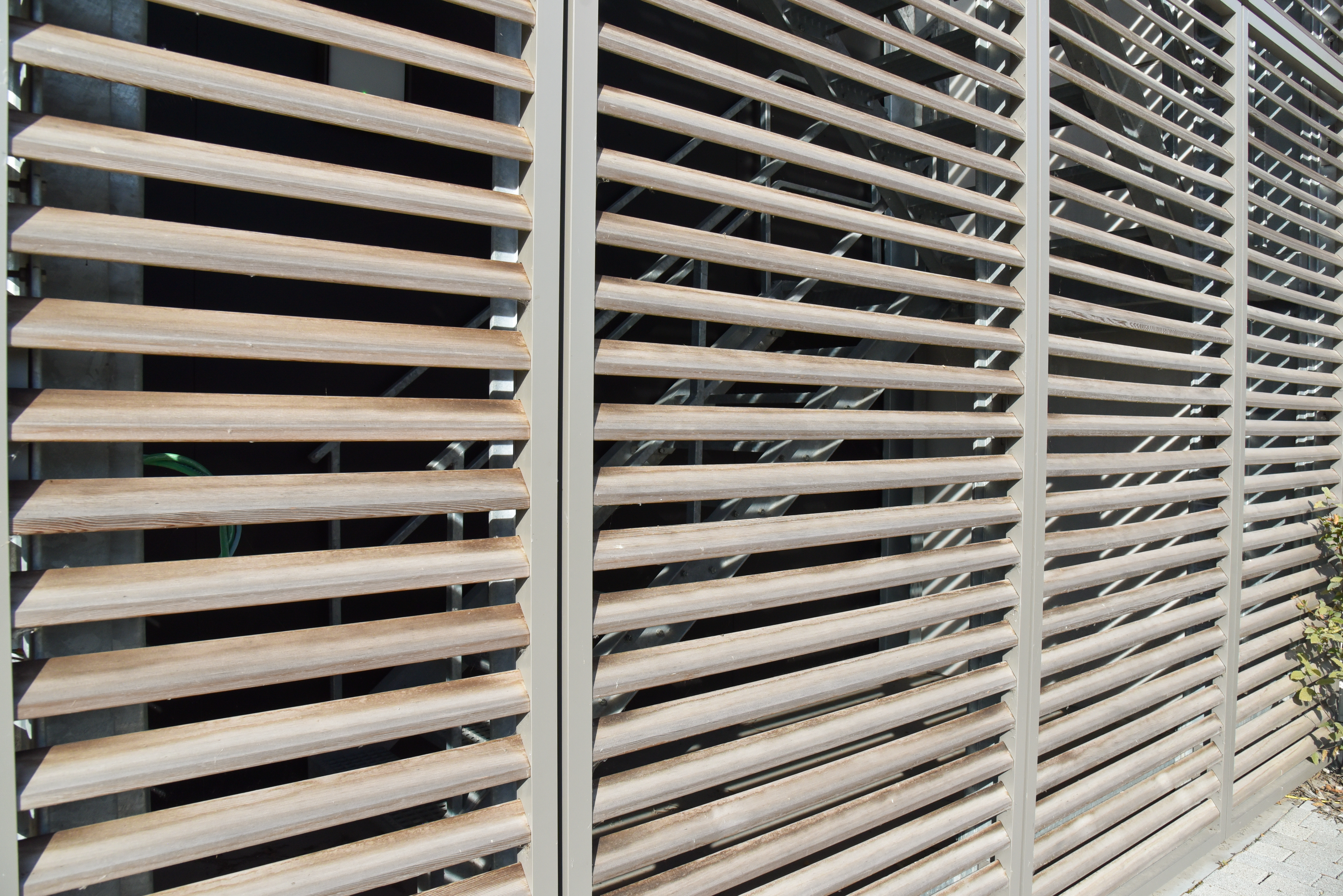 Les brise-soleil esthétiques en bois donnent un aspect chaleureux au bâtiment Axintor. En même temps, le système empêche la chaleur solaire de pénétrer dans le bâtiment.