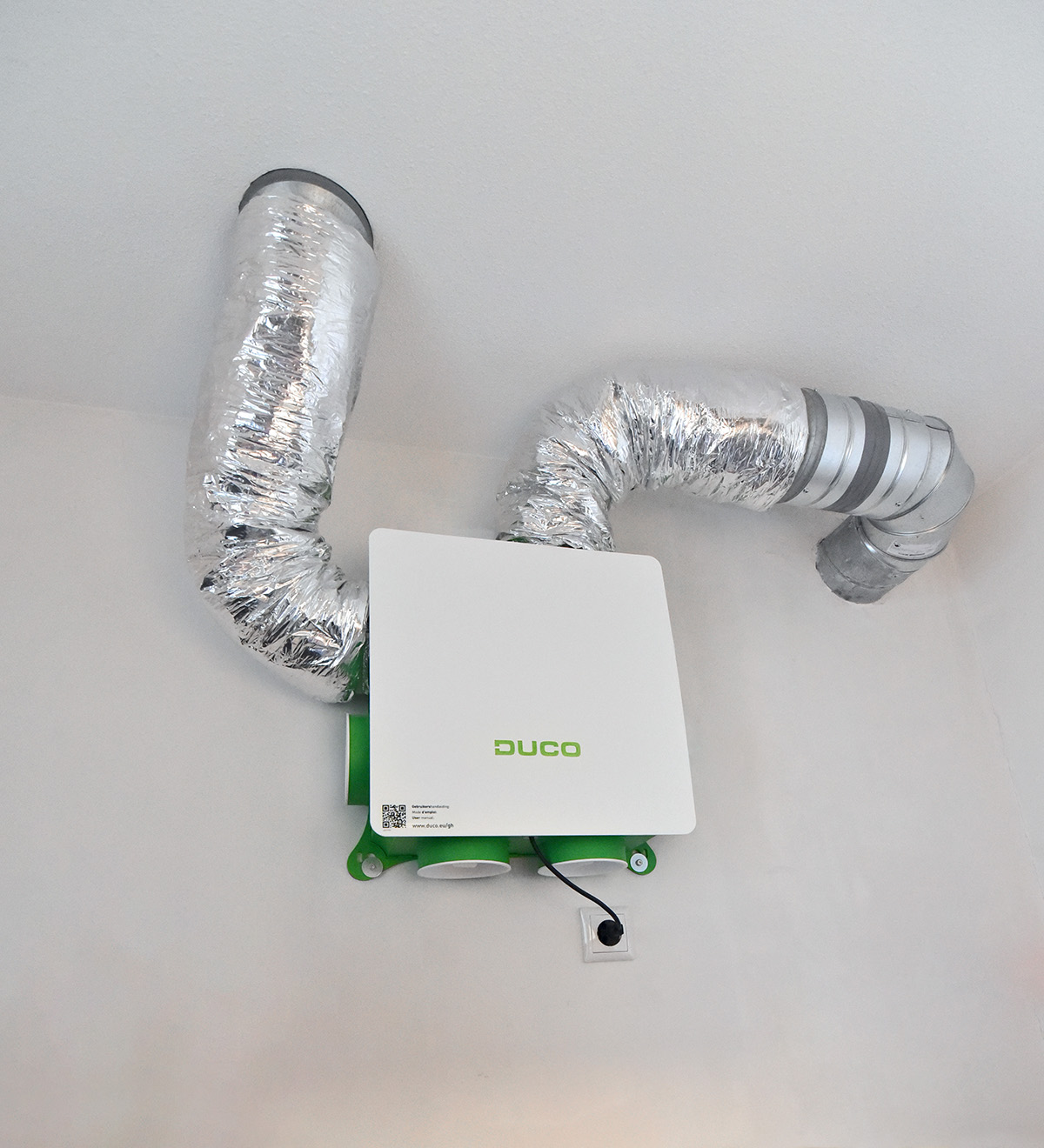 Le choix du bon système de ventilation devient donc une considération importante. « Pour une extraction efficace de l’air, nous avons recommandé la  », explique M. Houben. « En effet, la Ventilation Mécanique Contrôlée avec commande intelligente par mesure du CO2 et de l’humidité assure une qualité d’air parfaite dans chaque pièce en évacuant l’air pollué et humide de manière extrêmement silencieuse. »