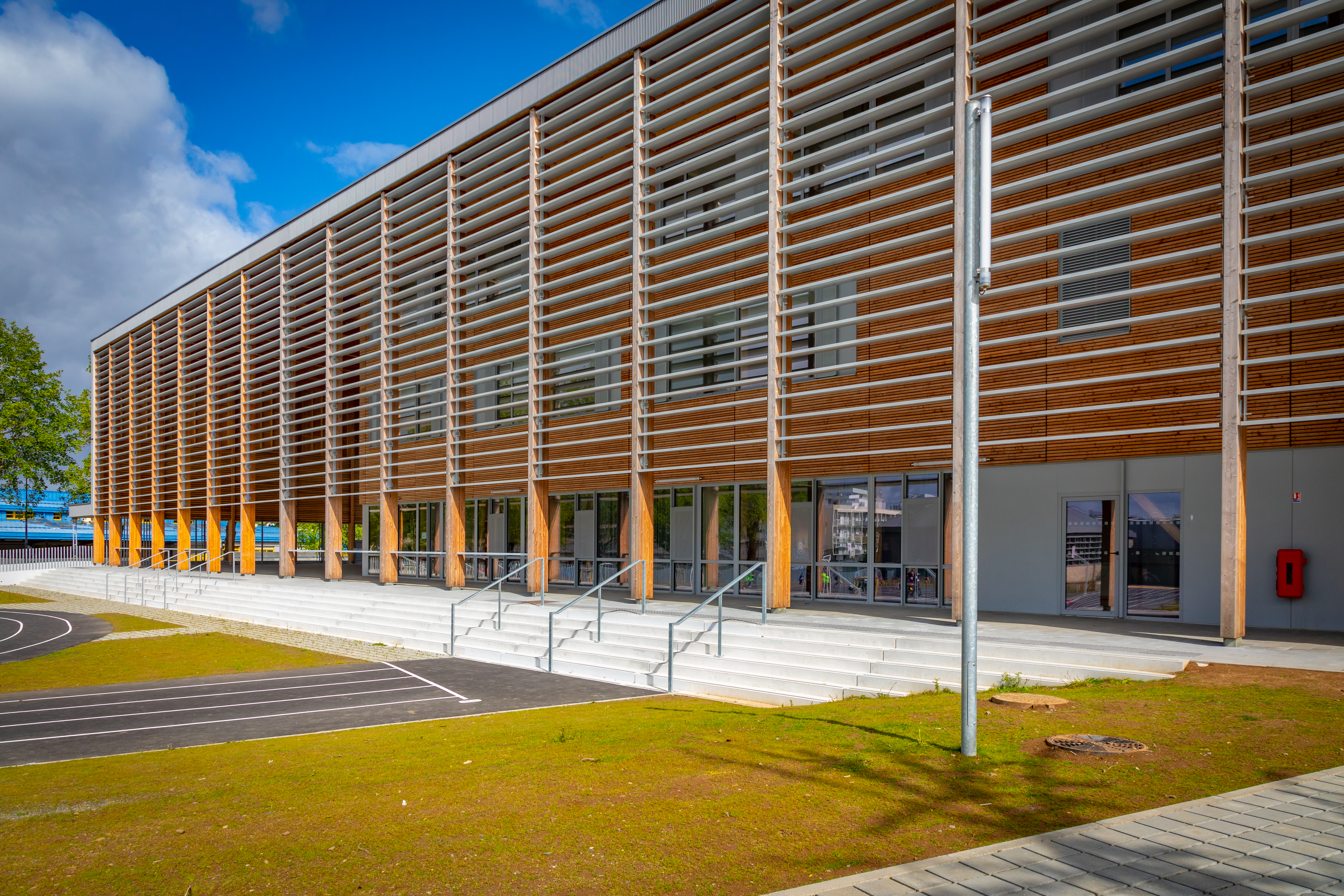 En bref : une combinaison optimale de protection solaire, de lutte contre la chaleur et d'un look épuré fait du collège Jean-Racine un bâtiment scolaire ultramoderne du 21e siècle.
