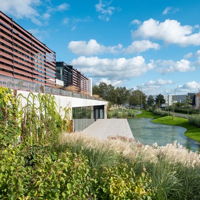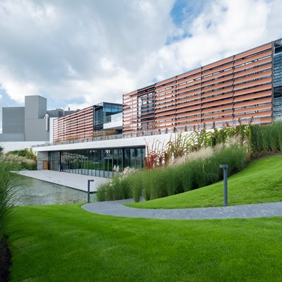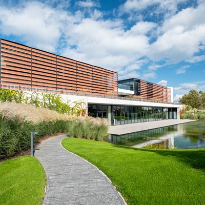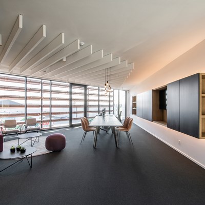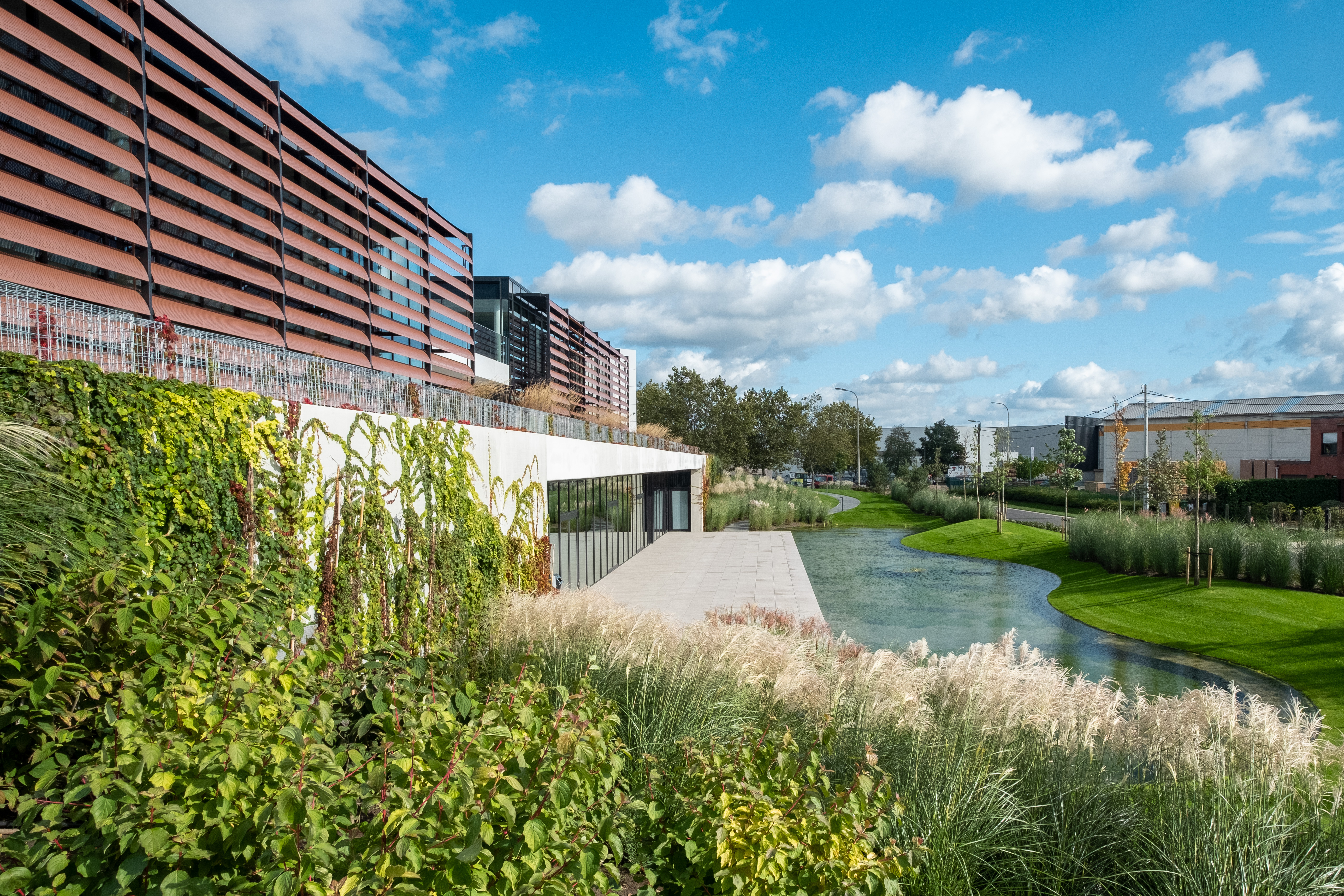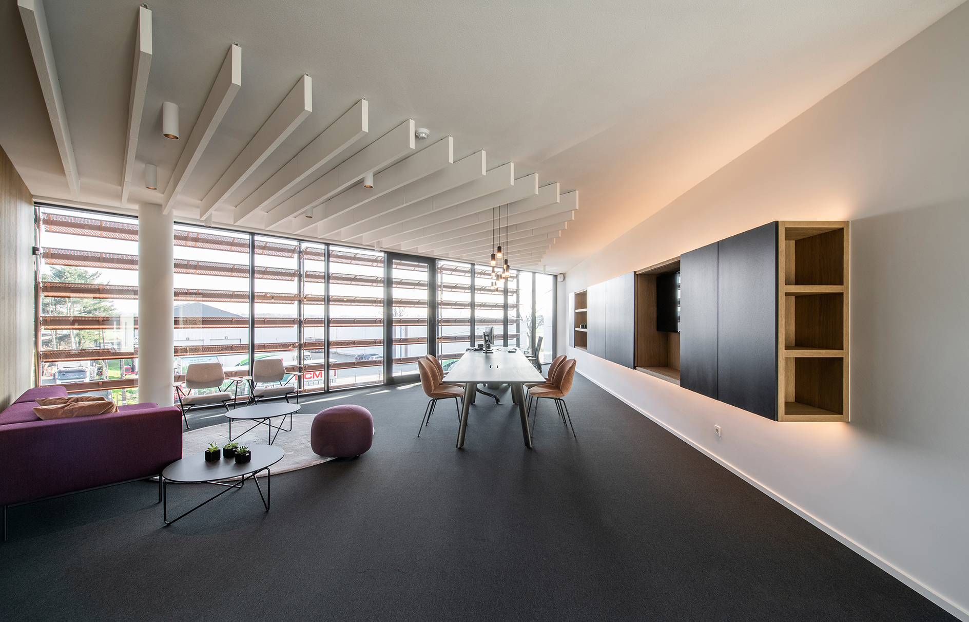 Ce projet abrite non seulement les services centraux, mais sert également de centre de conférence. Une mission sur laquelle l’architecte Reginald Schellen revient avec plaisir : « La symbiose idéale entre le bâtiment et son environnement rend ce projet vraiment unique. Le bâtiment s’encastre dans la nature, ce qui reflète la philosophie écologique de l’entreprise. »