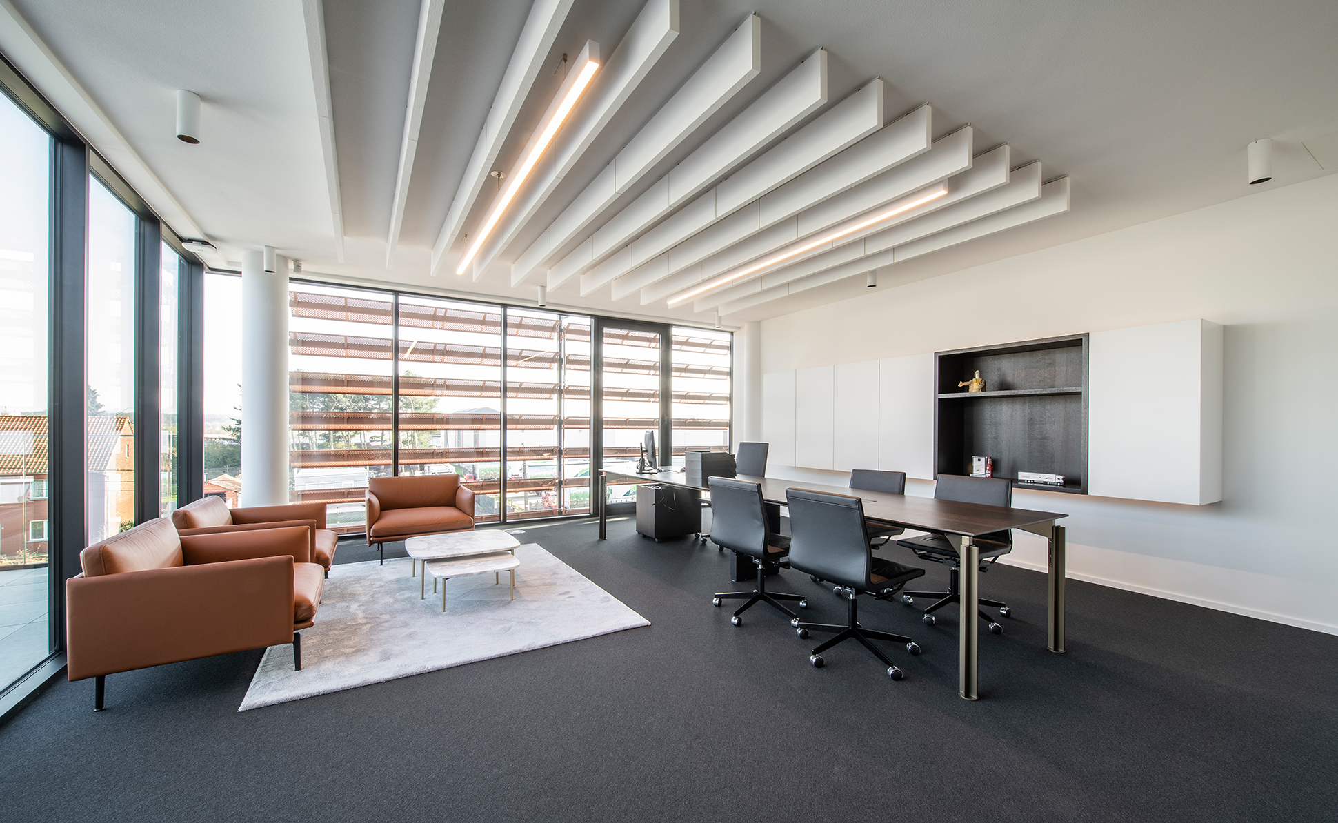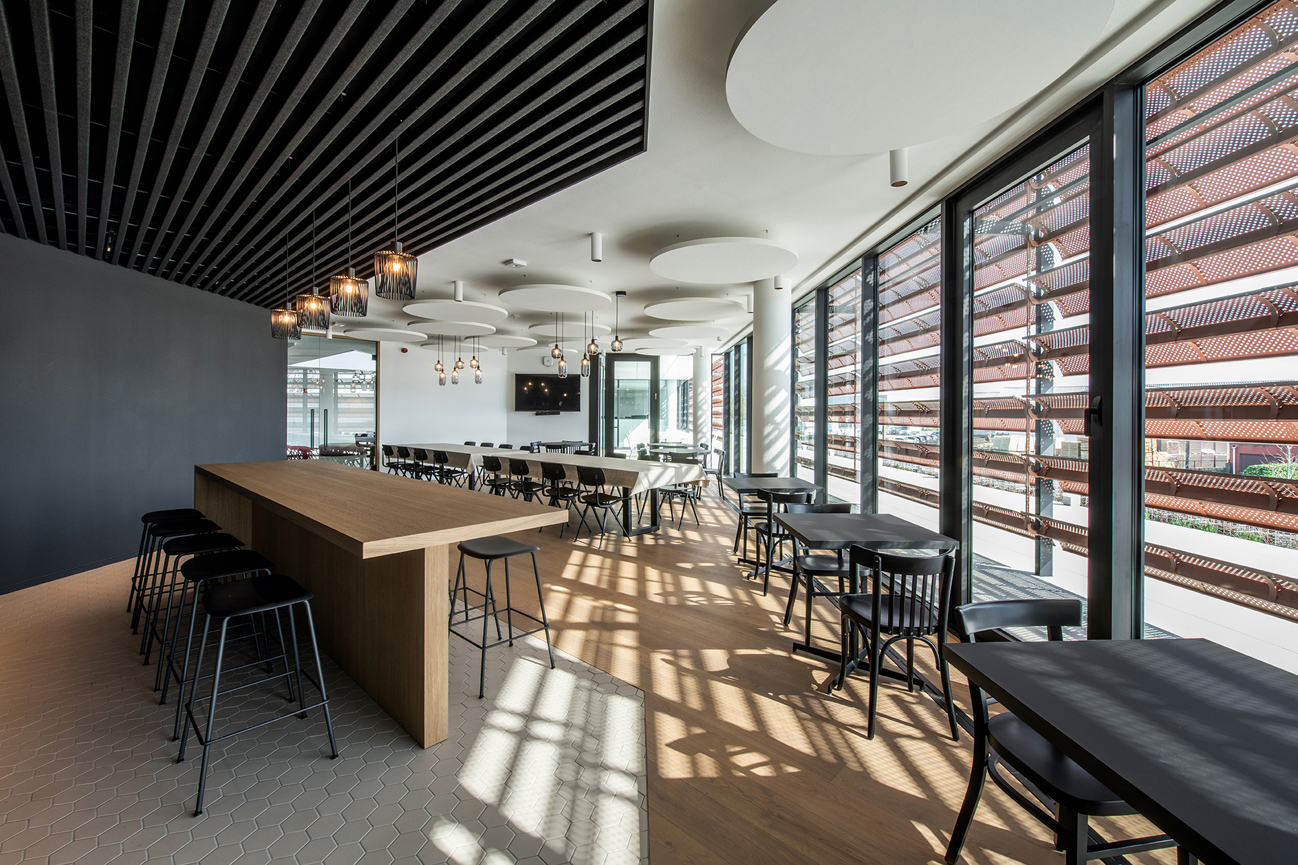« Le modèle DucoSun Wing est perforé et garantit une harmonie parfaite entre la protection solaire et l’ombrage », déclare Pieter Decat, conseilleur technico-commercial. « La lame en forme d’aile présente un design urbain et peut pivoter avec le soleil, ce qui permet de contrôler la pénétration de la lumière. Elle permet de créer plus d’ambiance dans la pièce. La position des lames peut être réglée pratiquement en continu et permet d’empêcher la lumière gênante de pénétrer sur le lieu de travail, peu importe la luminosité du soleil. La protection solaire structurelle de DCM garantit non seulement une protection efficace contre les rayons du soleil, mais également une baisse de la température intérieure moyenne de 12 %, ce qui contribue à lutter contre la surchauffe. » Reginald Schellen conclut : « C’est un projet dont nous pouvons légitimement être fiers. »