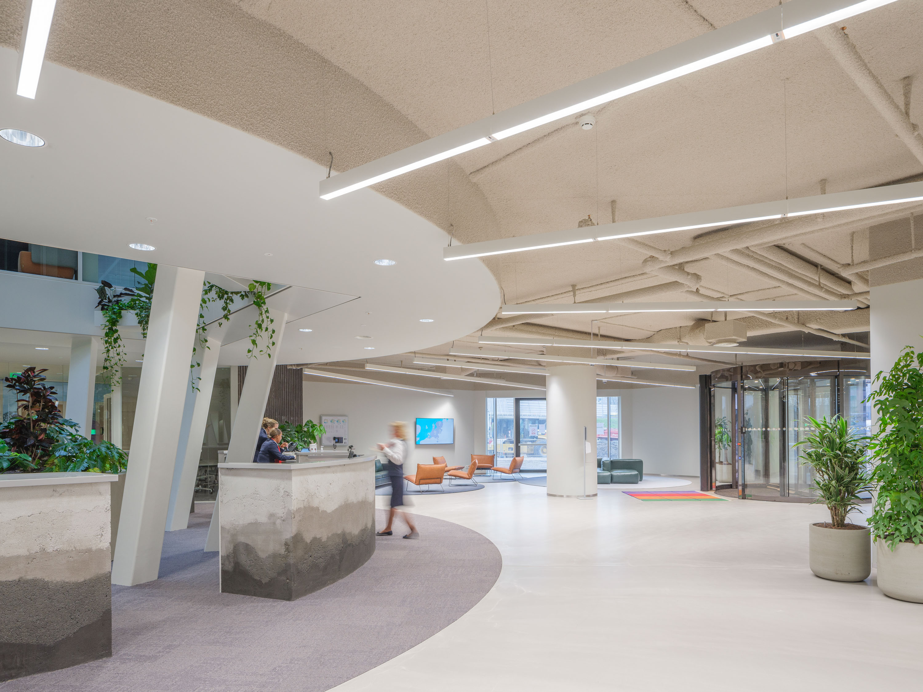 Les aérateurs DucoMax Largo ZR ont été installées de manière invisible - pose sur linteau compacte - et fournissent de l'air frais aux espaces de bureaux.
