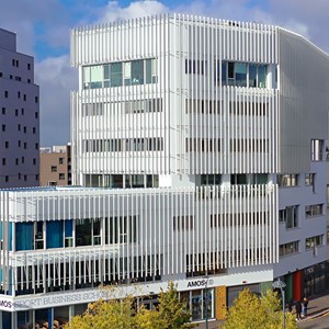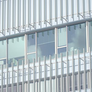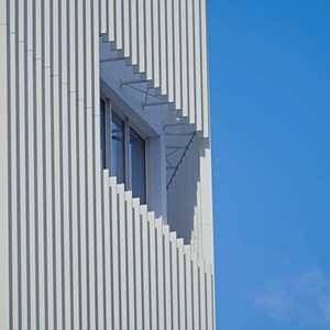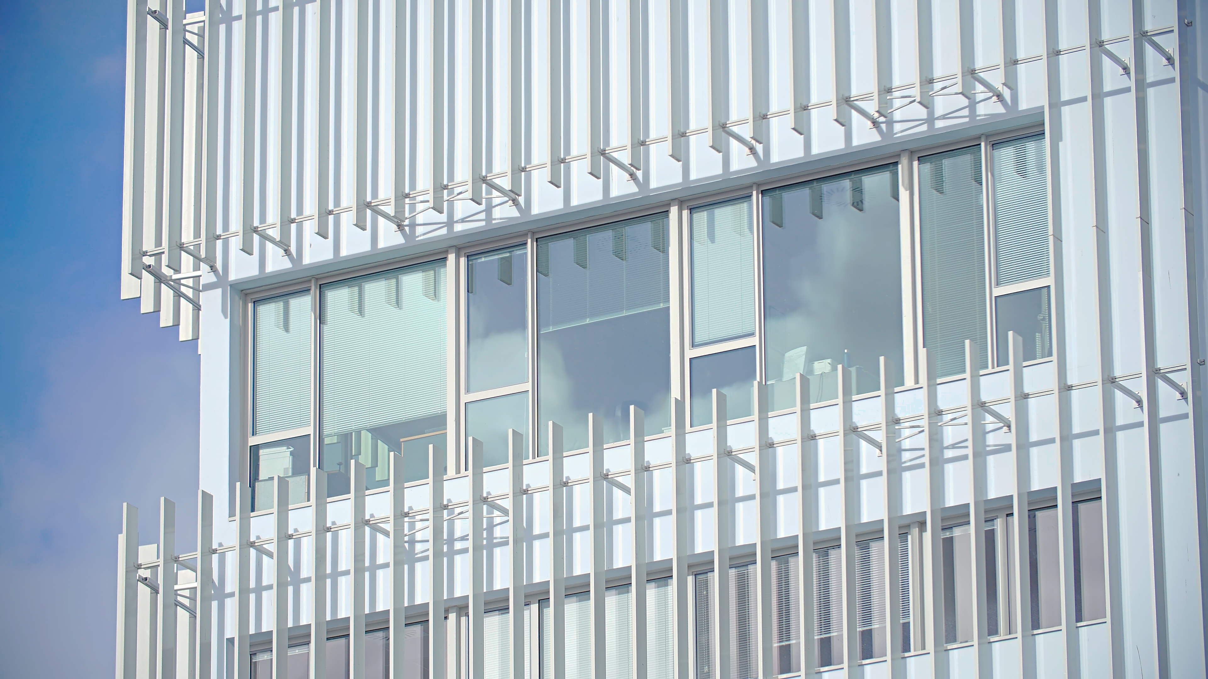 Des brise-soleil DucoSun Cubic ont été utilisés pour habiller la façade. Les lames blanches ont une double fonction. D'une part, elles assurent une protection solaire optimale et créent ainsi un climat intérieur sain. D'autre part, les lames montées verticalement donnent à l'ensemble du bâtiment un aspect très épuré et contemporain. Ils font ainsi en sorte que le bâtiment soit un véritable point d'attraction dans la rue.