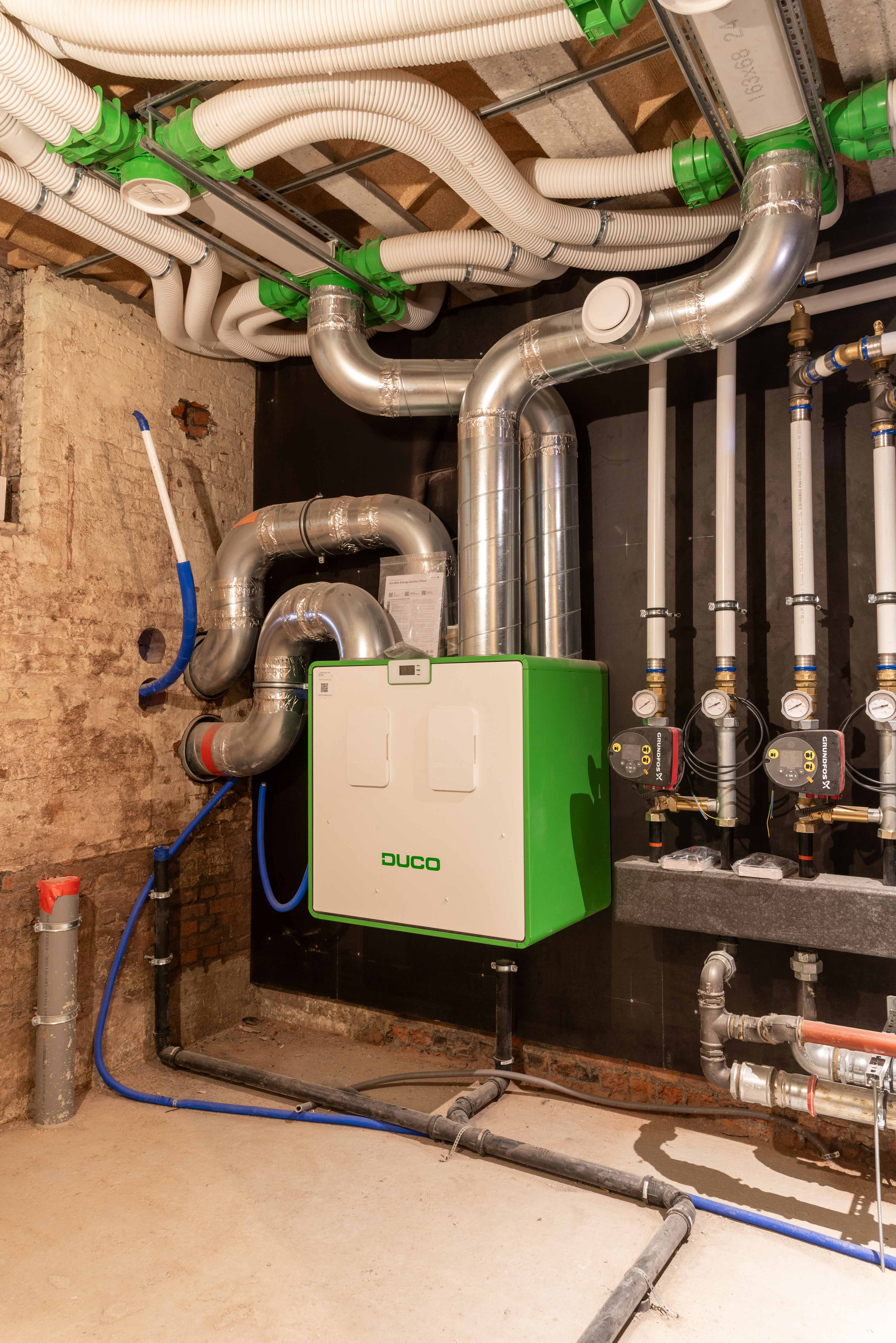 L'étape suivante de ce projet de rénovation est l'installation de la DucoBox Energy Comfort Plus, une unité de ventilation mécanique avec récupération de chaleur (VMC double flux). Cette unité compacte est connue pour sa grande efficacité et son contrôle intelligent à la demande, garantissant une excellente qualité de l'air intérieur et d'importantes économies d'énergie.