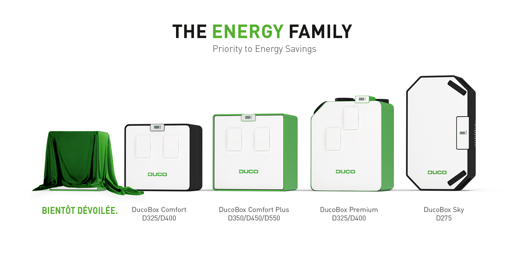 La DucoBox Energy Sky, VMC double flux compactes, introduite pour la première fois l'année dernière, a depuis prouvé sa valeur dans de nombreux projets. Cette technologie avancée reste un produit phare de notre gamme Energy Family et sera naturellement mise en avant cette année également.
