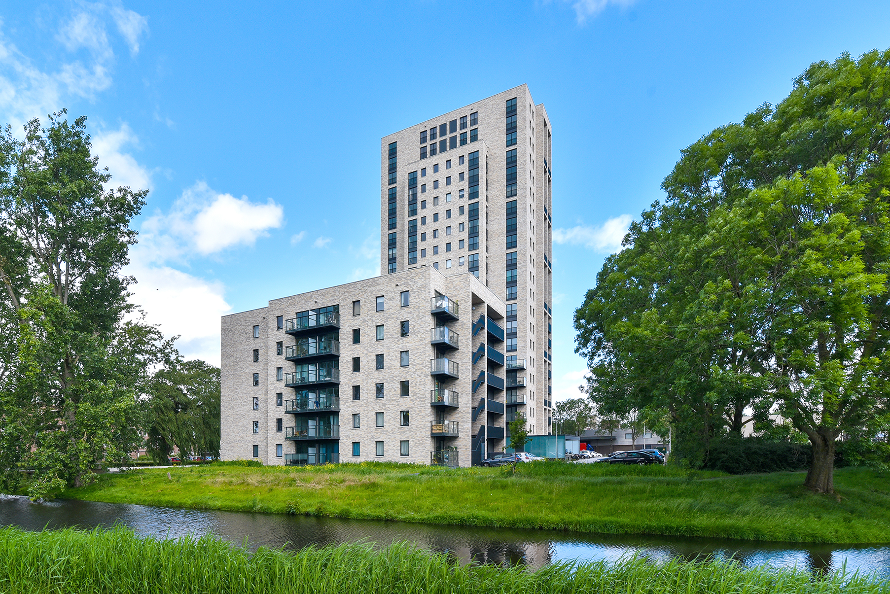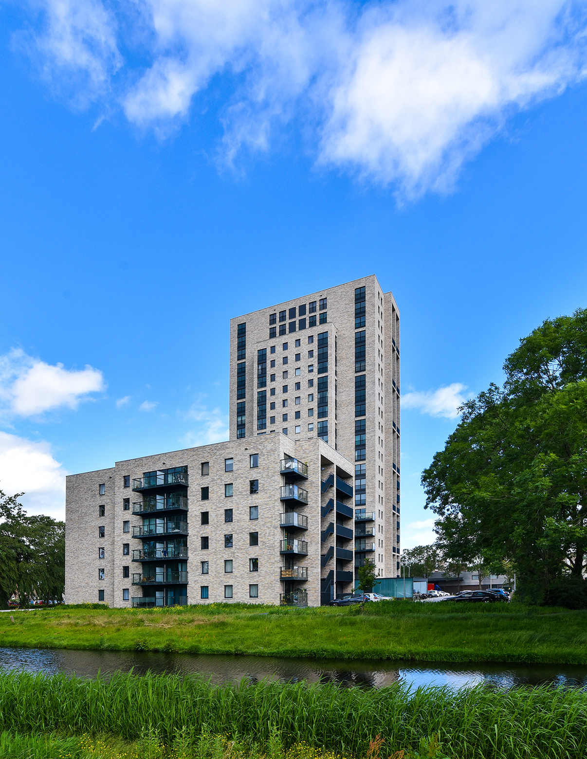 À l’emplacement de l’ancienne tour de la Rabobank, à Groningue, se trouve aujourd’hui le complexe d’appartements Polaris. Le complexe accueille 207 étudiants et s’élève à 65 mètres de haut au-dessus du quartier de Paddepoel. La tour résidentielle Polaris illustre comme aucune autre la façon dont le climat intérieur peut être élevé à un niveau supérieur, même dans les constructions en hauteur.