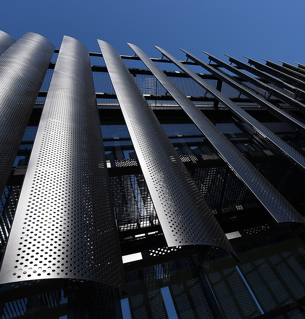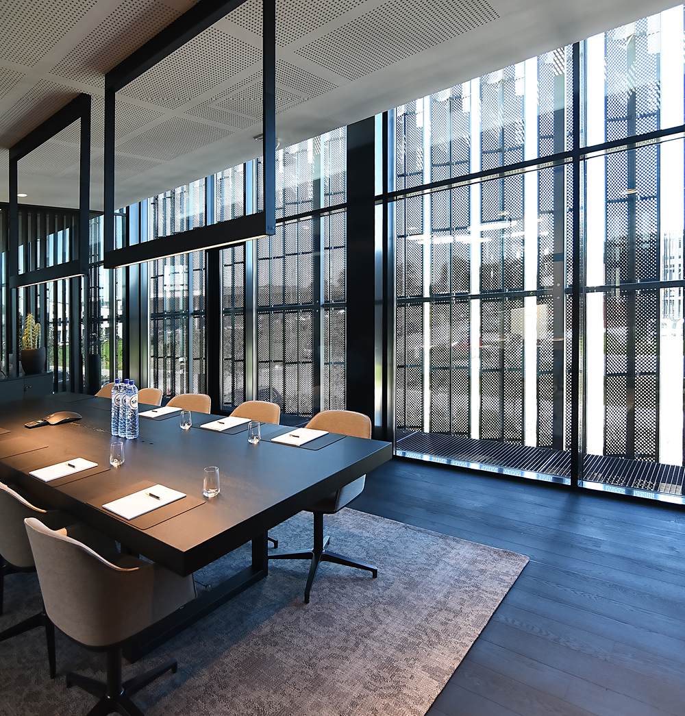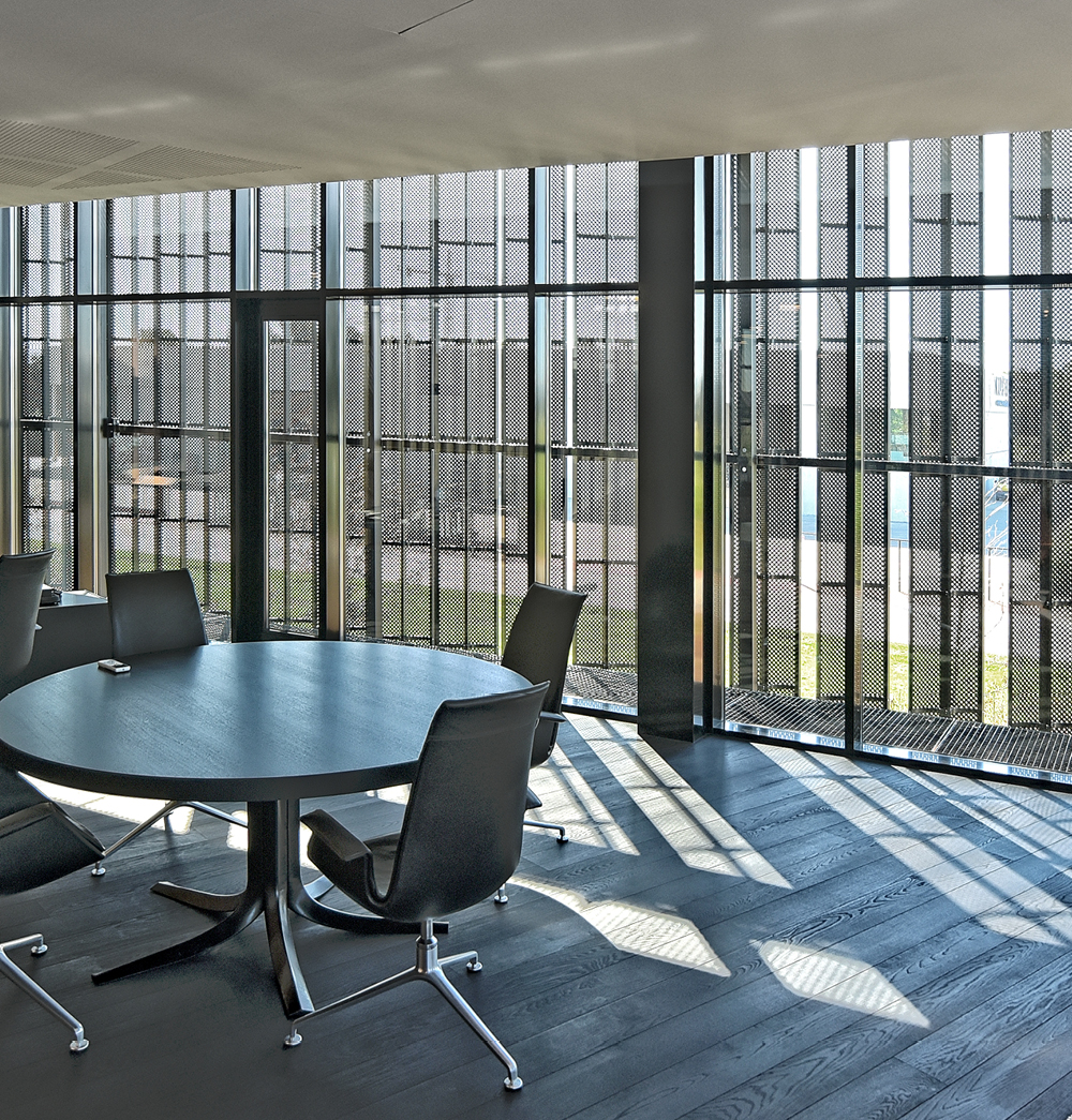 Les architectes ne doivent plus, aujourd'hui, sacrifier le style à l'efficacité car les types de protections solaires ne se comptent plus, depuis les protections solaires en tissus jusqu'aux protections solaires structurelles. Dans un souci d'esthétique toutefois, un concept de protection solaire architecturale unique a été choisi.