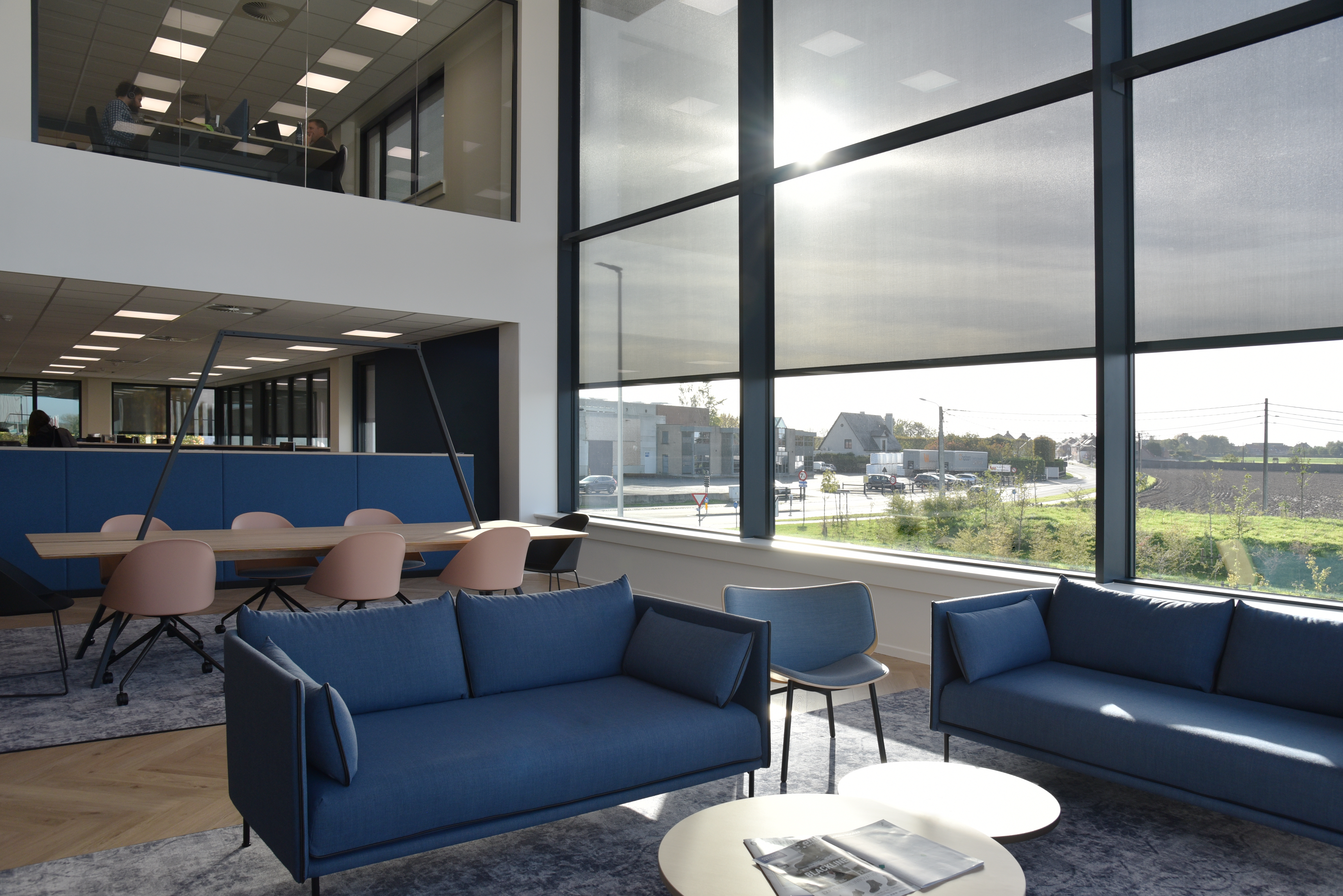 Les murs-rideaux apportent immédiatement une valeur esthétique au bâtiment. C'est également le cas du bâtiment Prosafco. Mais pour des vitres aussi grandes, il faut tenir compte de la fonctionnalité en plus de l'esthétique. Après tout, personne n'aime travailler dans un bâtiment où les températures montent en flèche pendant l'été. Il est donc d'autant plus important d'accorder la même attention au confort intérieur.