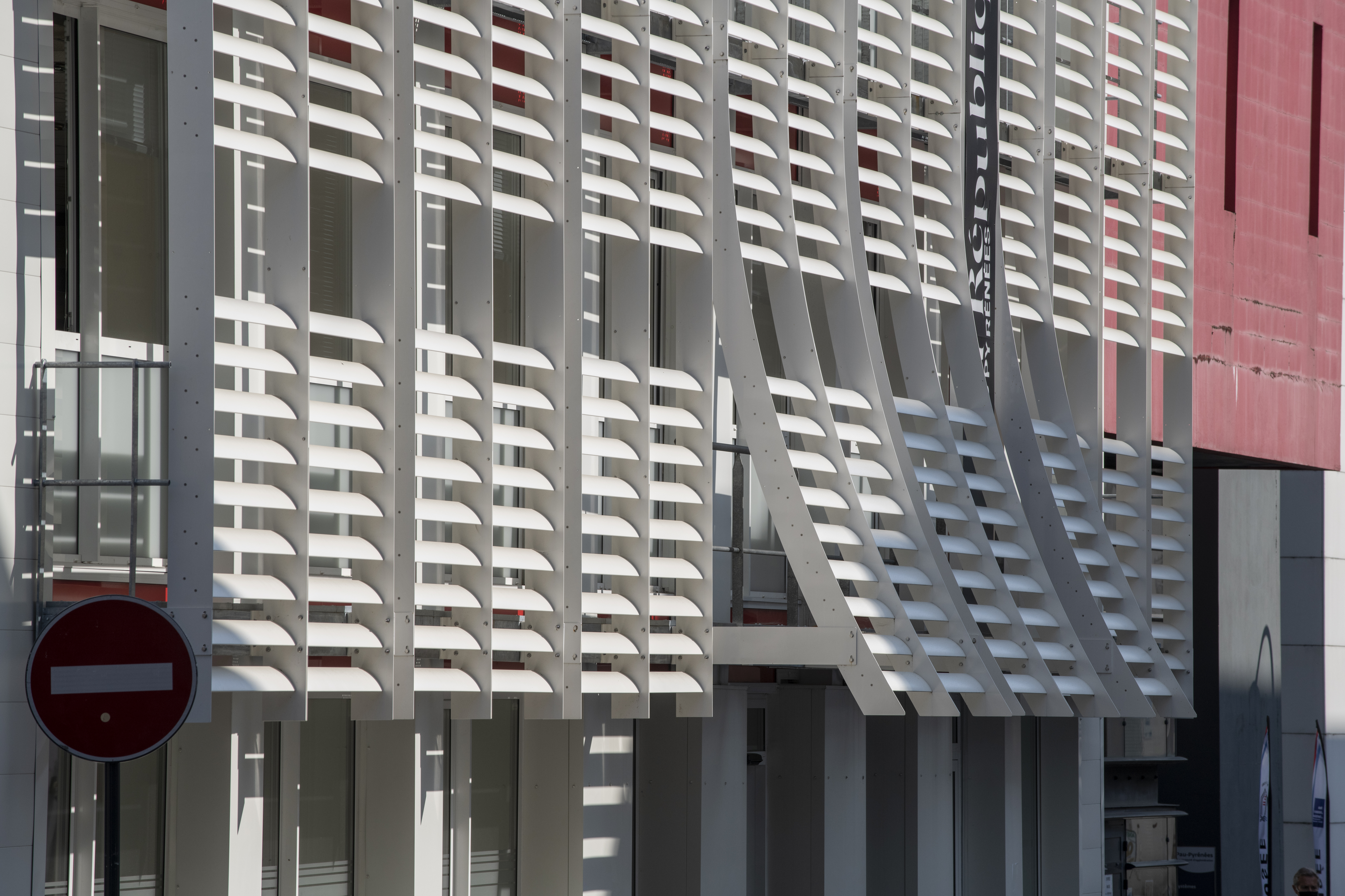 Une protection solaire architecturale pour une maison d’édition française. (Photos © Luc Hautecoeur)