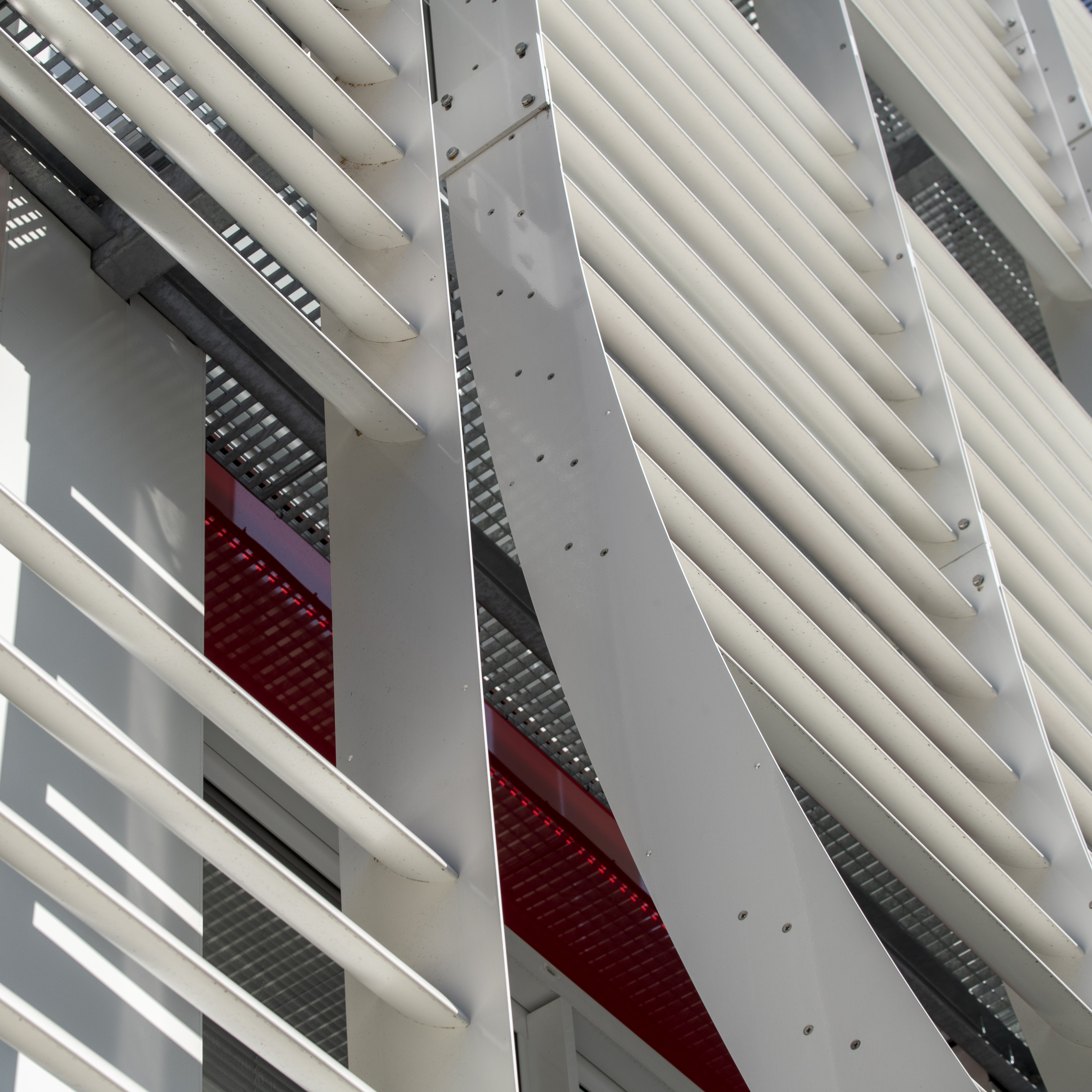 L’objectif de la rénovation était d’offrir un confort optimal pour les travailleurs. Les rénovations avaient pour but d’apporter à la fois un confort thermique et acoustique. Et c’est ici que DUCO entre en jeu. Le bureau d’architectes Fabrice Delettre (Biarritz) et le constructeur métallique Cancé ont conçu, en collaboration avec DUCO, un environnement de travail optimal pour les travailleurs de Pyrénées Presse. Le DucoSun Ellips 150 évite dans un premier temps que les fenêtres ne soient exposées à la lumière directe du soleil. Le système permet en outre d’améliorer sensiblement le confort thermique, mais aussi le confort visuel des travailleurs. La réflexion du soleil sur les nombreux écrans d'ordinateur de la maison d’édition, au sud de Pau, appartient désormais au passé. La forme elliptique des ventelles est en même temps garante d’un maximum de lumière diffuse naturelle. Une protection solaire qui laisse malgré tout passé un peu de lumière naturelle !