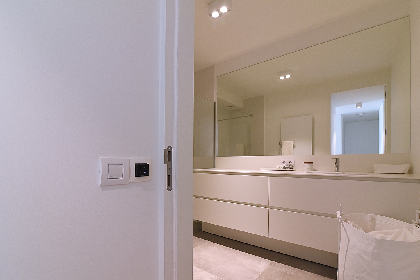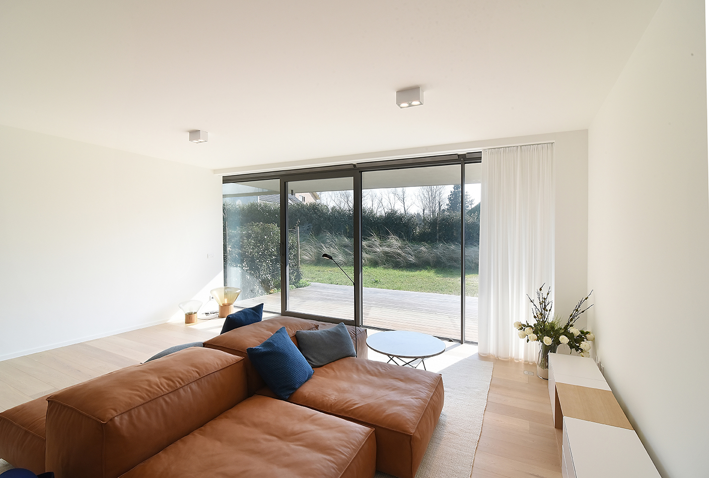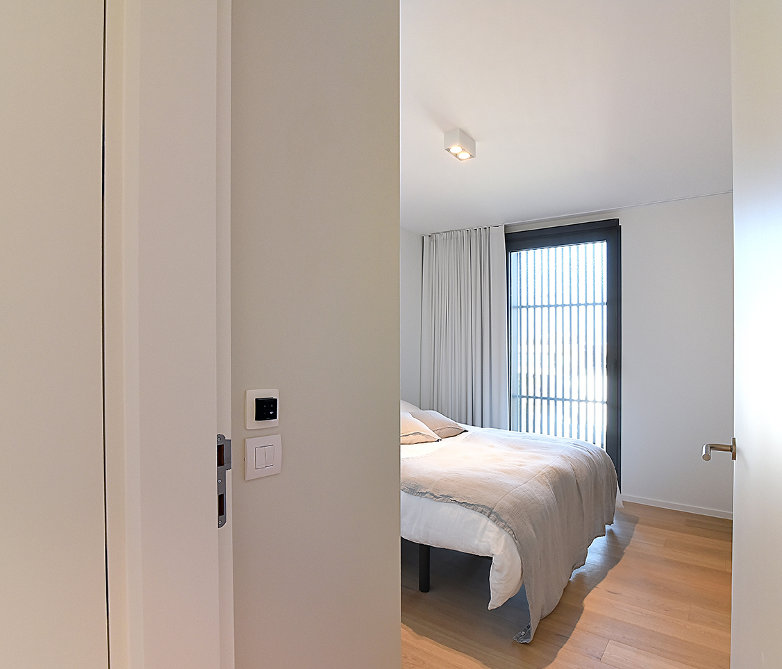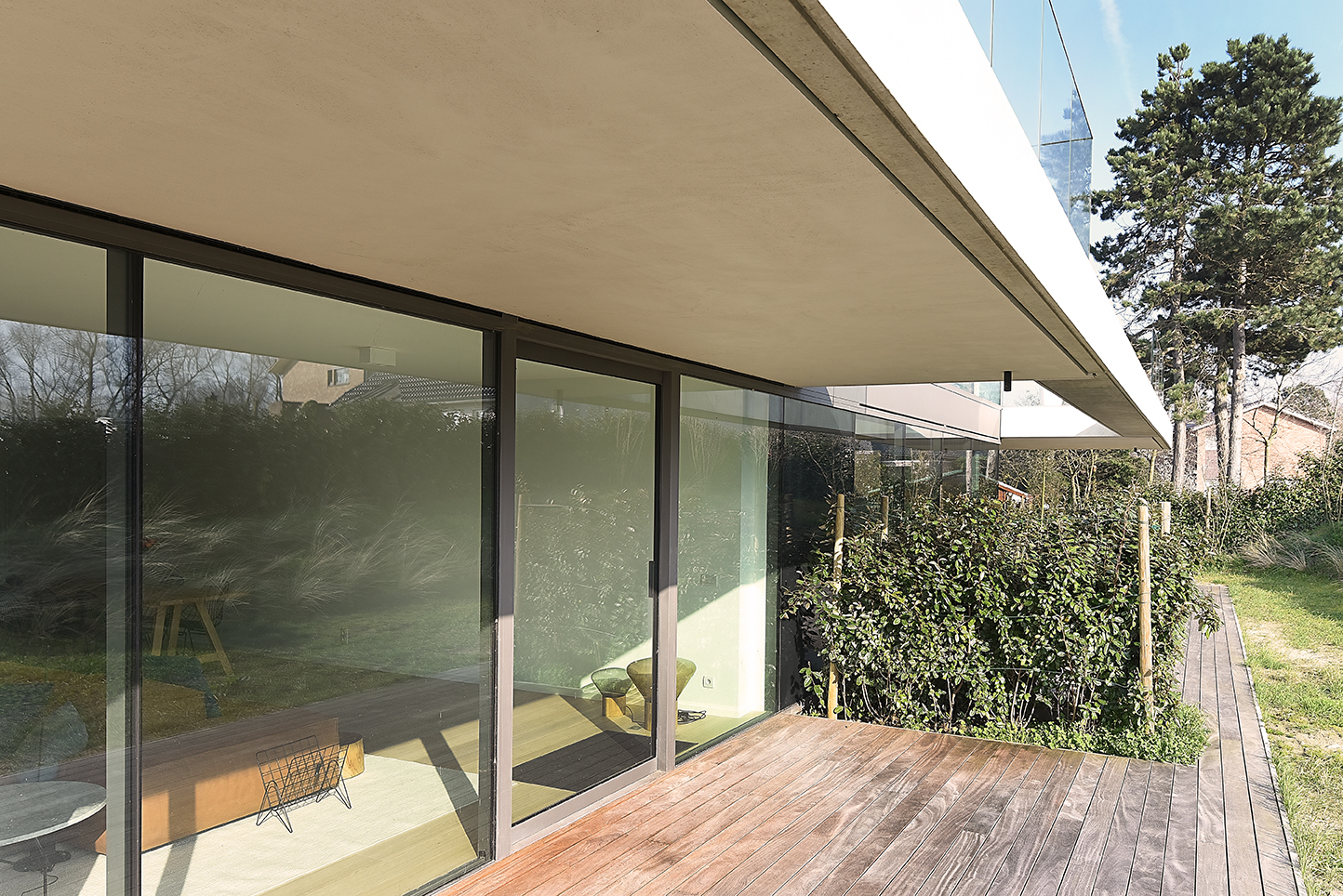 Les aérateurs ont été intégrés discrètement dans les profils de fenêtre, gage de la sobriété du design. « Dans cette résidence, une multitude d'aérateurs non fonctionnels ont également été intégrés car le nombre d'aérateurs nécessaire pour assurer la ventilation n’était pas très élevé. On arrive ainsi, tant de l’extérieur que de l’intérieur, à une uniformité esthétique dans cette structure minimaliste », ajoute Stevens.