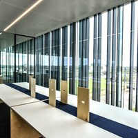 Pendant les mois d'hiver, les rayons du soleil fournissent une quantité bienvenue d'énergie thermique. Mais cela aussi a ses inconvénients. Pour éviter la surchauffe pendant les mois d'été les plus chauds, il est préférable d'éviter autant que possible les rayons directs du soleil sur les fenêtres. Dans ce cas, la protection solaire architecturale - DucoSun Cubic - apporte heureusement un soulagement. Résultat ? Une réduction de la charge de refroidissement allant jusqu'à 63% et une baisse significative de la température, sans avoir à déployer un système de refroidissement consommateur d'énergie.