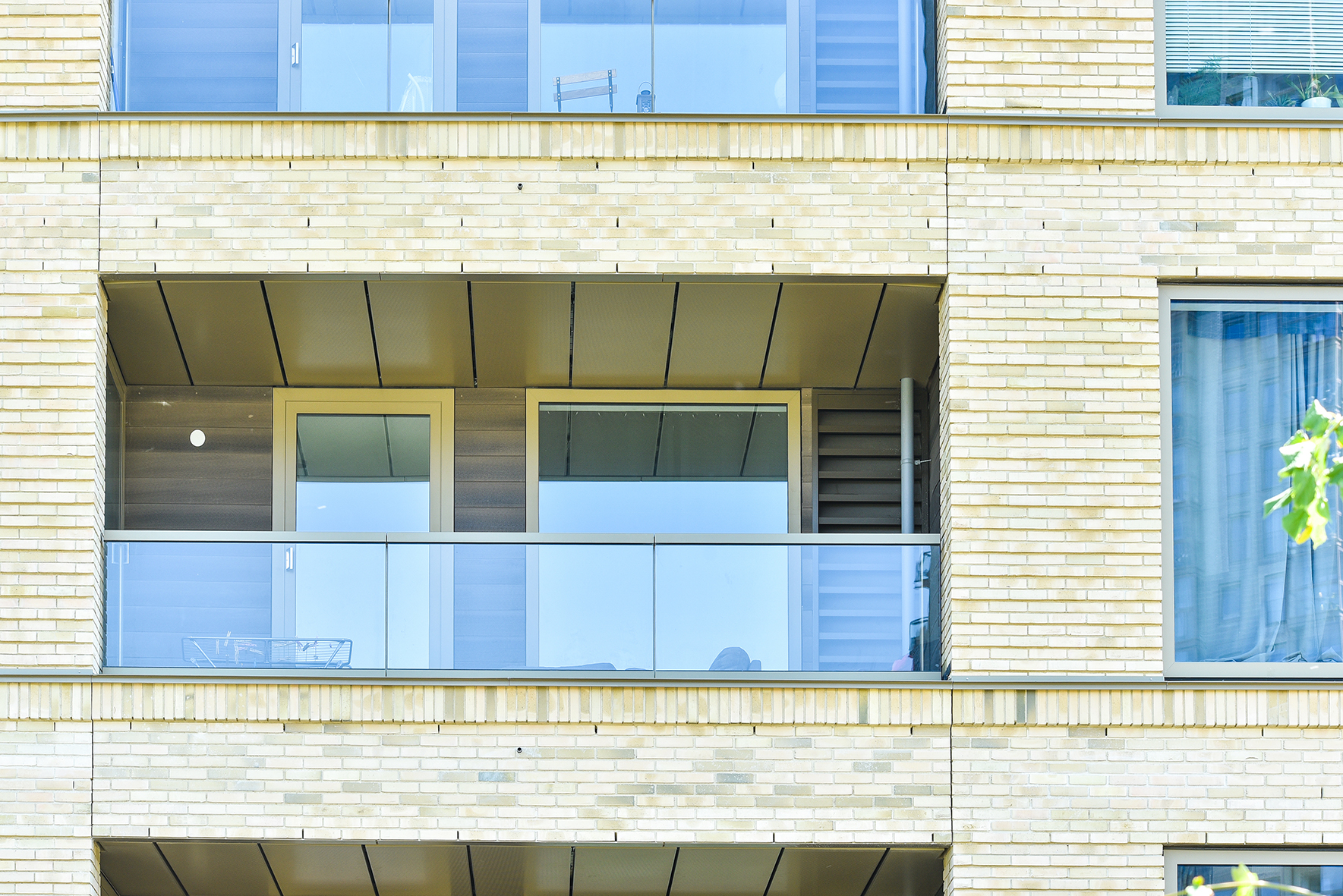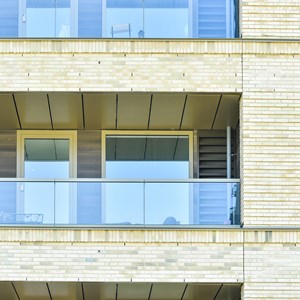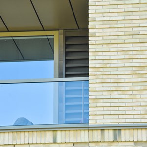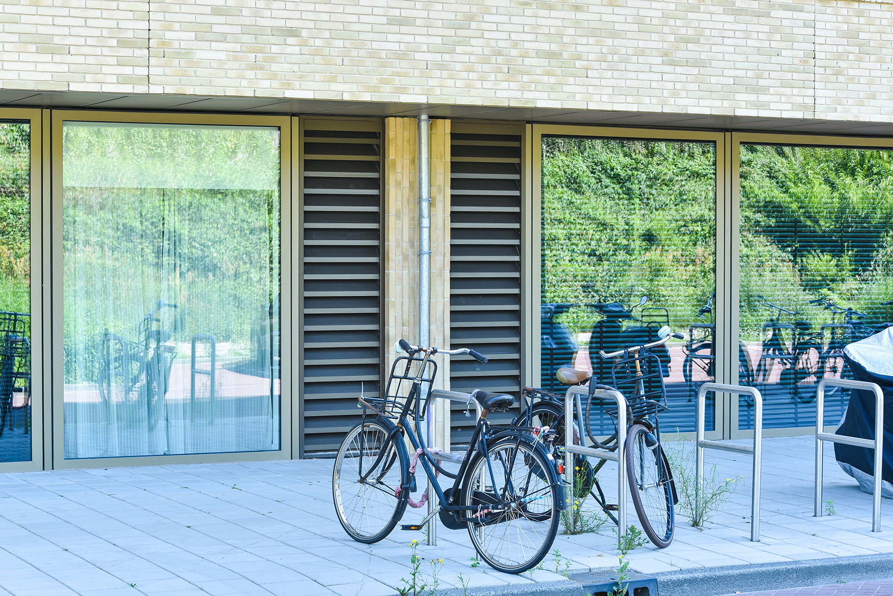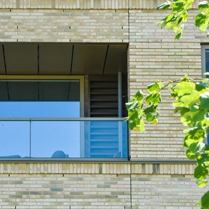 « Un espace extérieur anti-bruit n’était pas obligatoire, mais une façade anti-bruit bien. Étant donné qu’une façade aveugle n’est pas requise, différentes alternatives purent être envisagées. On observe une nette préférence pour les grilles murales acoustiques par rapport aux solutions traditionnelles comme les balcons cloisonnés ou les écrans isophoniques pour bâtiment. ZZDP Architecten a décidé d’intégrer dans la façade lisse de la maçonnerie de première qualité. Les grilles sont dès lors intégrées dans les façades qui jouxtent les vérandas.