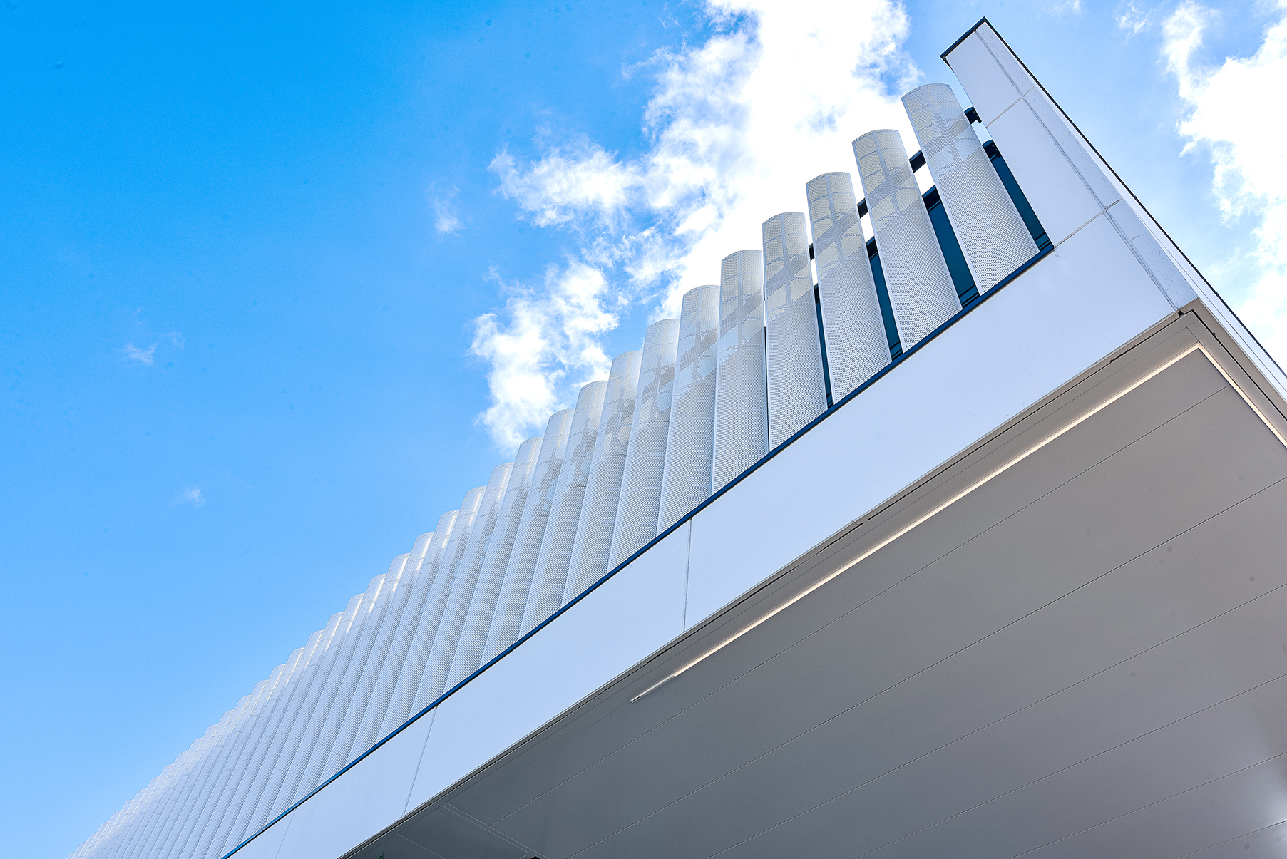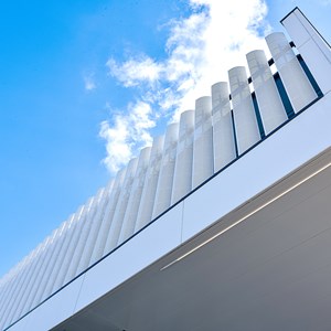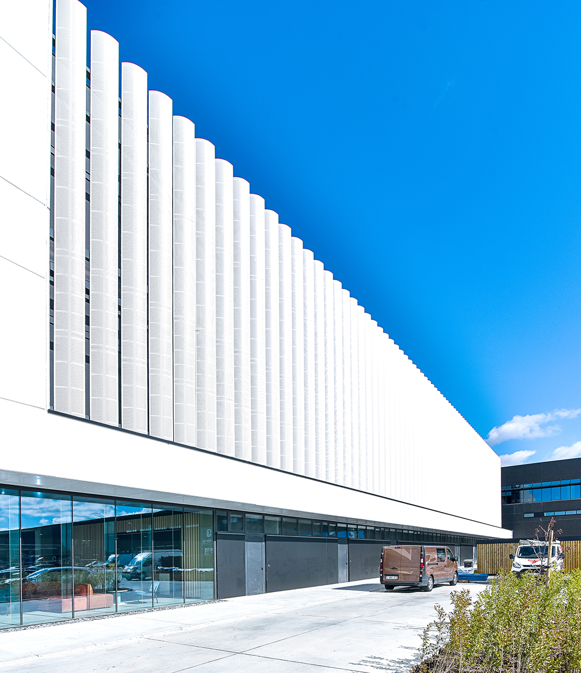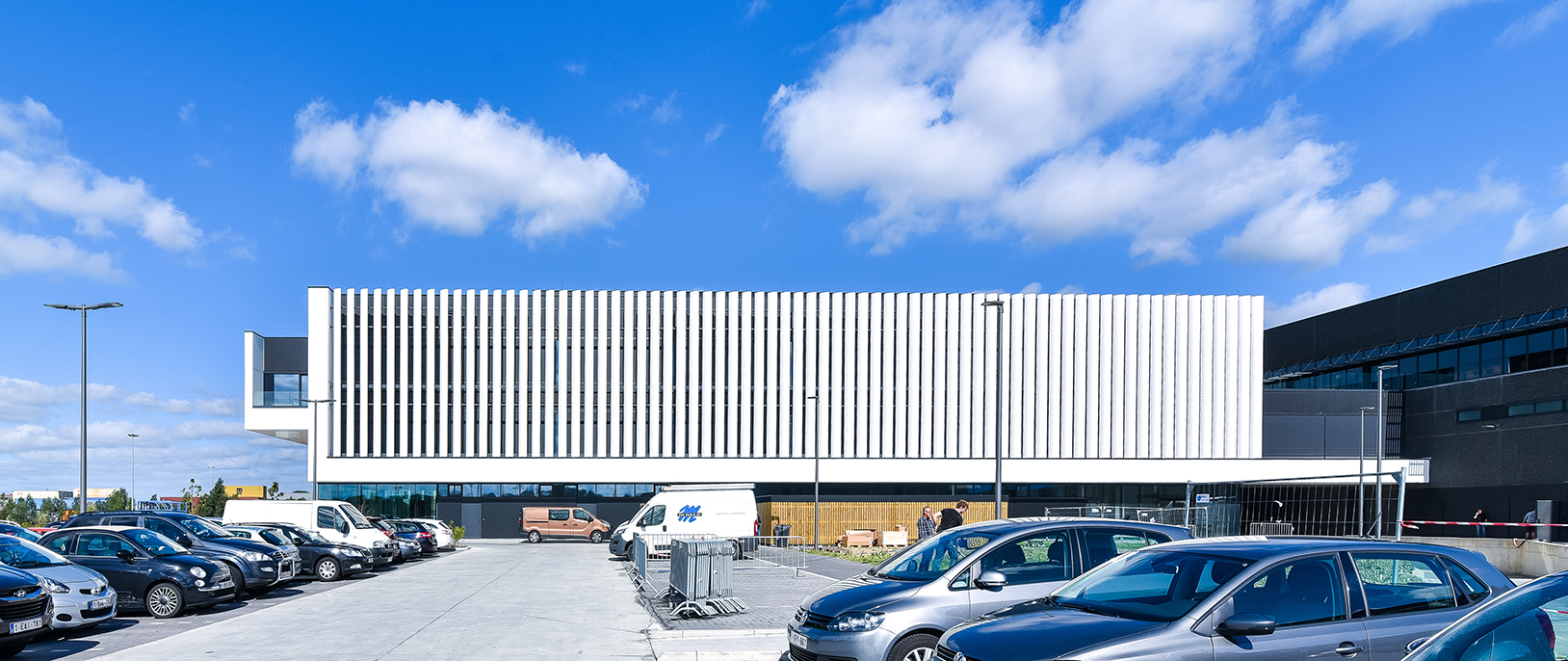Le nouveau site du distributeur Van Marcke doit être la carte de visite en matière de durabilité et d’innovation. Dans l’immeuble de bureaux, ce qui prime, ce sont le facteur humain, le confort de travail, l’apparence du bâtiment ainsi que les économies d’énergie », poursuit N. Karadjian. « Les lames DucoSun Wing en aluminium positionnées verticalement offrent une solution dans la lutte contre la surchauffe. Dans le même temps, elles apportent, de manière structurelle, un cachet architectural supplémentaire. Les lames en forme d’ailes font office de couche supplémentaire pour le mur-rideau. Elles réfractent la lumière du soleil et empêchent ainsi la température intérieure de trop s’élever lors des journées chaudes. Les reflets gênants sur les écrans d’ordinateur appartiennent donc définitivement au passé. »