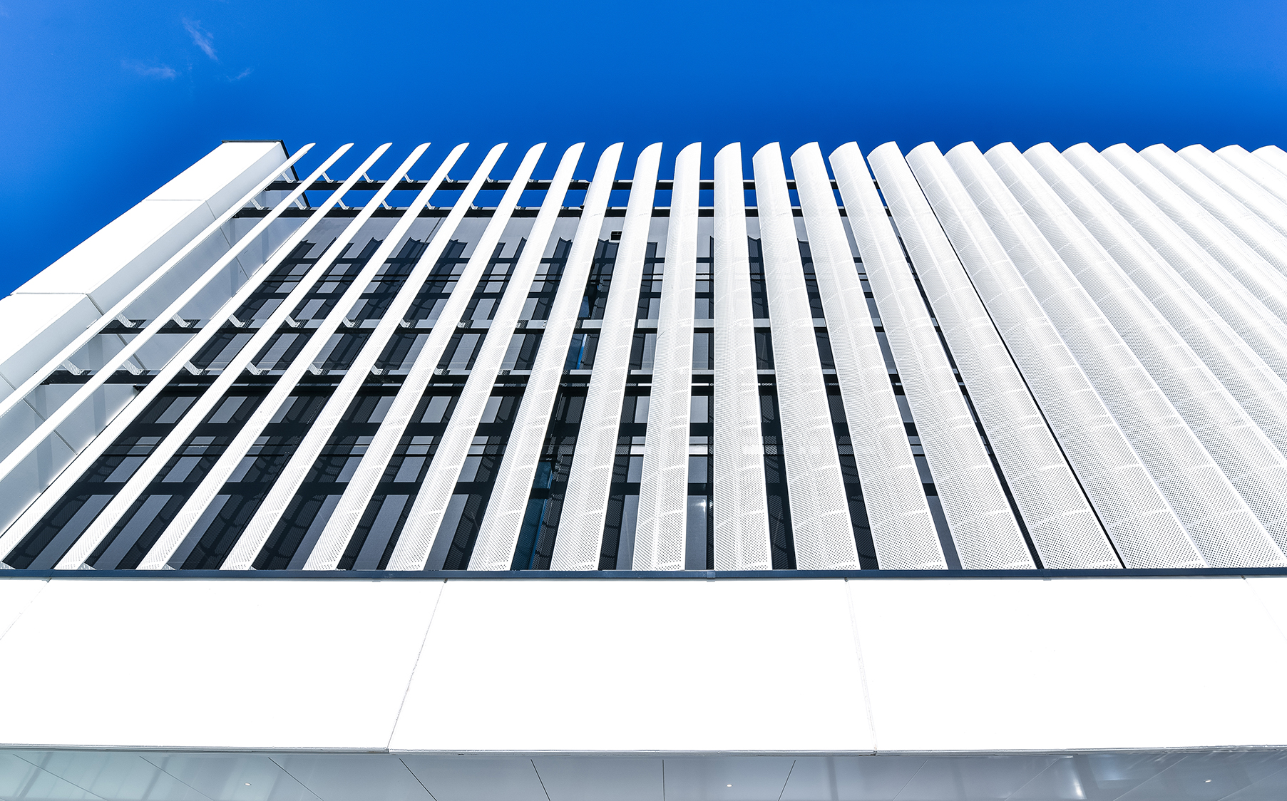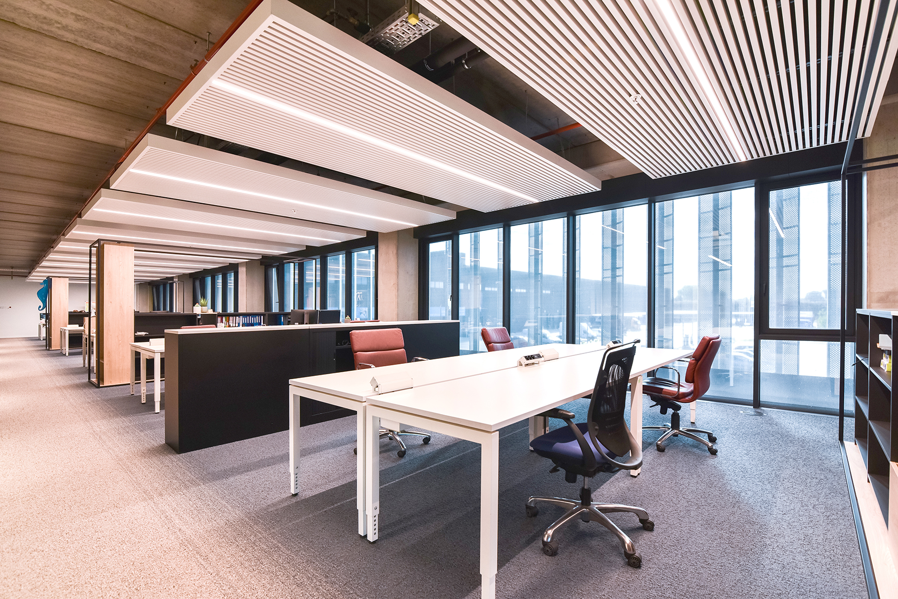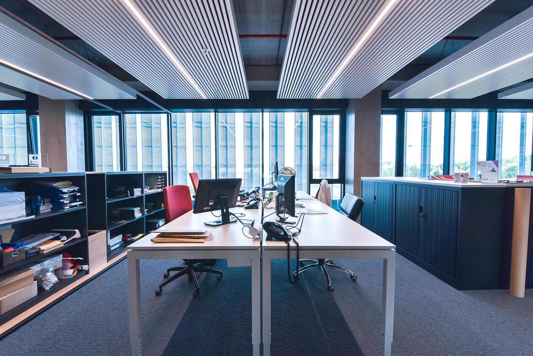 Le nouveau site du distributeur Van Marcke doit être la carte de visite en matière de durabilité et d’innovation. Dans l’immeuble de bureaux, ce qui prime, ce sont le facteur humain, le confort de travail, l’apparence du bâtiment ainsi que les économies d’énergie », poursuit N. Karadjian. « Les lames DucoSun Wing en aluminium positionnées verticalement offrent une solution dans la lutte contre la surchauffe. Dans le même temps, elles apportent, de manière structurelle, un cachet architectural supplémentaire. Les lames en forme d’ailes font office de couche supplémentaire pour le mur-rideau. Elles réfractent la lumière du soleil et empêchent ainsi la température intérieure de trop s’élever lors des journées chaudes. Les reflets gênants sur les écrans d’ordinateur appartiennent donc définitivement au passé. »