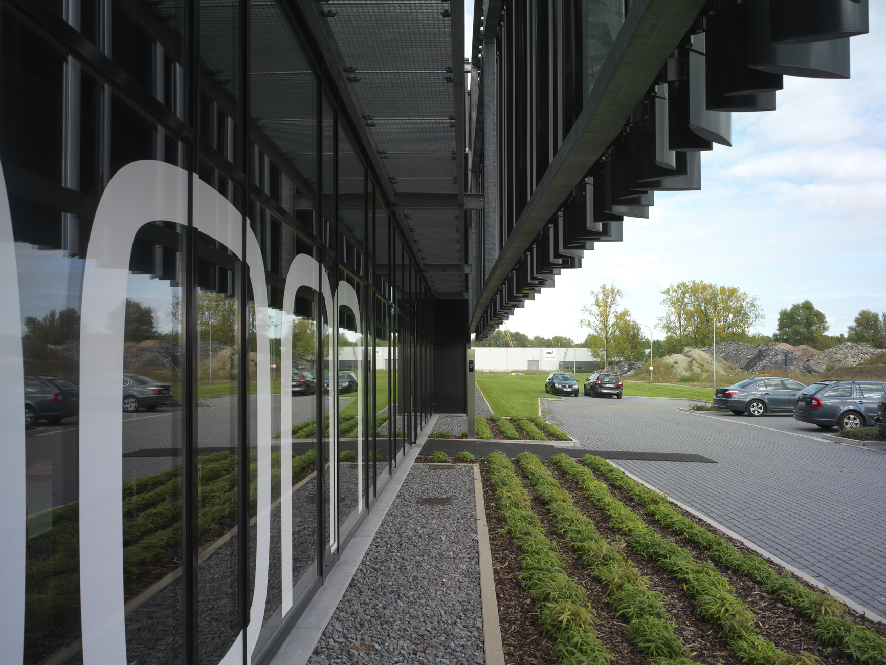 DUCO a hautement contribué à la conception du bâtiment d’exploitation de XL Boom en fournissant sa protection solaire architecturale. Le DucoSun Ellips de divers formats a été placé verticalement devant la façade et il a créé une impression visuelle de code-barres.