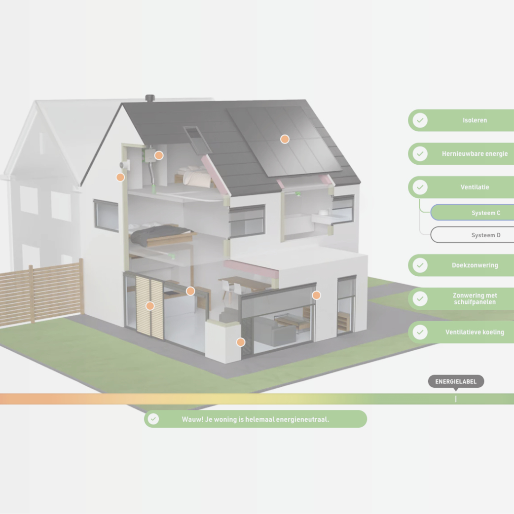 Deze interactieve renovatietool toont hoe je het energielabel kan verhogen binnen jouw renovatieproject. Met deze tool kan je: