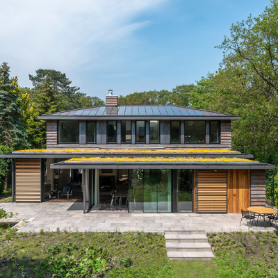 Elektronisch gestuurde ventilatie in architecturale BEN-vakantiewoning.
