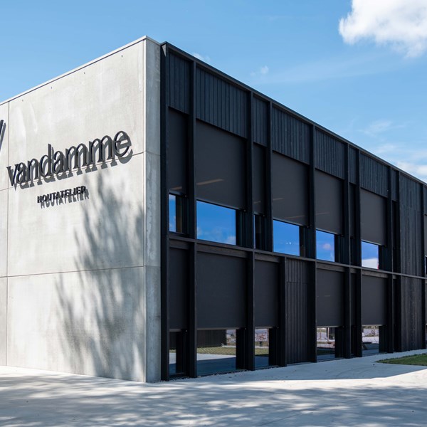 Eind juni, begin juli 2022 werd de gevel van Vandamme Houtatelier uitgerust met de structurele, esthetische doekzonwering DucoScreen Front 150 FIX.