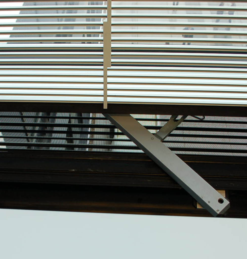Het gebouw telt ook heel wat grote glaspartijen die zowel de lichtinval als het contact met de omgeving bevorderen. Uiteraard betekent dit dat hierbij ook de nodige aandacht uitging naar het voorkomen van oververhitting en storende reflecties op zonnige, warme dagen. Een combinatie van windvaste screens en architecturale zonwering met aluminium lamellen van het type DucoSun Cubic draagt hier zijn steentje bij. “Door de grote glaspartijen aan zowel de noord-, oost- en westzijde van het gebouw, hebben we getracht om een aangename werkomgeving te creëren. De implementatie van architecturale zonwering zorgt niet enkel voor een esthetische meerwaarde, maar houdt ook het direct zonlicht buiten”, aldus Verstraeten.