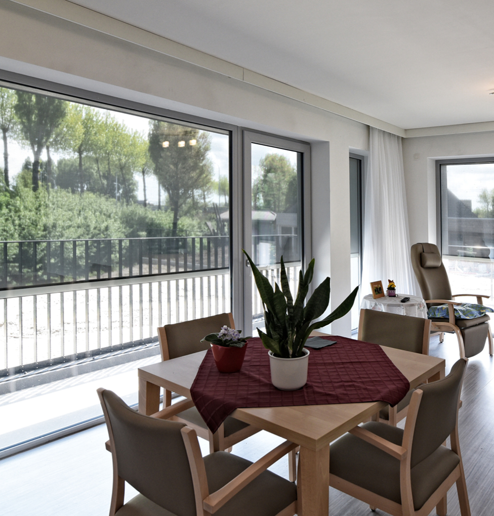 Het gebouw, dat in 2017 werd opgeleverd en 23 moderne zorgflats herbergt om mensen op leeftijd zelfstandig te laten wonen, heeft een waaier aan zorgmogelijkheden binnen handbereik. Dit wordt mogelijk gemaakt door het aanpalende woonzorgcentrum ‘Huize Maria Troost’ waardoor de bewoners dag en nacht kunnen rekenen op assistentie. Meer nog: zowel in het voor- en najaar als in het warmere tussenseizoen is het er zorgeloos vertoeven dankzij DUCO’s slimme buitenzonwering, die als een van de vijf pijlers binnen het DUCO at CARE concept bijdraagt aan een comfortabel binnenklimaat.
