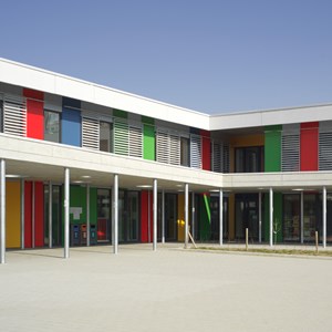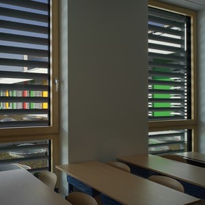 DUCO voorzag de basisschool 'Les Lilas' in Sint-Agatha-Berchem van een efficiënt zonweringsysteem van het type DucoSlide. Dit systeem zorgt er op een natuurlijke en energiezuinige manier voor dat zonnestralen de kans niet krijgen om rechtstreeks de klaslokalen op te warmen, en dit zonder verlies van daglicht.