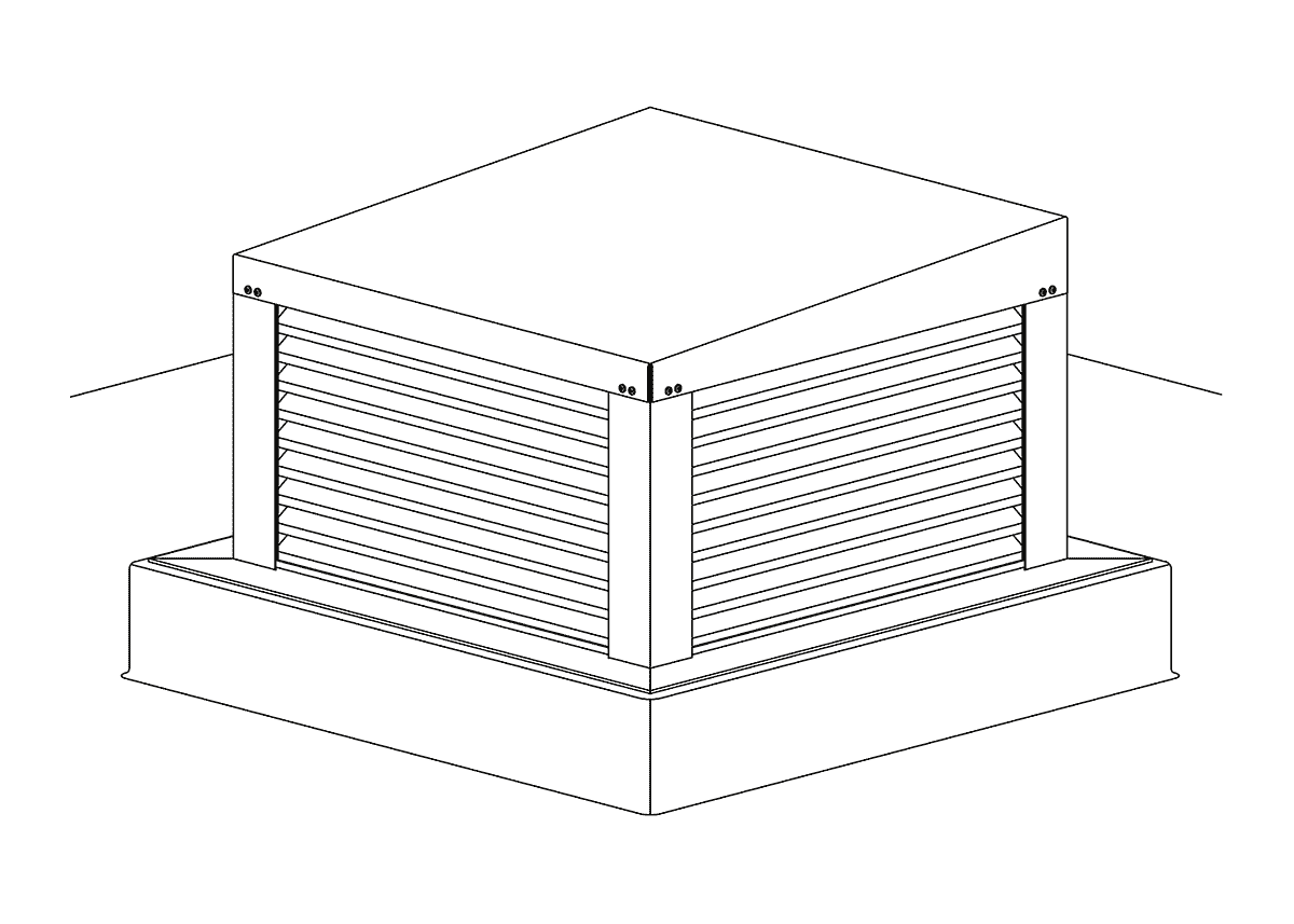 Nieuw: De Duco Roof Turret Solid 30Z is optioneel verkrijgbaar met een Eggcrate rooster, dat zorgt voor een nog betere waterwerendheid (combinatie met de P2 lamellen)