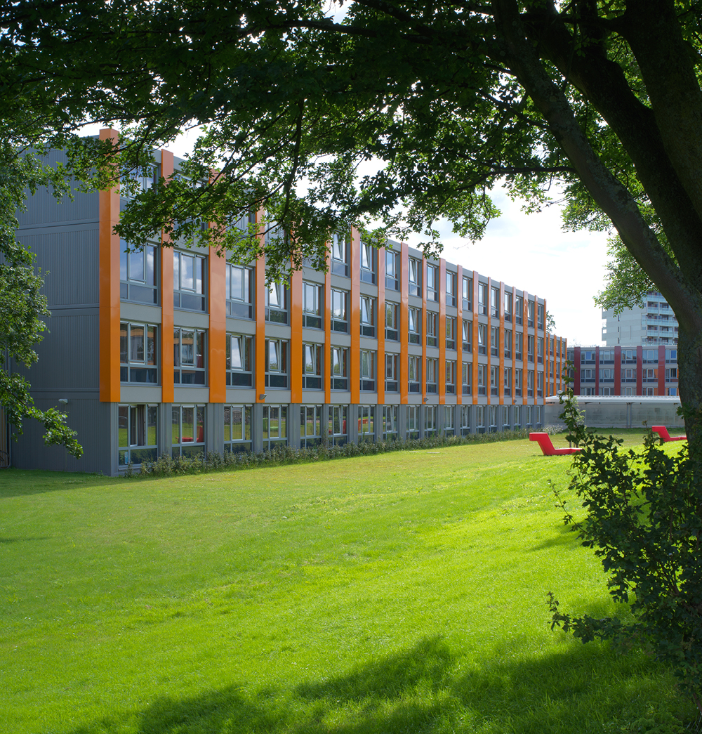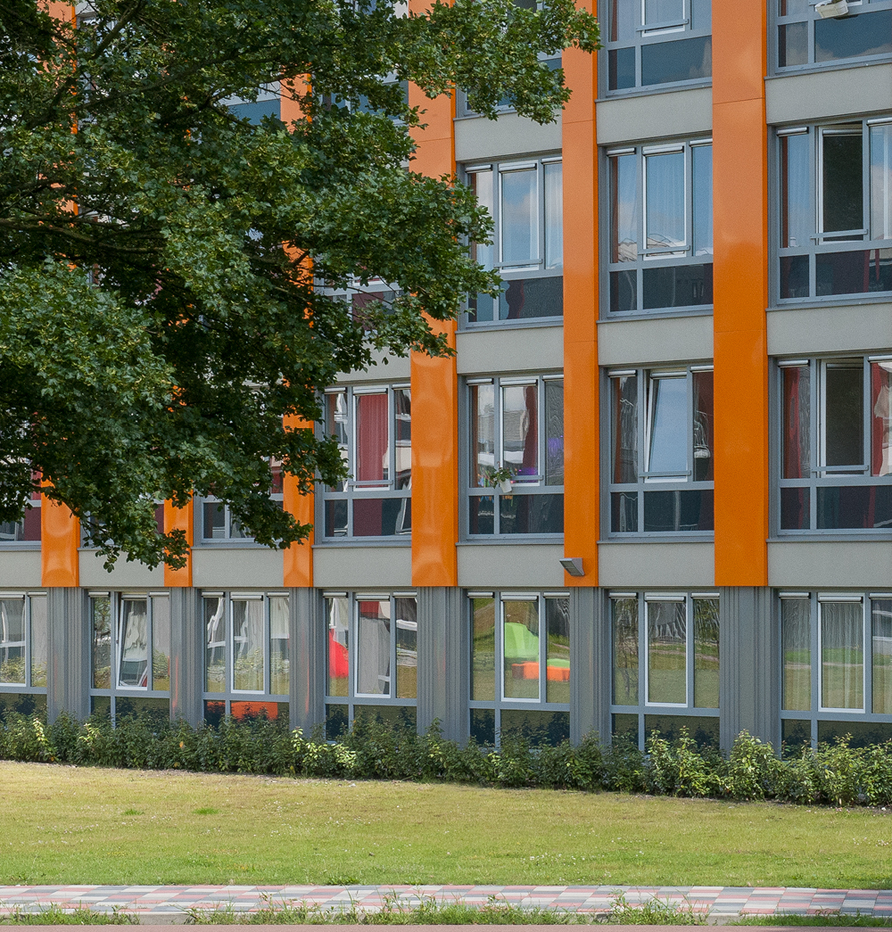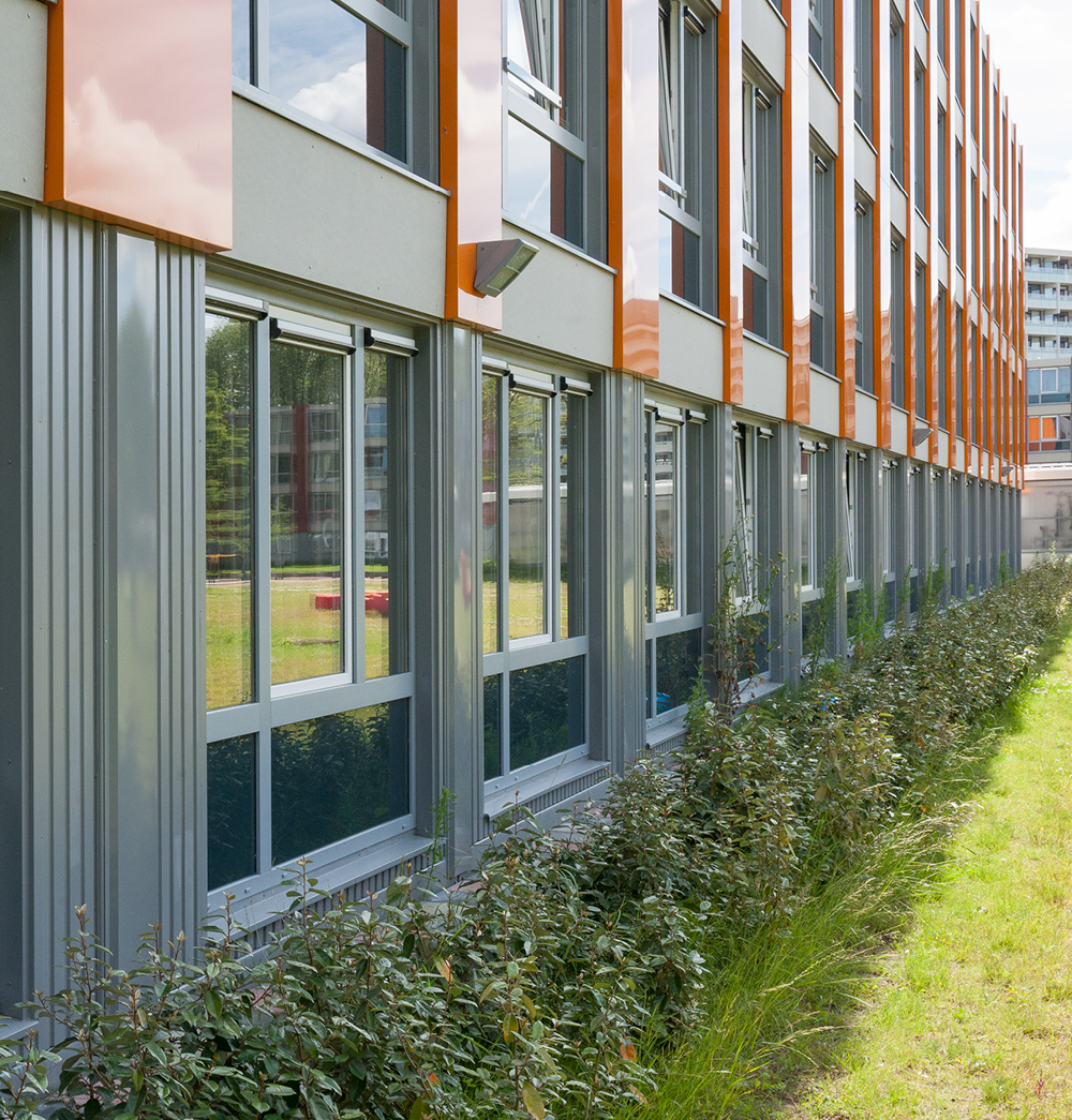 Akoestiek vormde een belangrijk aspect bij de nieuwbouw van de Spinozacampus, een onderkomen in Amsterdam voor zo’n honderdtal studenten. Met twee type geluiddempende roosters onder de vorm van DucoMax ZR en GlasMax ZR kon DUCO een pasklaar antwoord bieden op het hoge decibelbereik en de geldende ventilatie-eis.