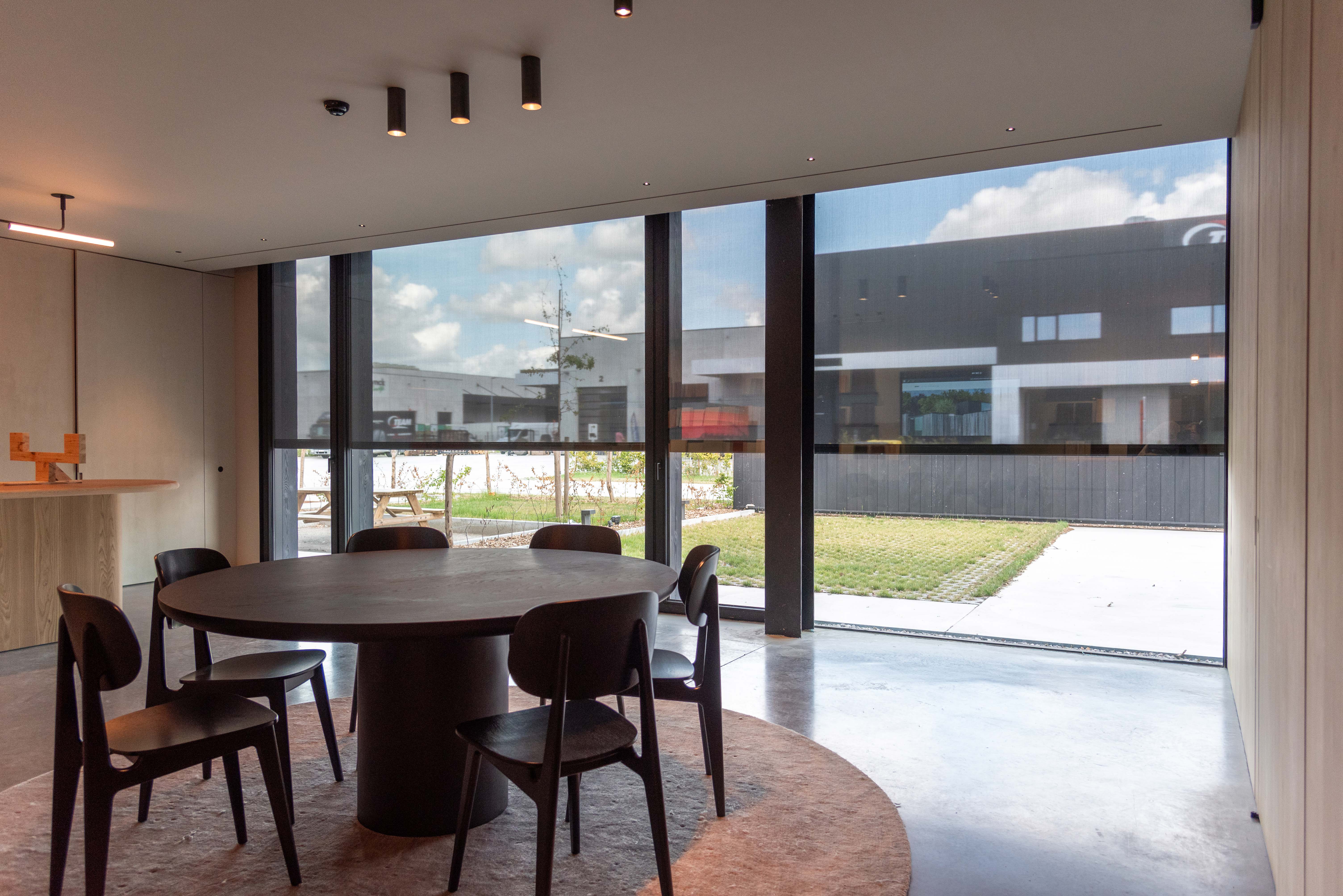 Eind juni, begin juli 2022 werd de gevel van Vandamme Houtatelier uitgerust met de structurele, esthetische doekzonwering DucoScreen Front 150 FIX.