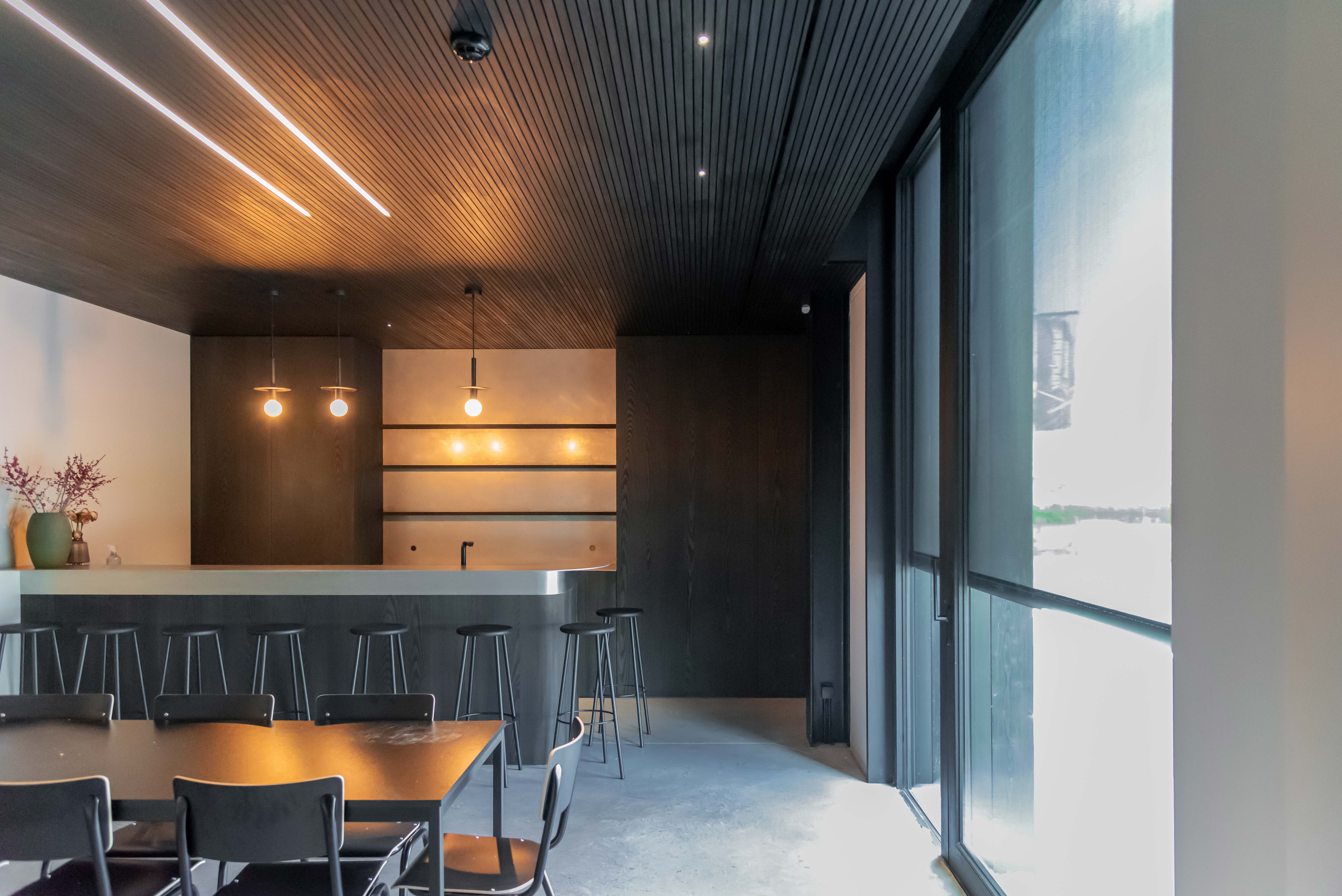 Jeroen verklaart: “De perfecte symbiose tussen schrijnwerk, betonnen gevel en doekzonwering garandeert een stijlvolle uitstraling van het gebouw. Bovendien worden de screengeleiders van de DucoScreen Front 150 FIX volledig onzichtbaar weggewerkt achter de verticale houten balken, wat de afwerking uitzonderlijk maakt.”