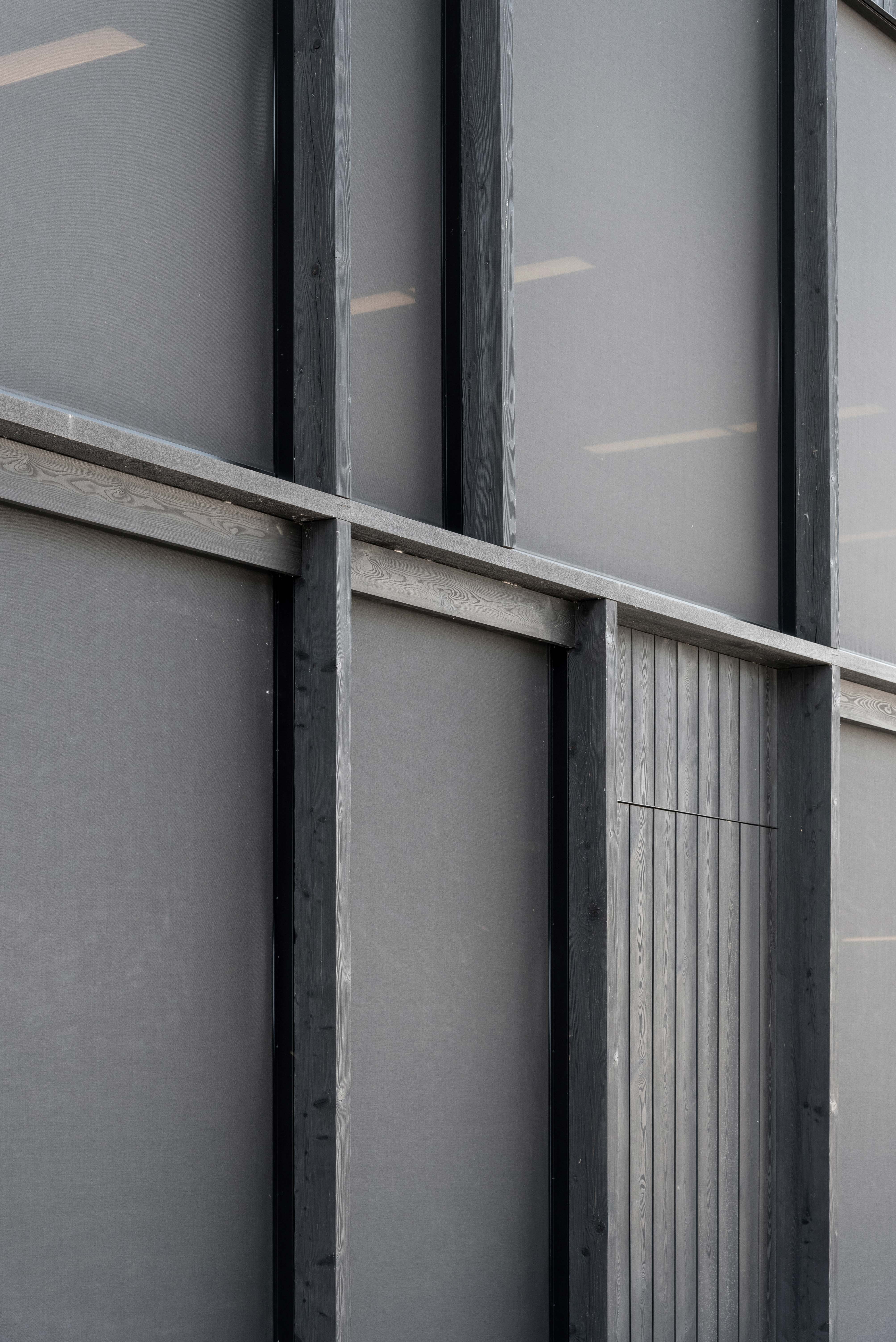 Eind juni, begin juli 2022 werd de gevel van het houtatelier uitgerust met de structurele, esthetische doekzonwering DucoScreen Front 150 FIX.