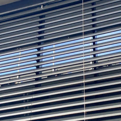 DucoWall Acoustic 150 ist ein Hochleistungs-Lamellenwandsystem, das den Lärm reduziert und gleichzeitig ästhetisch ansprechend ist. Diese fortschrittliche, von DUCO entwickelte Lösung wird aus stranggepressten Aluminiumprofilen hergestellt, die sowohl langlebig als auch optisch ansprechend sind. Die mit nicht brennbarer Mineralwolle ausgestatteten Lamellen erfüllen einen doppelten Zweck: Sie blockieren und absorbieren den Schall und tragen gleichzeitig zum architektonischen Charme des Gebäudes bei.