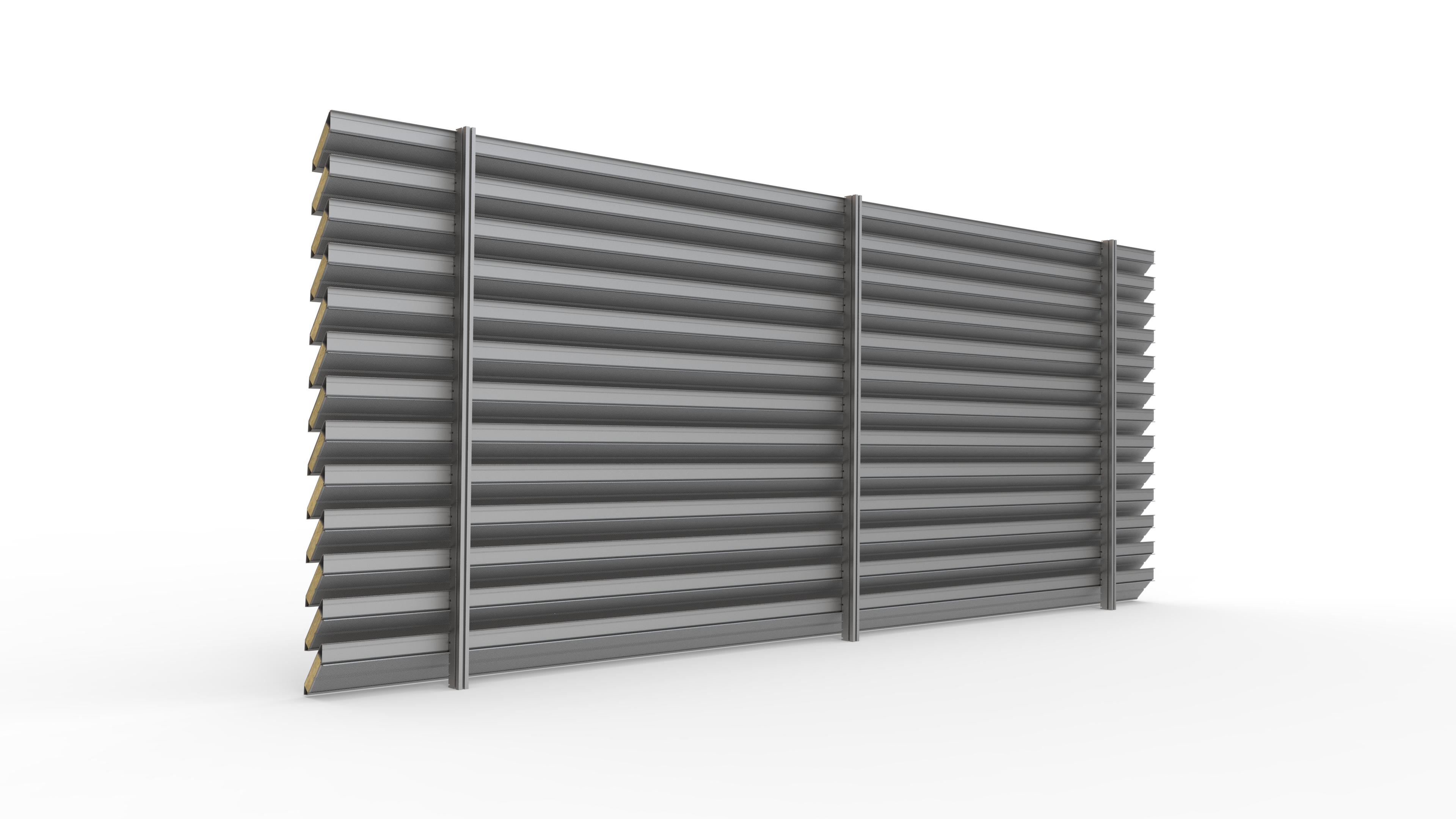 DucoWall Screening Acoustic ist ein stabiles Aluminium-Lamellenwandsystem mit akustischer Dämpfung. Sie haben die Wahl zwischen zwei verschiedenen Lamellenstufen. Die akustische Dämpfung kann durch die Anwendung der Double Bank, bei der eine zusätzliche Lamelle auf der Rückseite angeklickt wird, weiter verbessert werden. Auf diese Weise kann die Lamellenwand an jedes Projekt je nach Wunsch und Bedarf angepasst werden. Die Montage ist schnell, da die Lamellen direkt auf das Trägerprofil gesetzt werden.