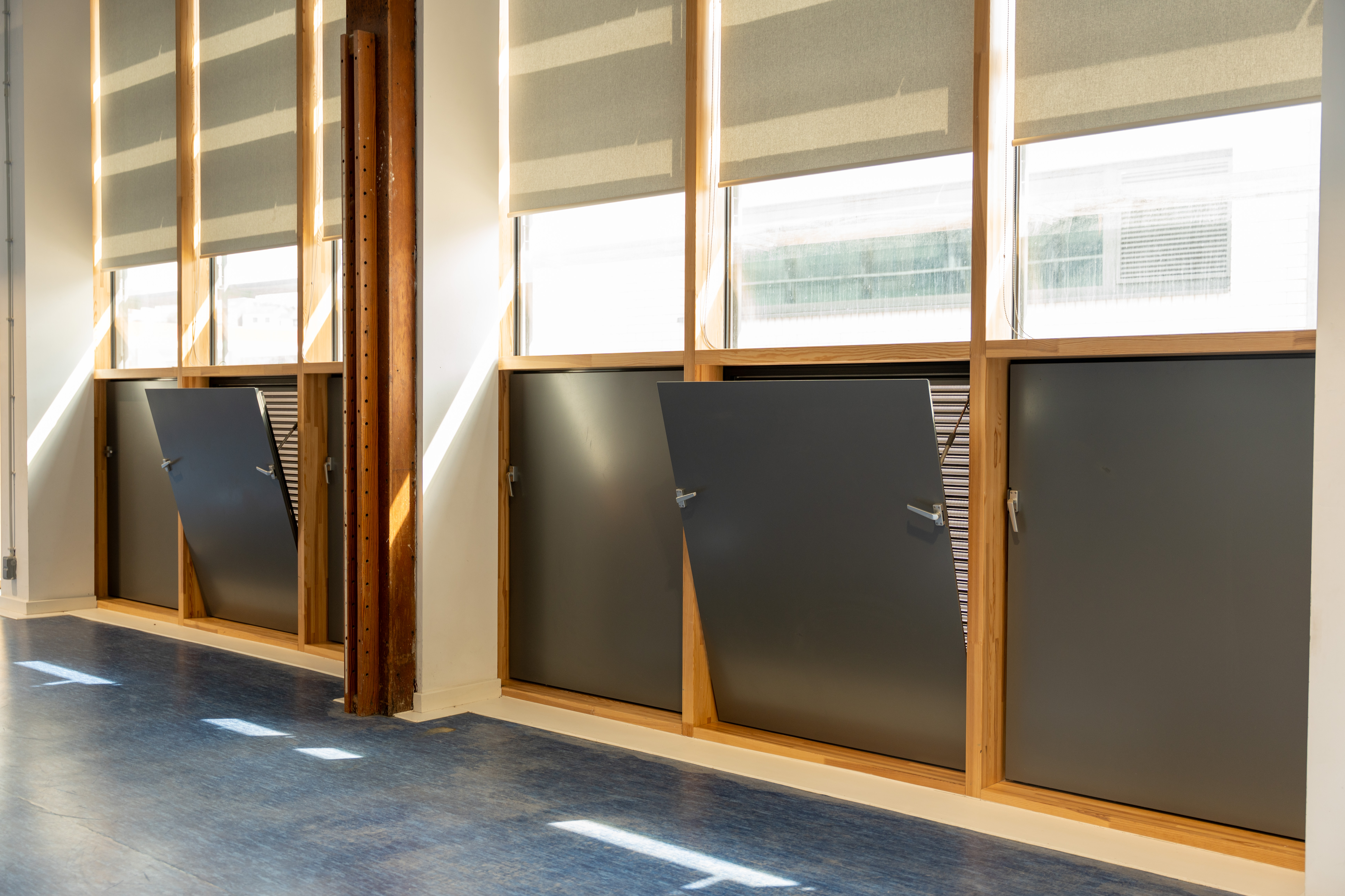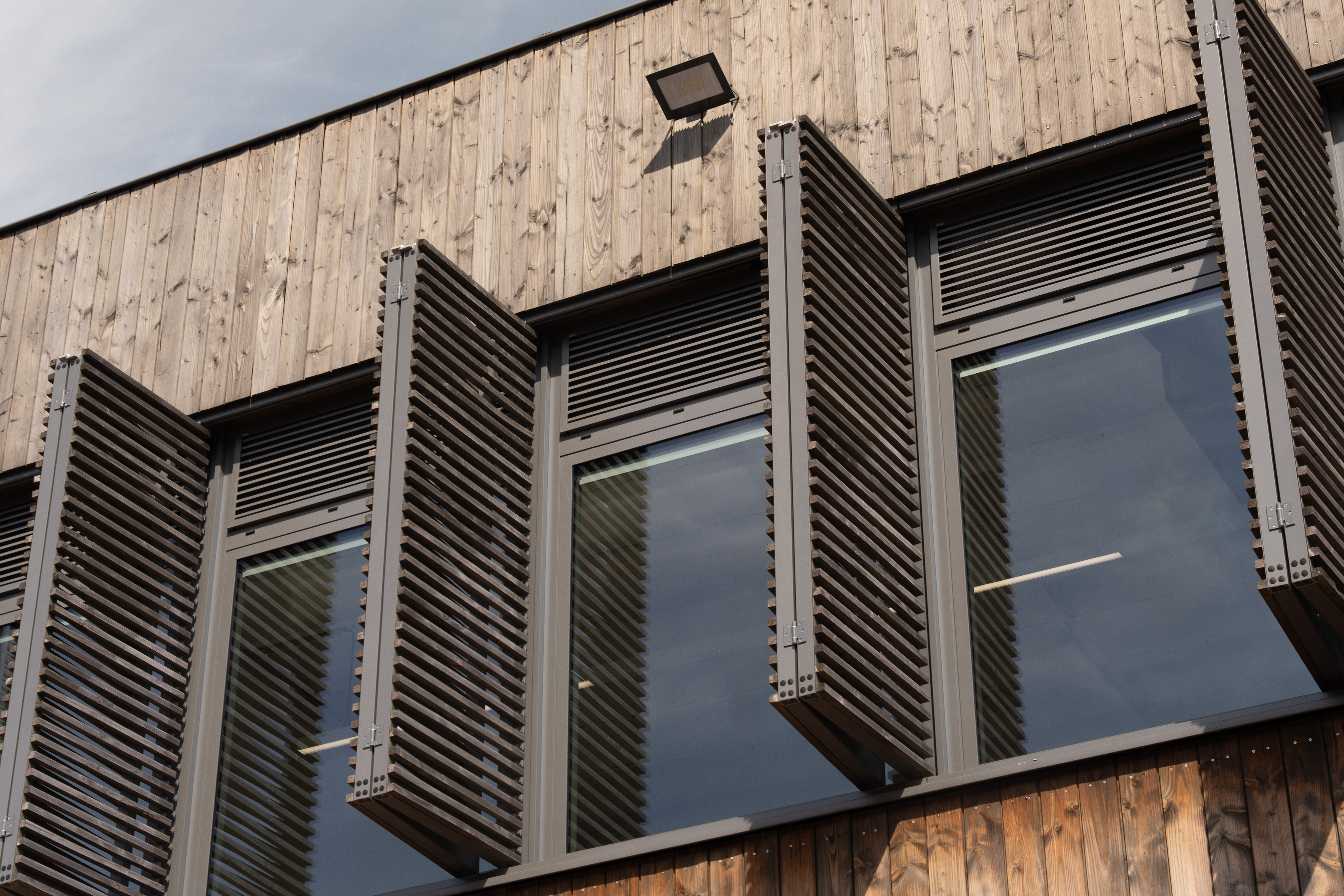 The architectural appearance of the building is characterised by clean lines and modern material choices. However, behind the aesthetic facade cladding of vertical louvres lies advanced ventilation technology. DUCO supplied ventilation hatches, blade dampers and window louvres that seamlessly integrate into the architectural concept: