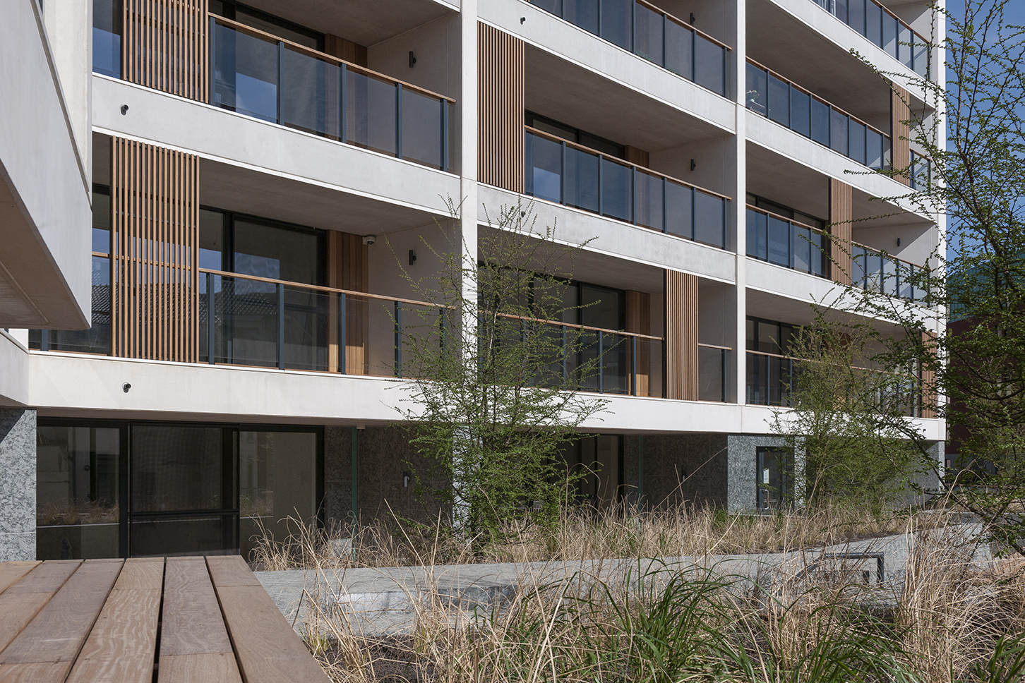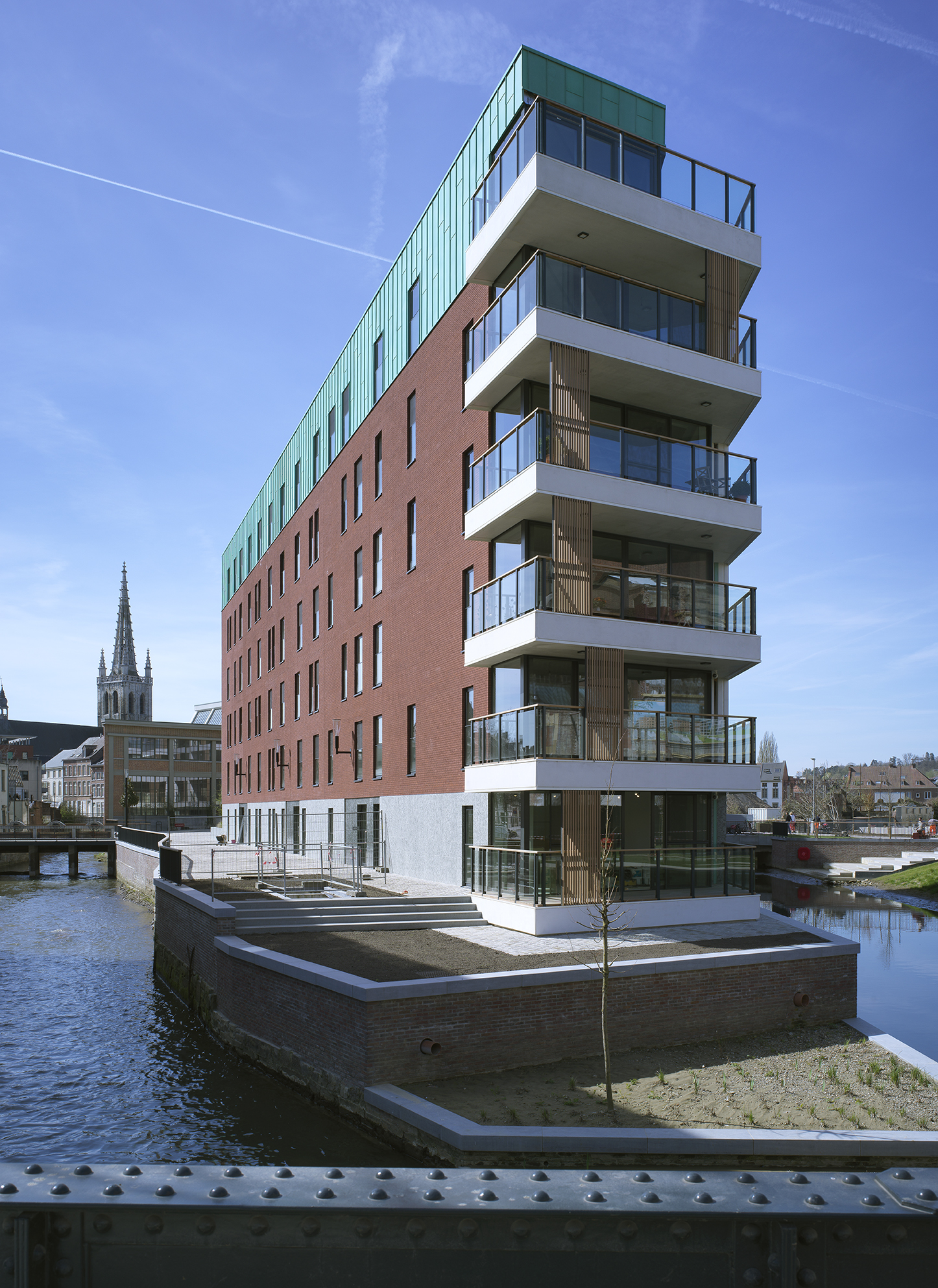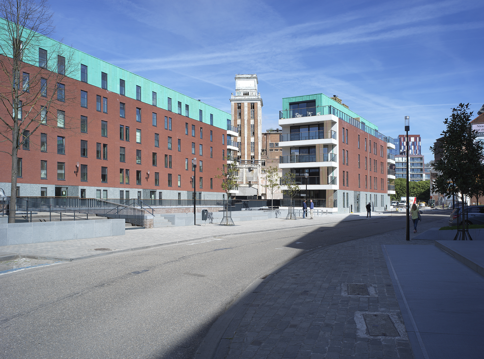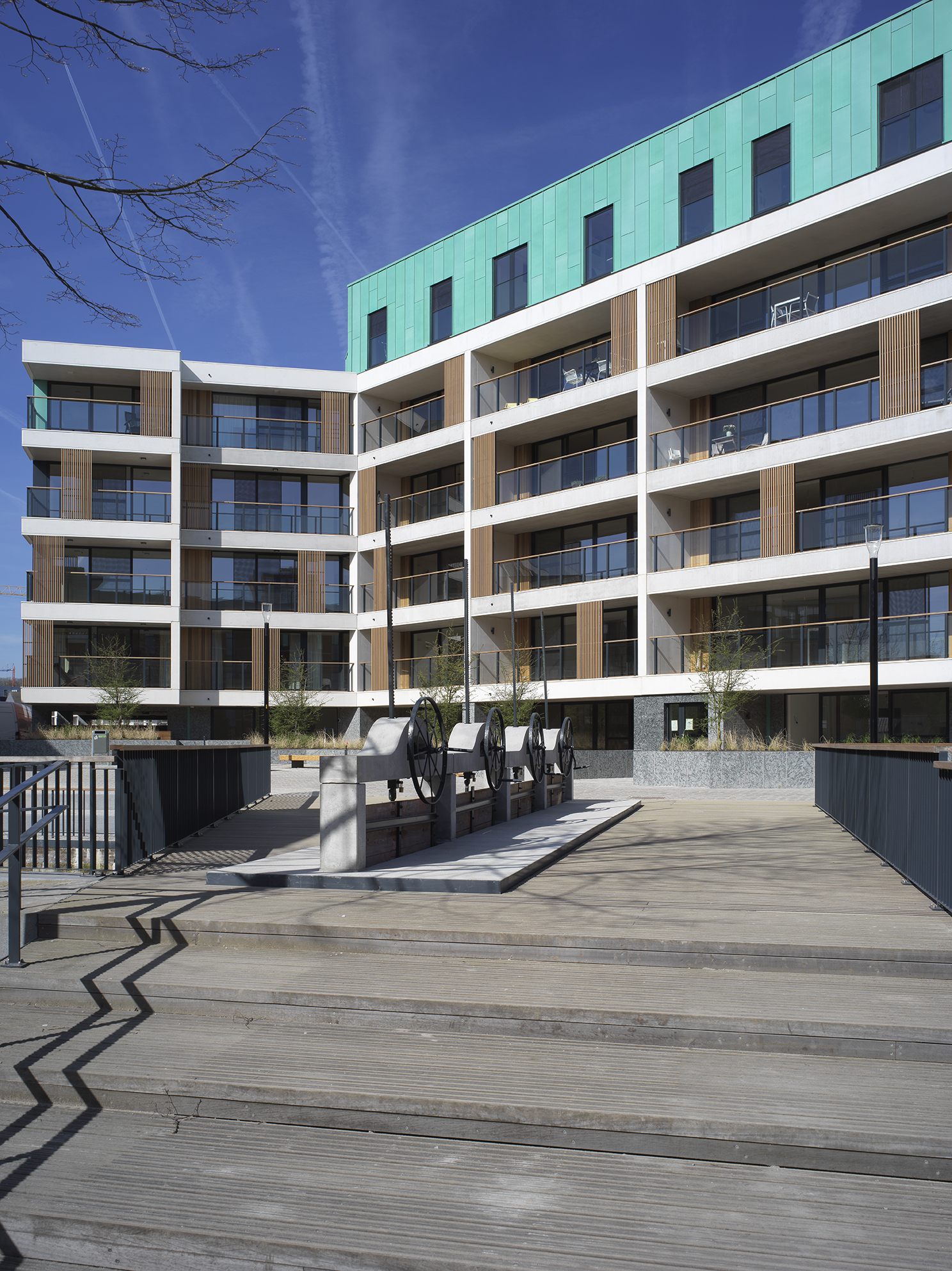 “In the discussions for the preliminary design of the site, the city of Leuven revealed its desire for the façades to have a more vertical appearance,” explained Erik Van Raemdonck, project architect at SVR-ARCHITECTS. “This was because both the surrounding buildings and the original ones have a strong verticality about them. However, the scale of the project, with its 80 apartments, meant that it had horizontal lines. So, to go some way towards meeting this requirement, we conceived of the idea of adding vertical sliding elements to the balconies.”