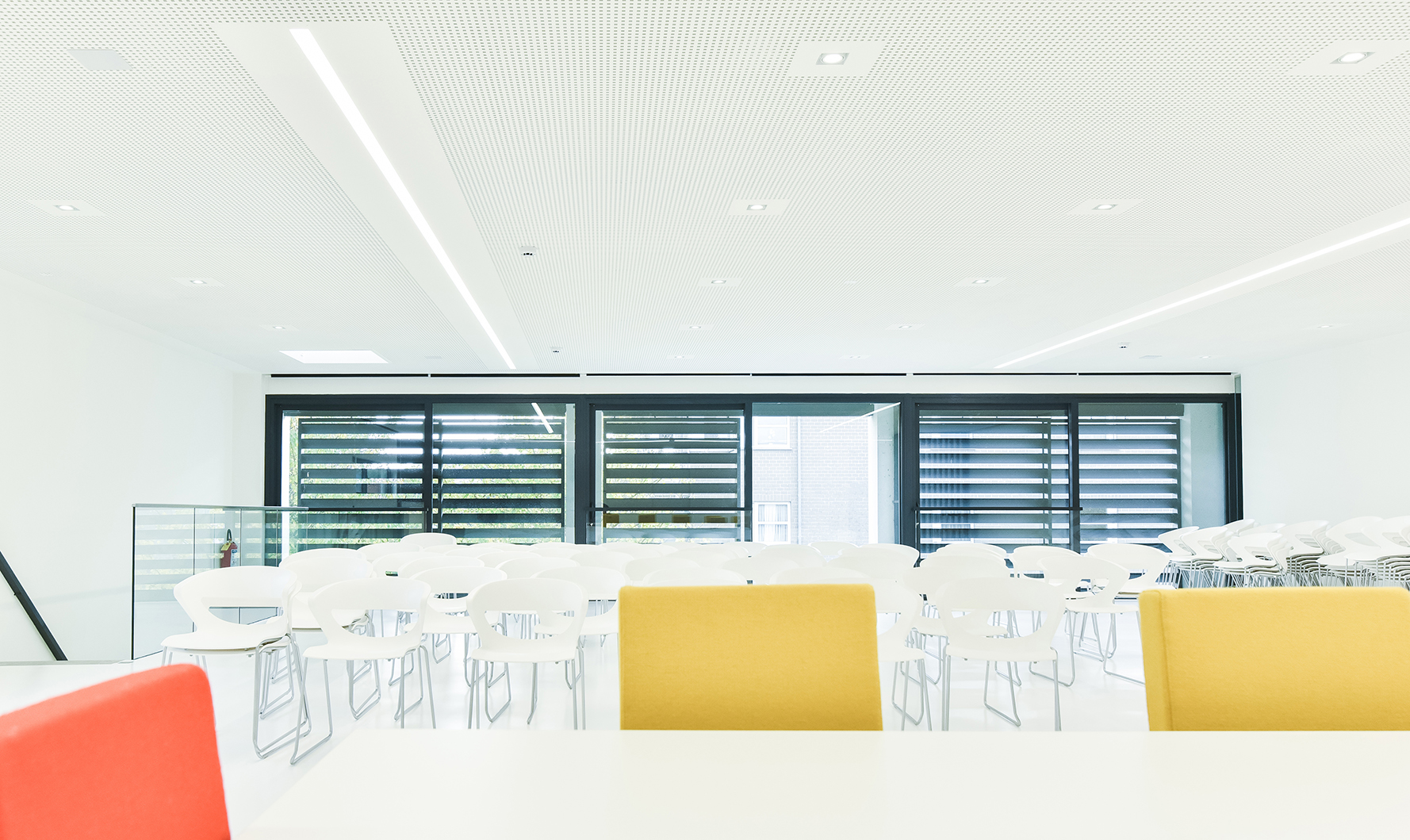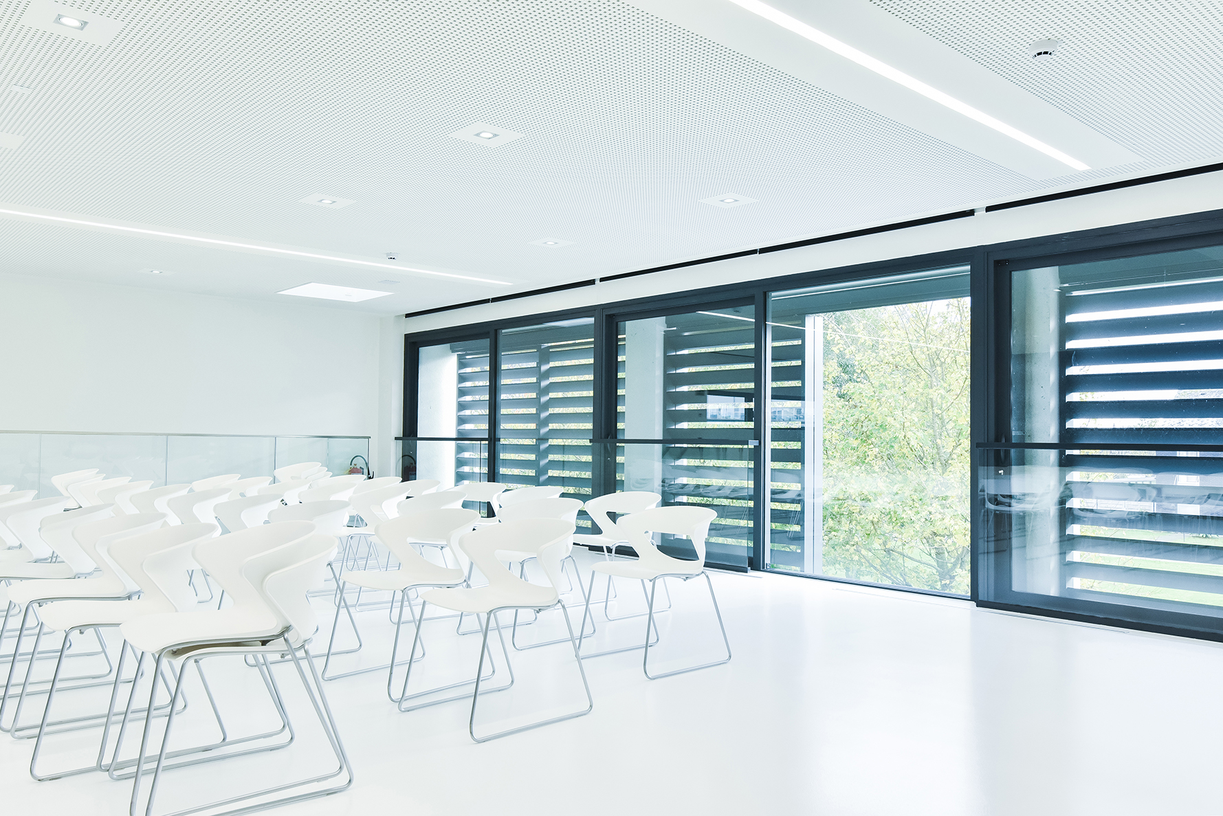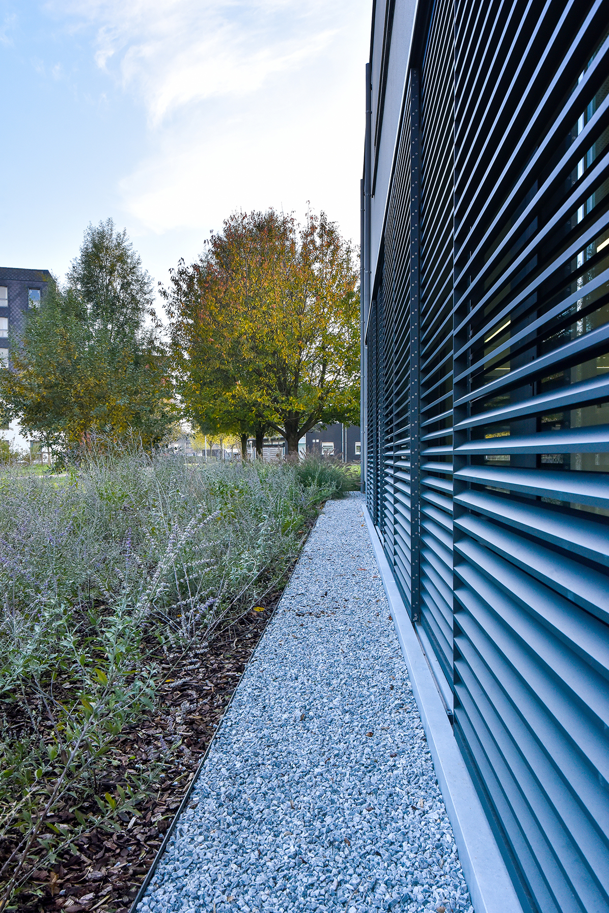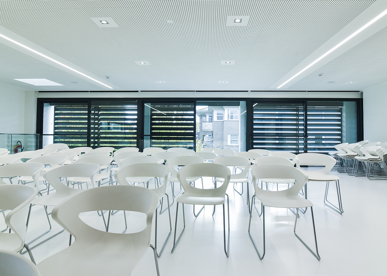‘In the office there was the possibility of passive cooling with a maximum temperature difference of 3 degrees,’ Casteur continues. ‘But because of the large window surfaces this wasn’t efficient. We therefore decided to use DUCO’s XXL aluminium sliding panels. To keep out the sun’s heat and lower the temperature in the workspace. But also because this solar shading system forms a perfect match with the building.’