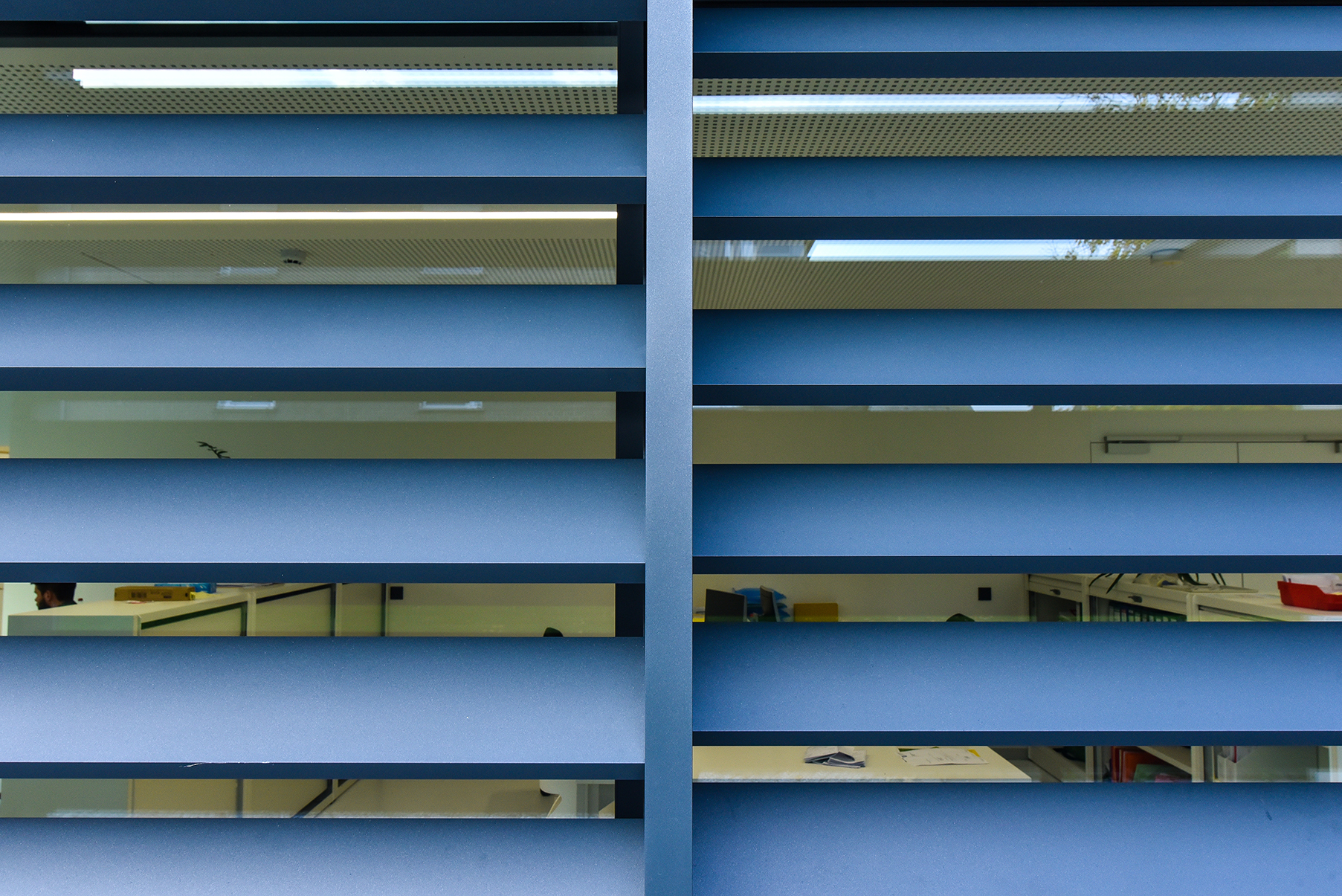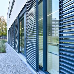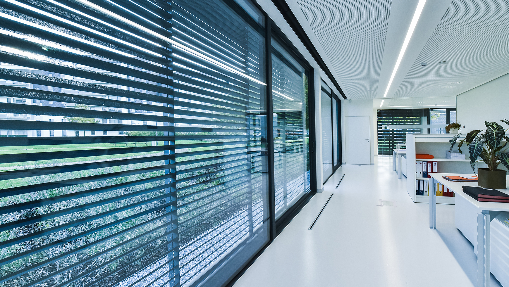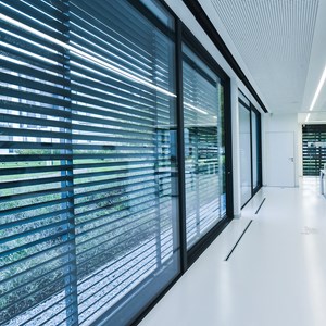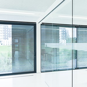 Architectural blinds and office building with large windows are perfect match