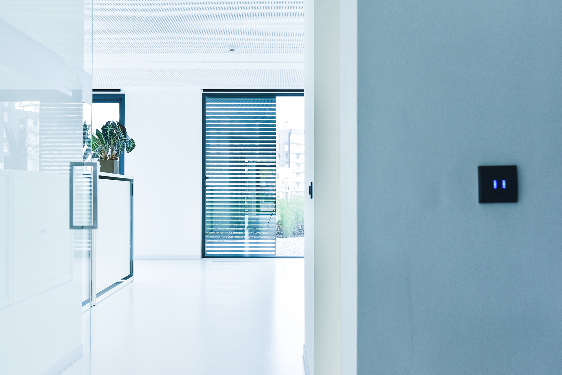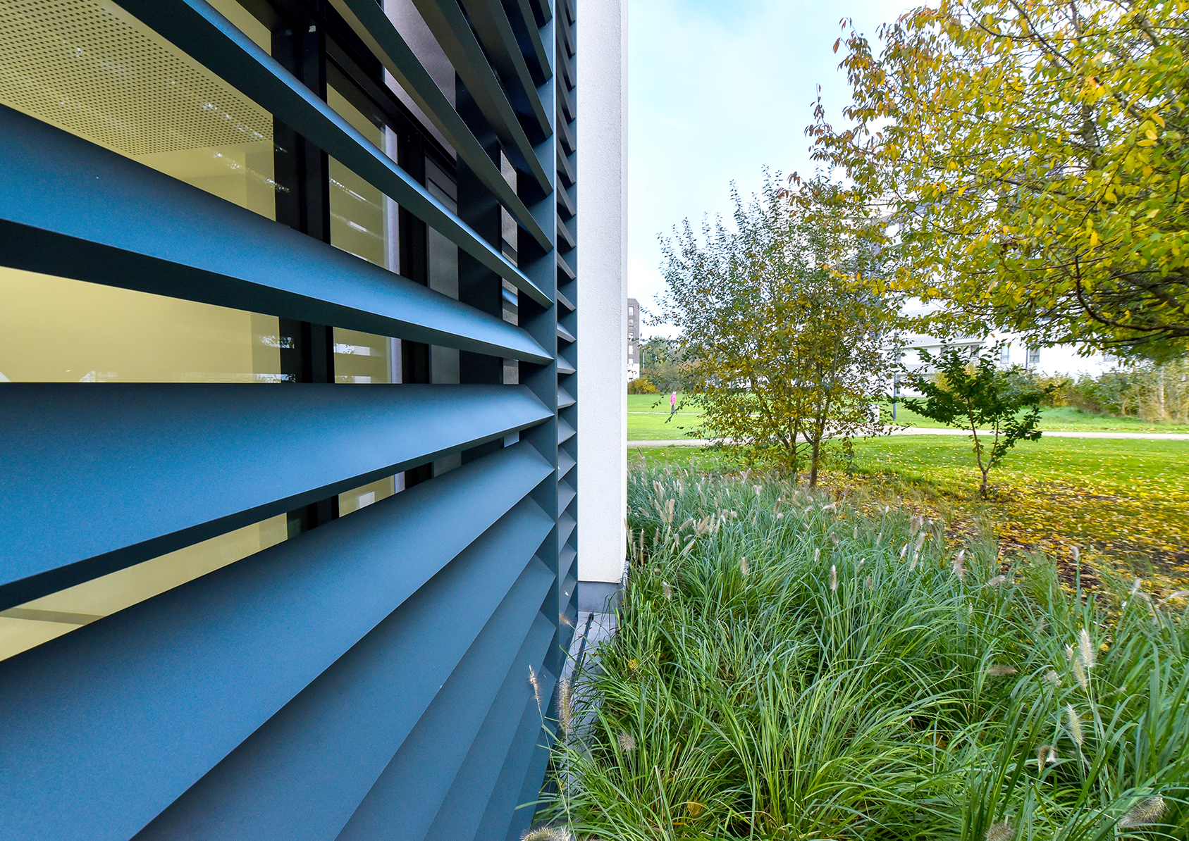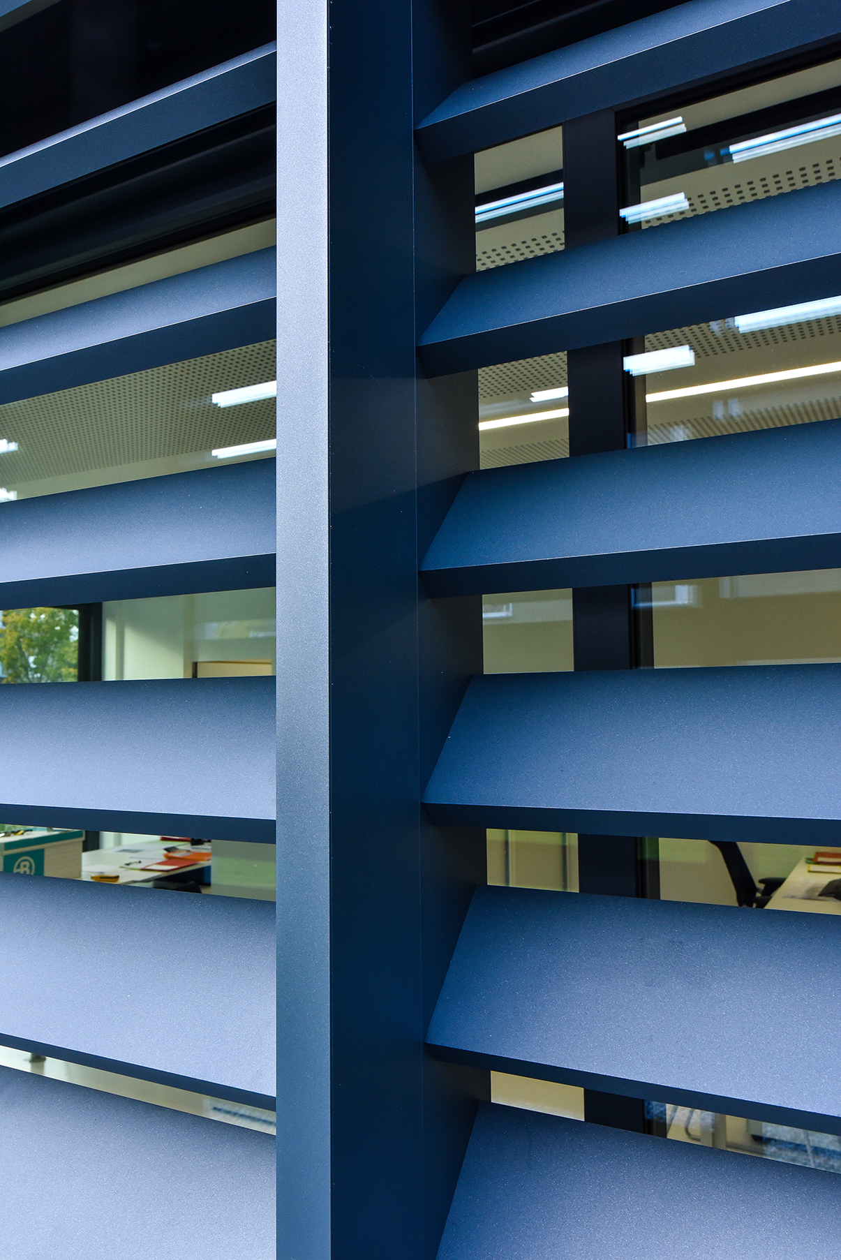 Architectural blinds and office building with large windows are perfect match