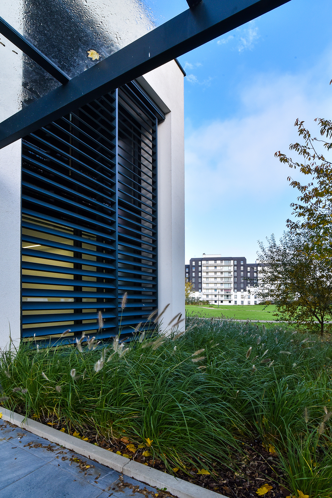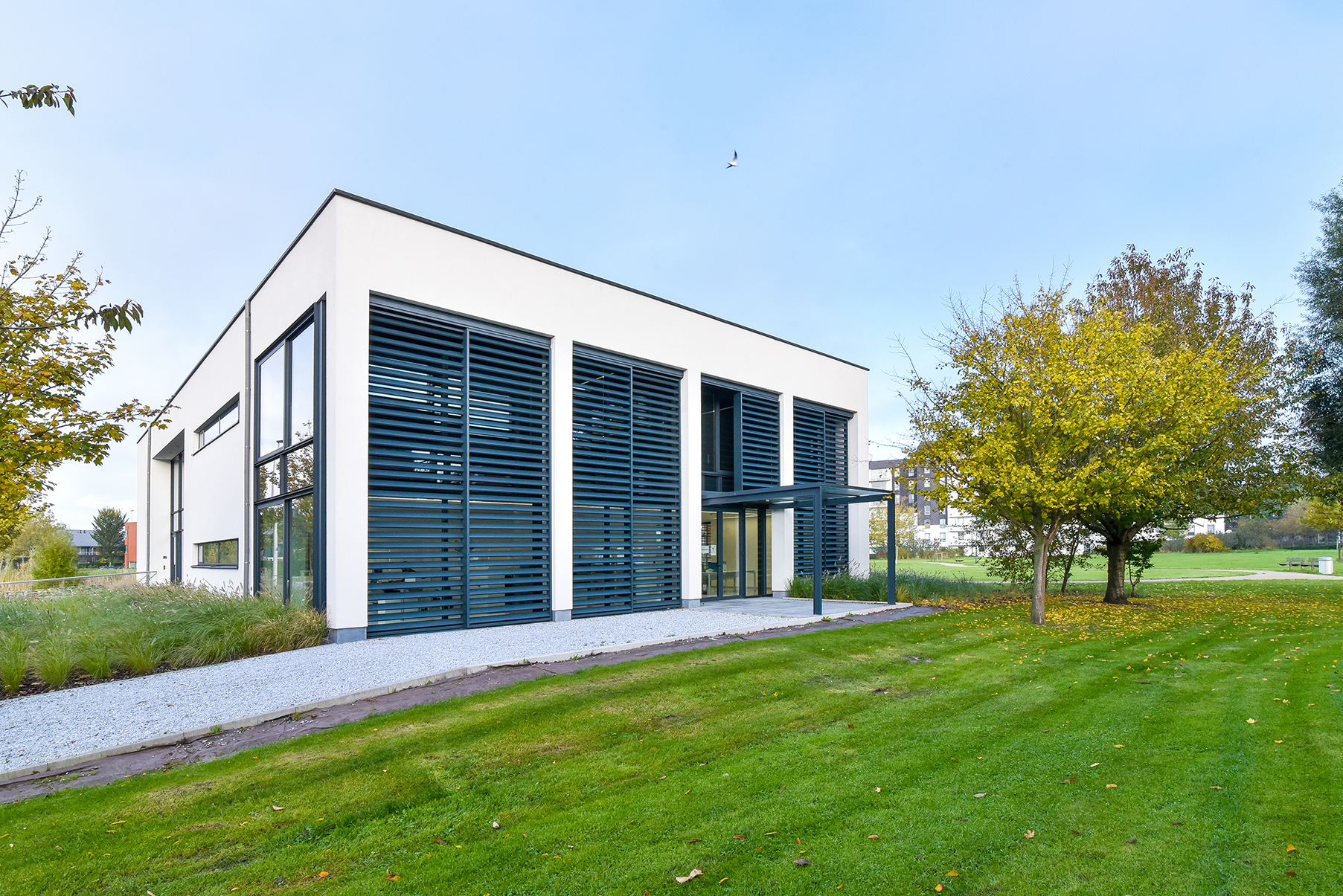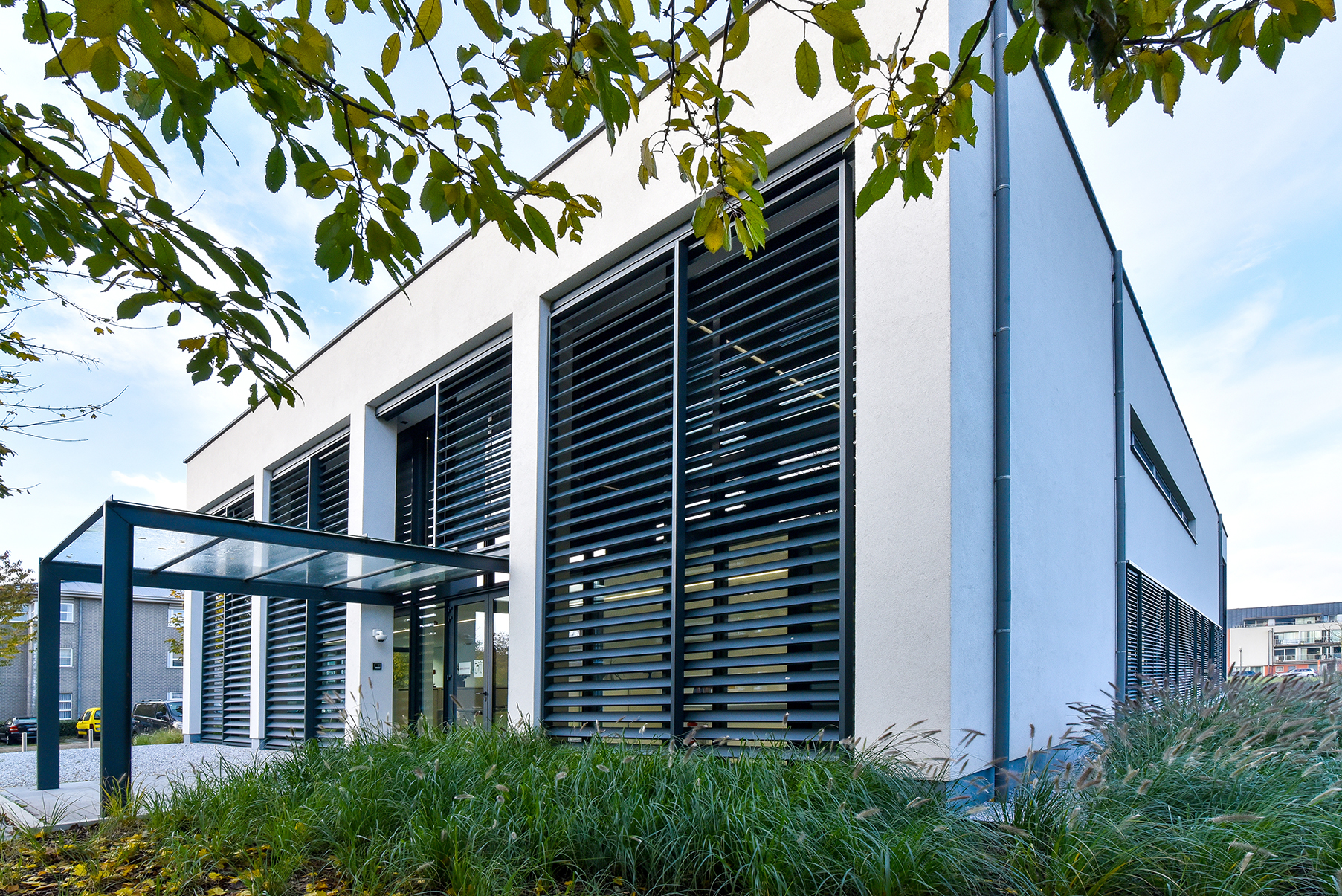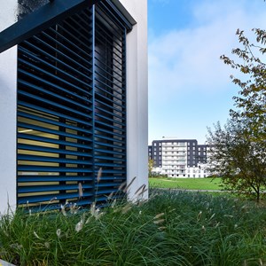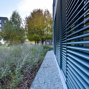 It’s impossible to be unhappy in the housing units of the social housing company Gelukkige Haard in Ostend. The same undoubtedly applies to the office building of this housing company. Employees benefit from a workplace with sustainable solutions. And from the DucoSlide LuxFrame XXL solar shading system that provides optimum protection from both heat and light.
