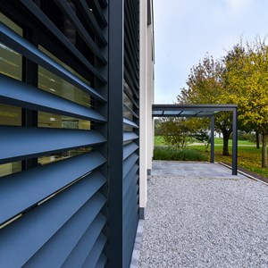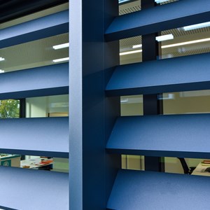 The DucoSlide LuxFrame XXL solar shading system can cope with heights of up to 6 metres. An application of this can be found in an office building in Ostend.