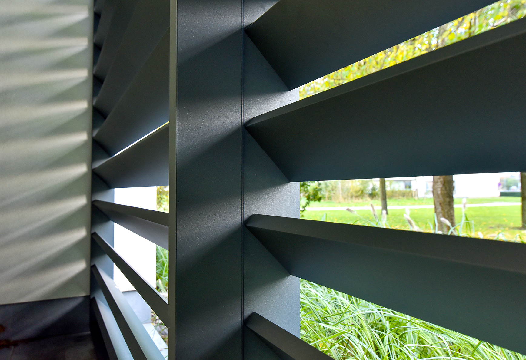 To keep out the sunlight when it is least wanted, the Luxframe is equipped with Ellips 150 slats. These wing-shaped slats lie at an angle of 45° and are highly effective at keeping the heat out. They also allow the sunlight to be filtered in. This way you can combine XXL looks with an extra-comfortable interior.