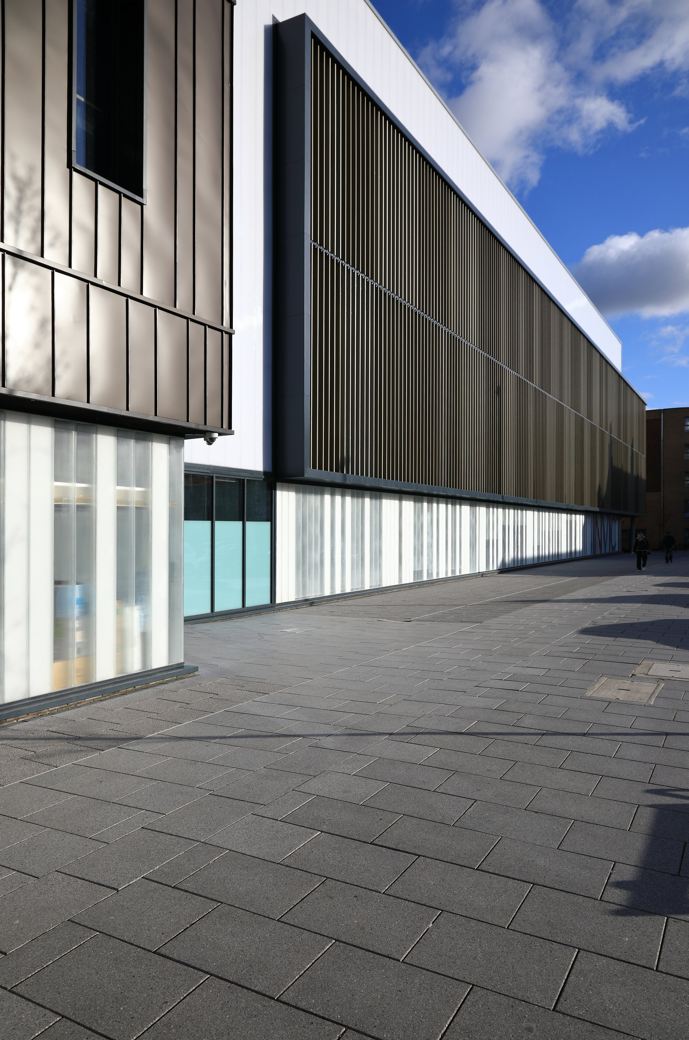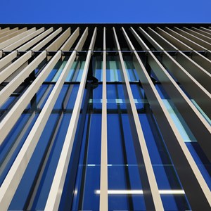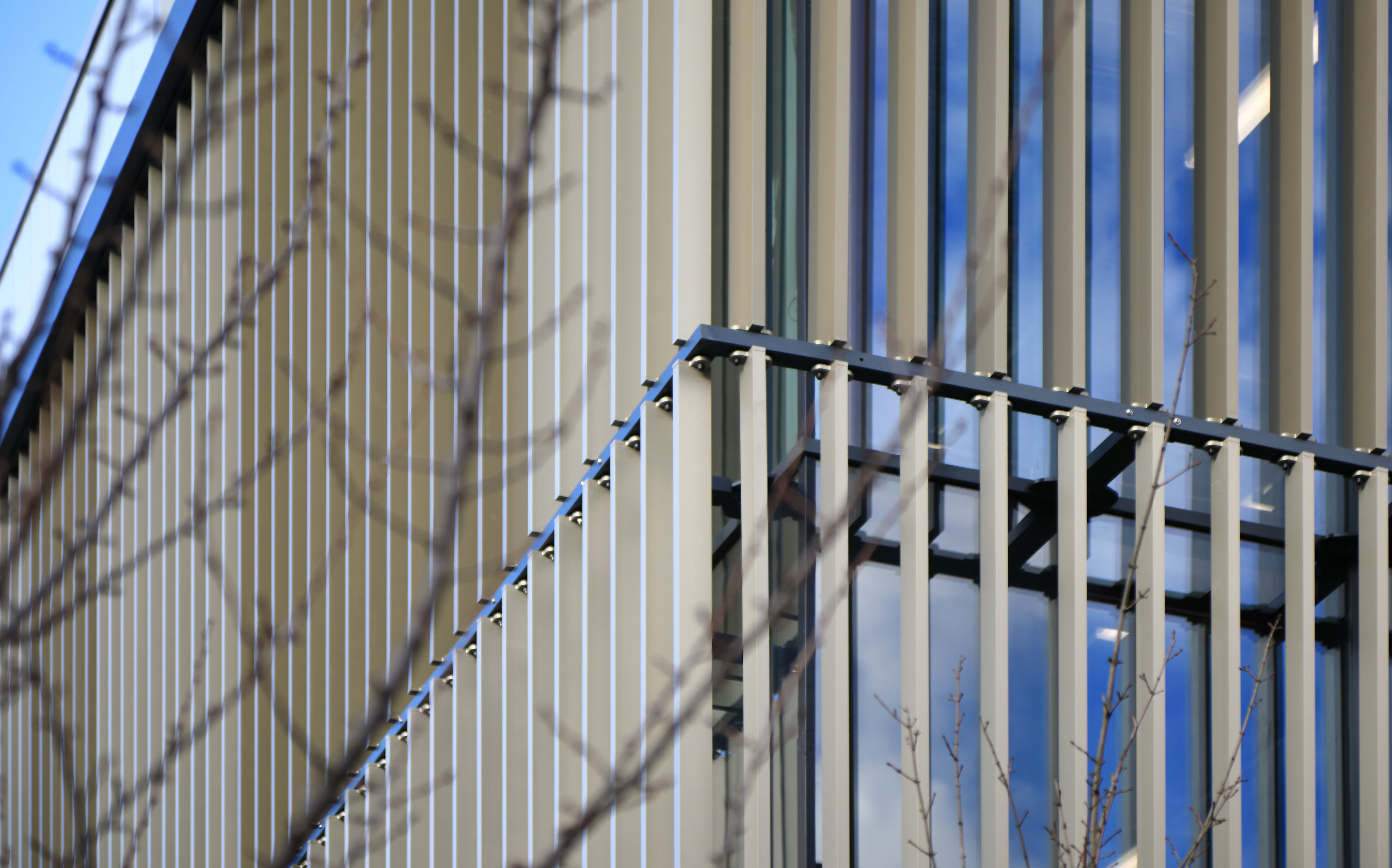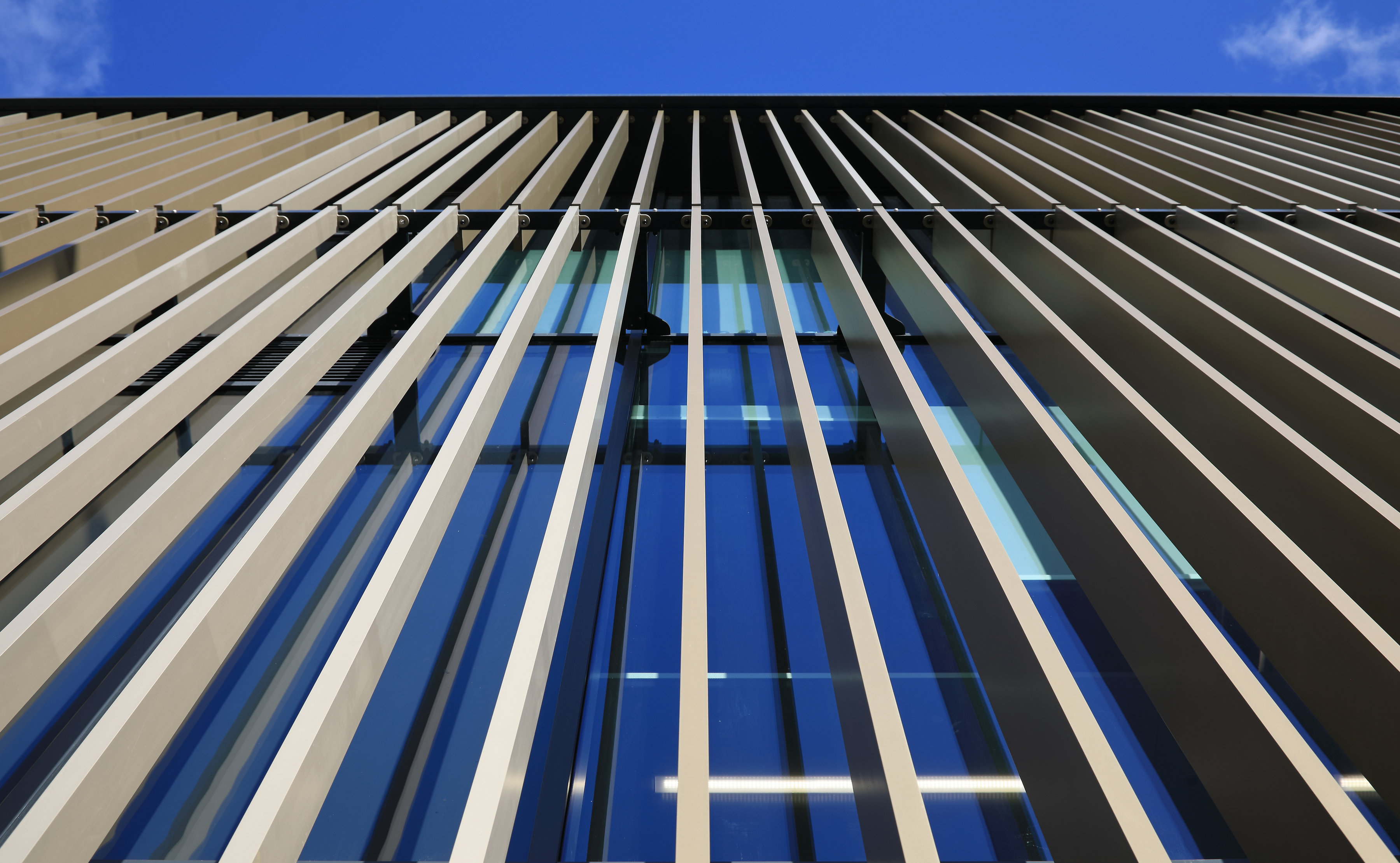 shading system DucoSun Cubic. The rectangular form of the louvre blade gives the school building in Croydon