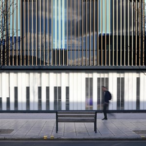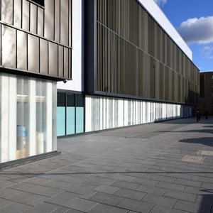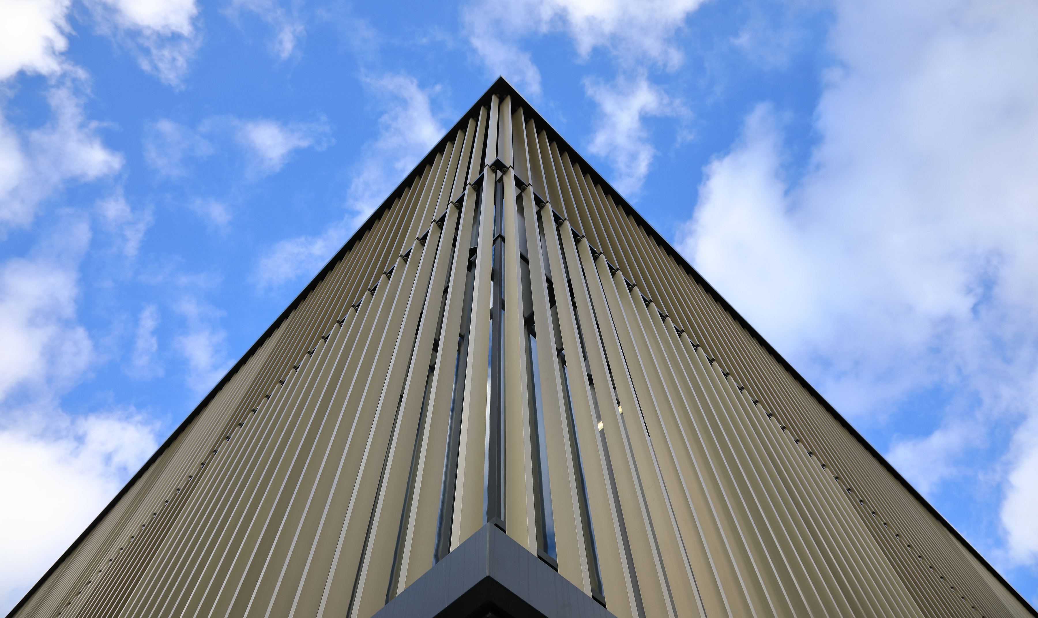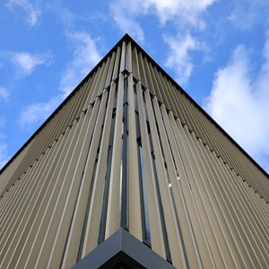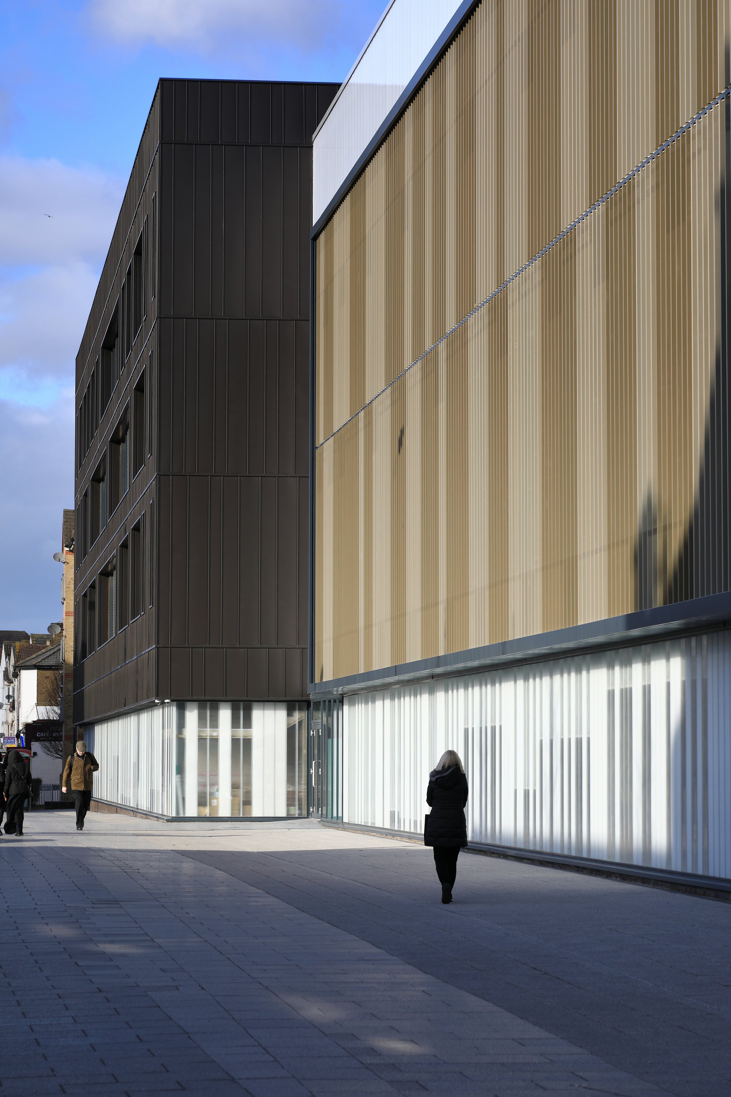 shading system DucoSun Cubic. The rectangular form of the louvre blade gives the school building in Croydon