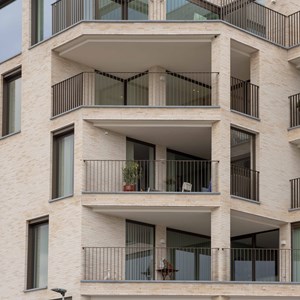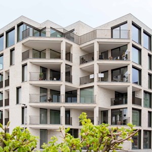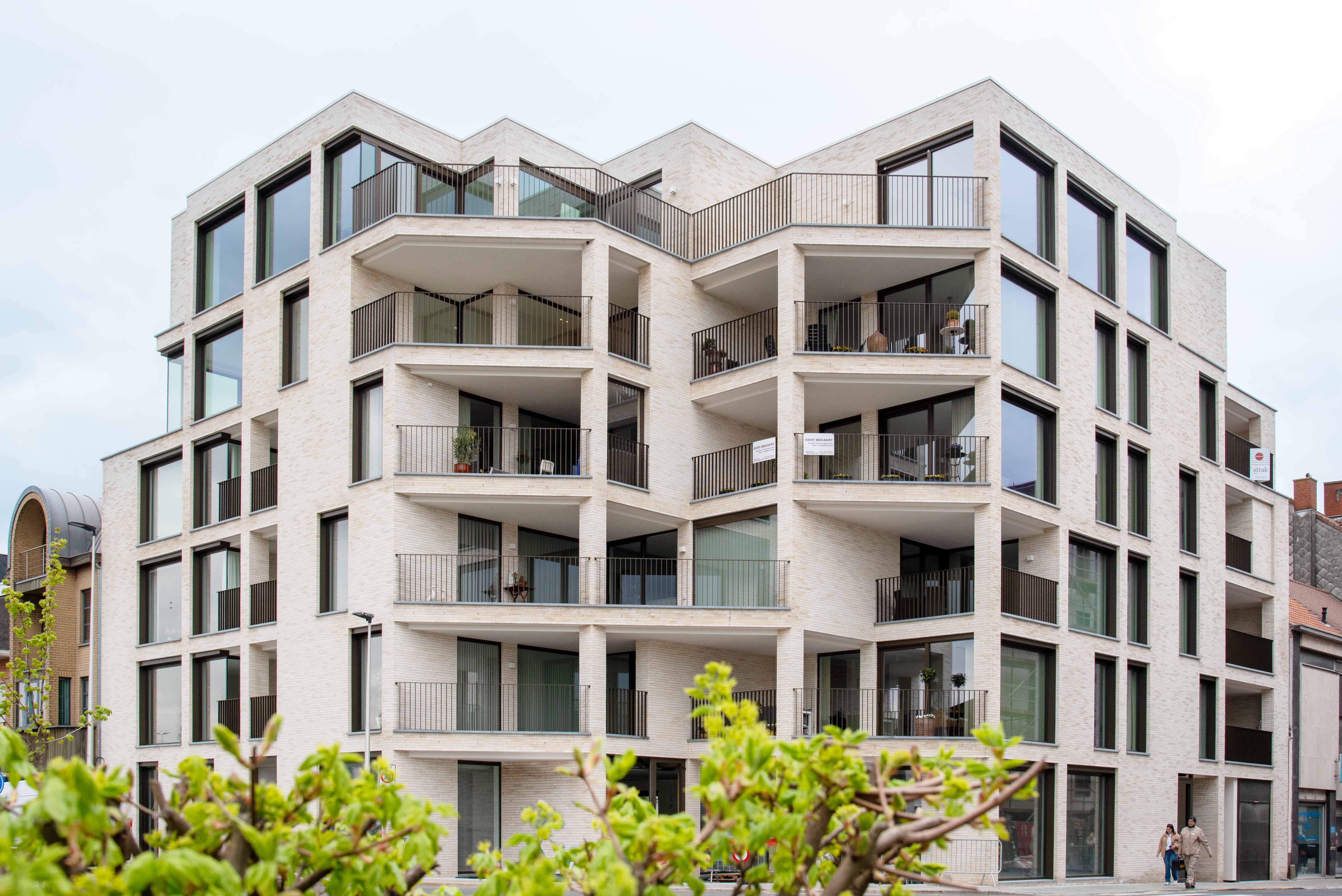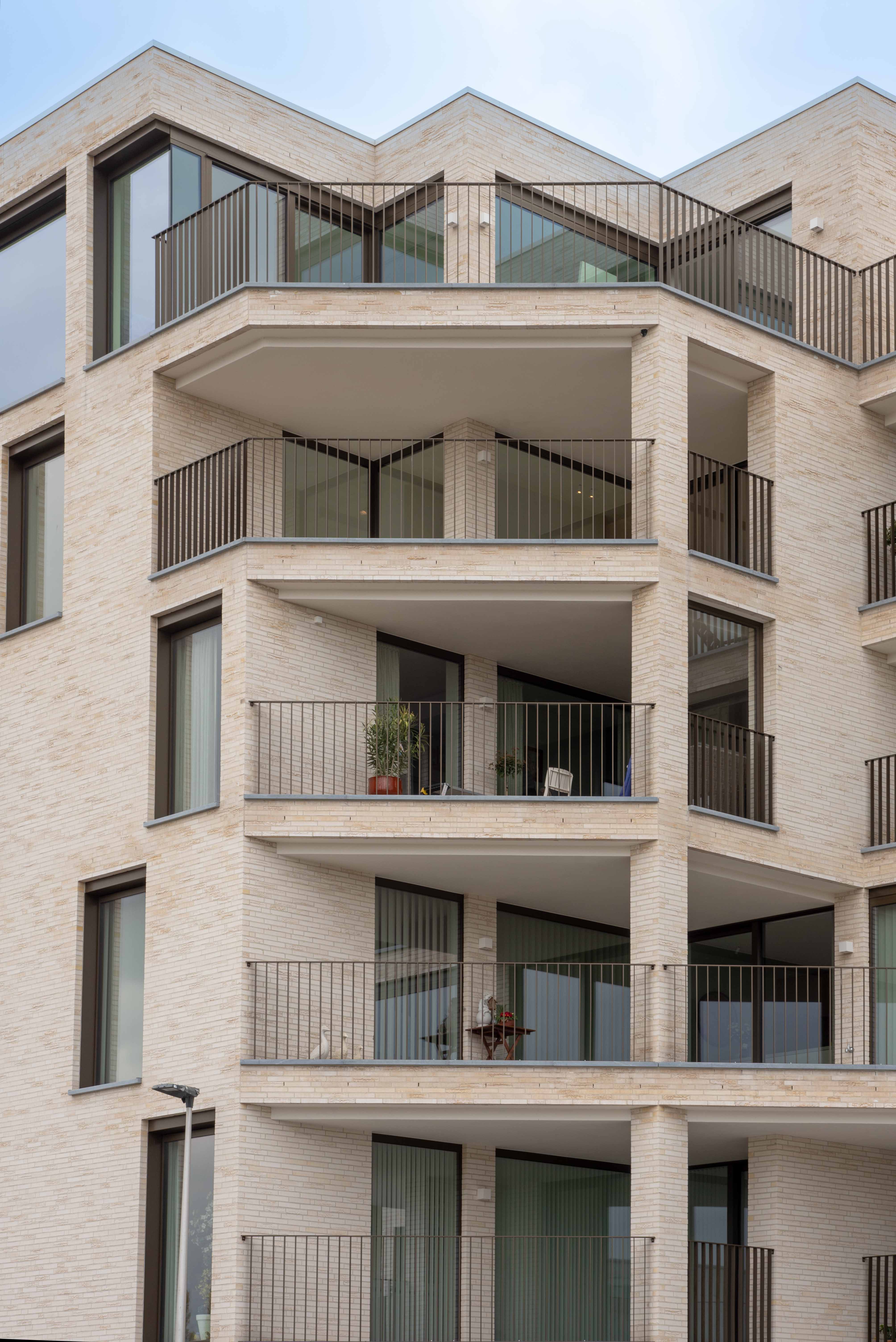 The concept for this project stems from its unique corner location. The aim was to give as many apartments as possible the widest and most captivating view possible. To this end, it started from a certain grid in which the corner was completely opened up. This created a playful and lively whole.