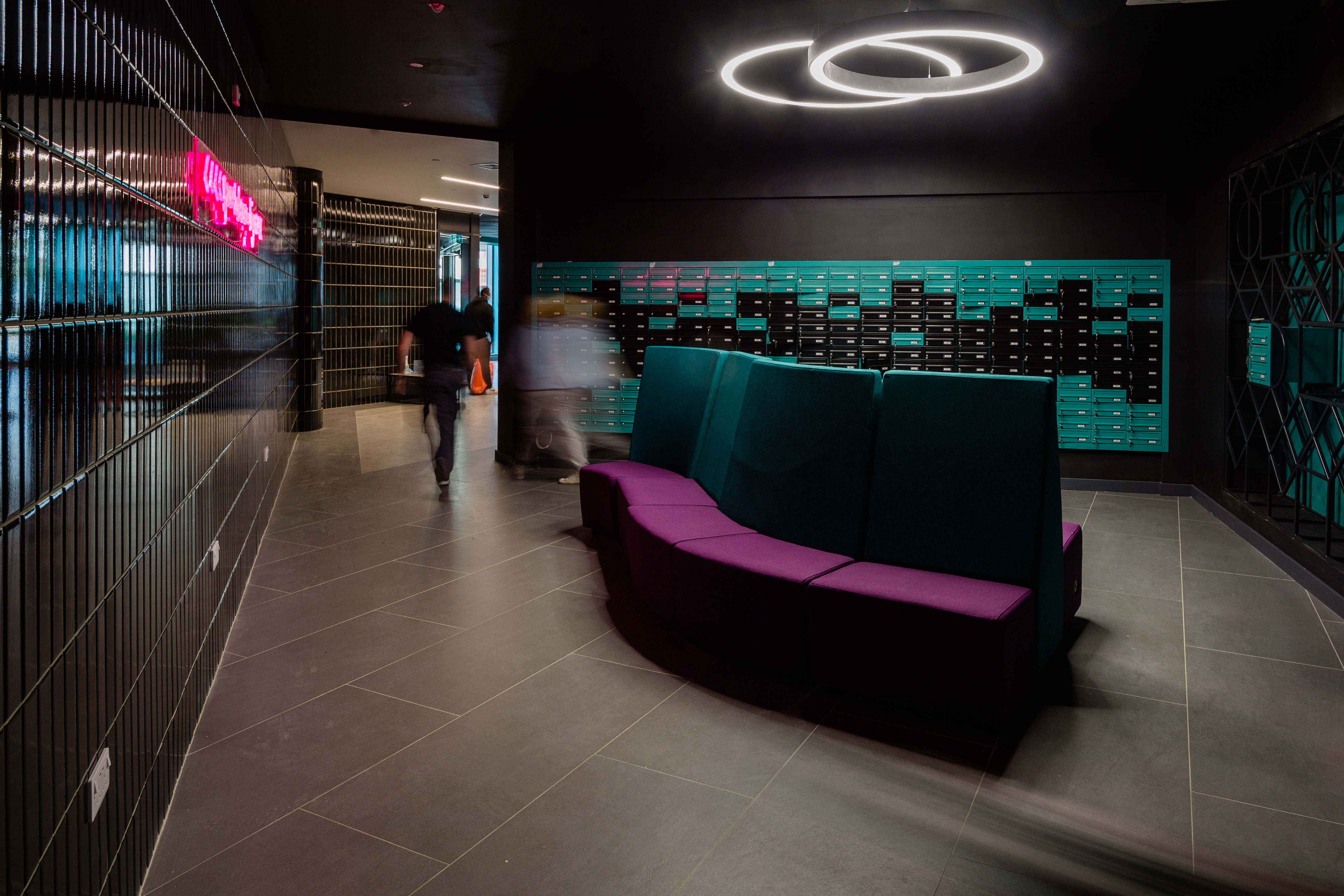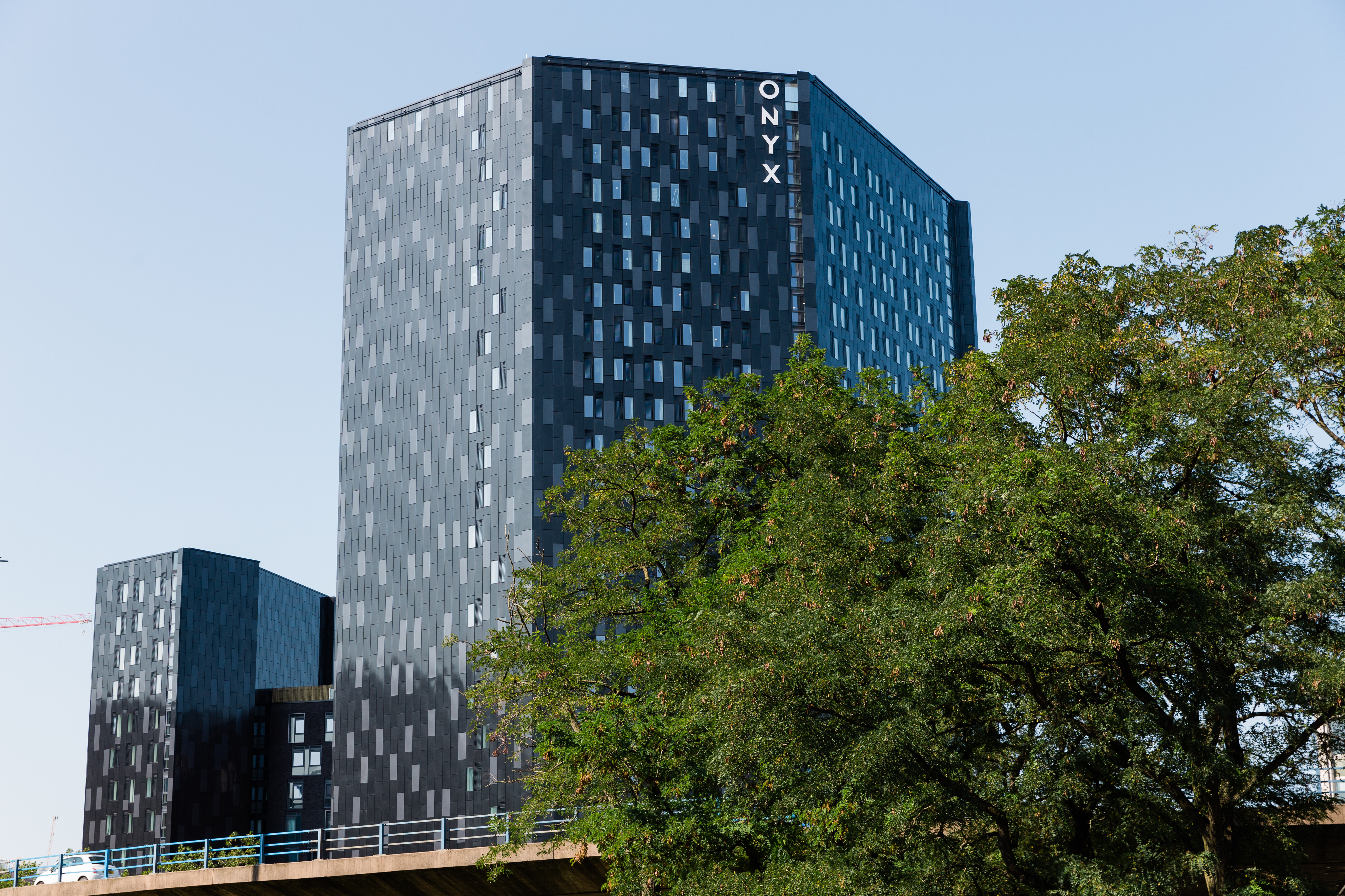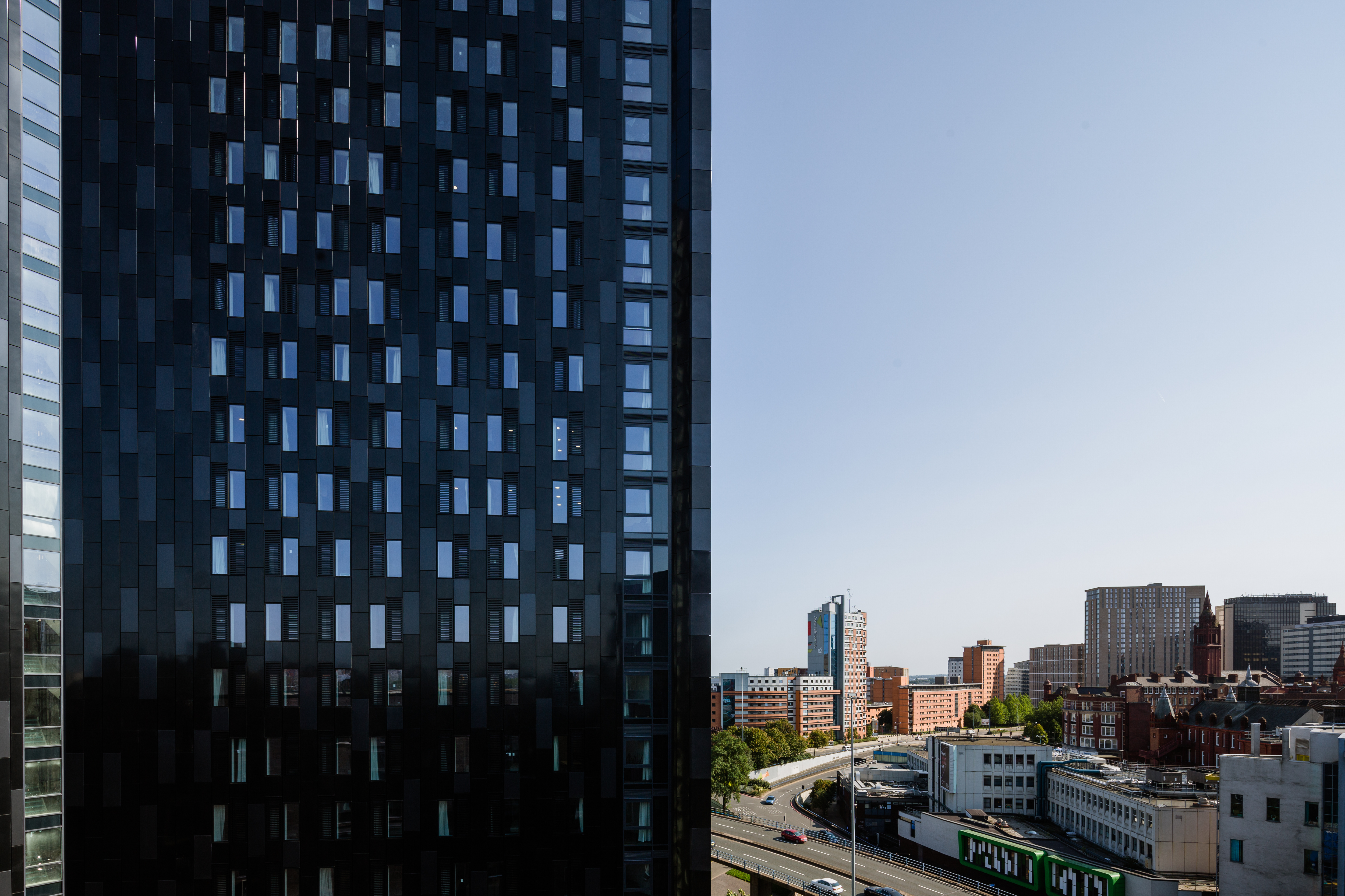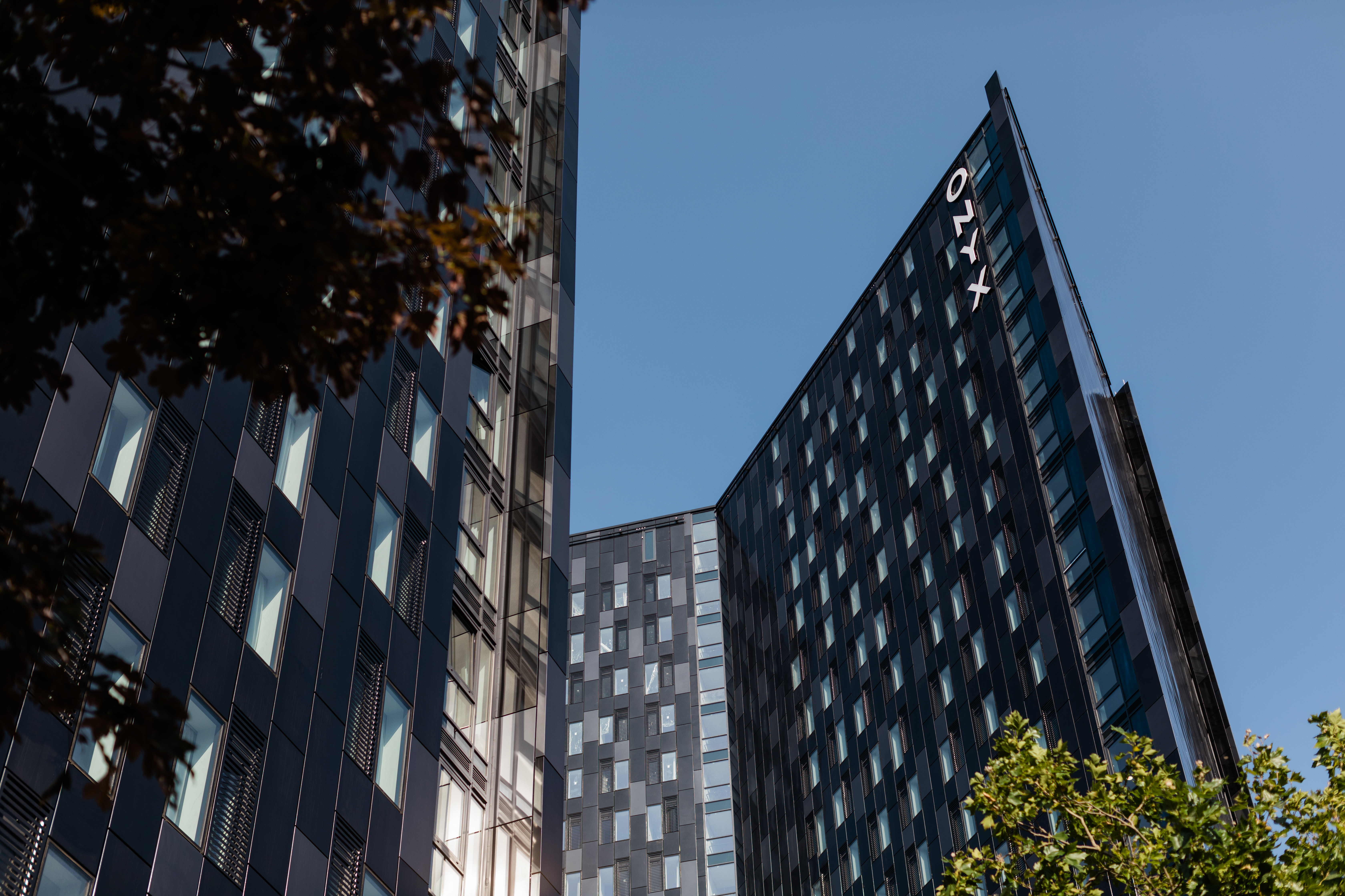 The buildings comprise of two bold, angular towers with sharply defined ‘razor’ edges and a smooth, highly detailed, gloss black finish, rising 13 and 24 storeys respectively. The towers are anchored by a middle section rising to 10 storeys and finished with a traditional, matt brick with defined window reveals and texture.