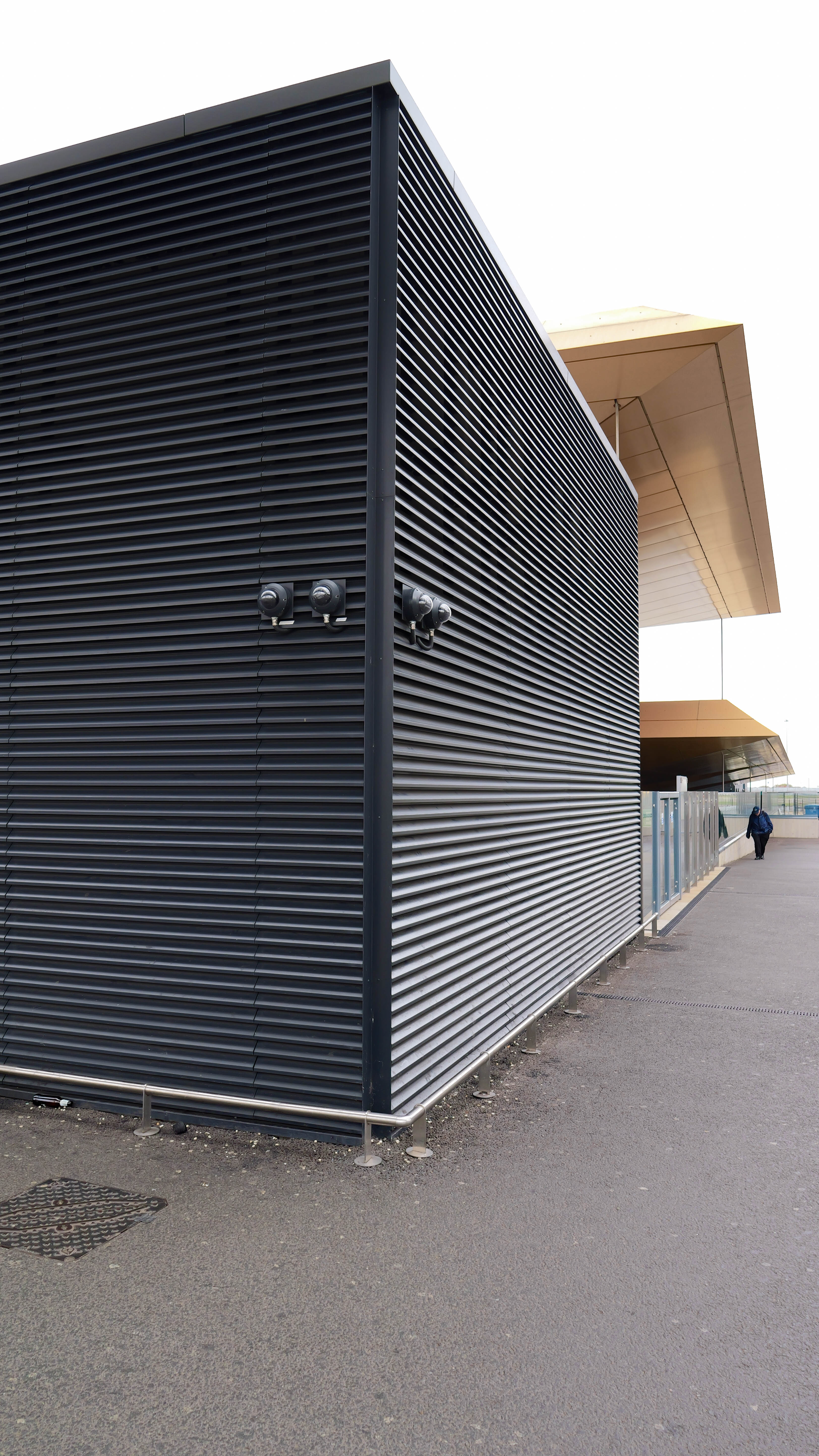 The reason for selection of this continuous louvre wall system was the requirement to match the claddings 75 mm alignment. The sample provided gained approval swiftly. Notably, this system offers extensive spanning capabilities with minimal support sections, coupled with a large airflow and water resistance. The DucoWall Classic 50/75Z series offers a continuous aesthetic appearance and its unique click and turn clips ensured a fast installation.